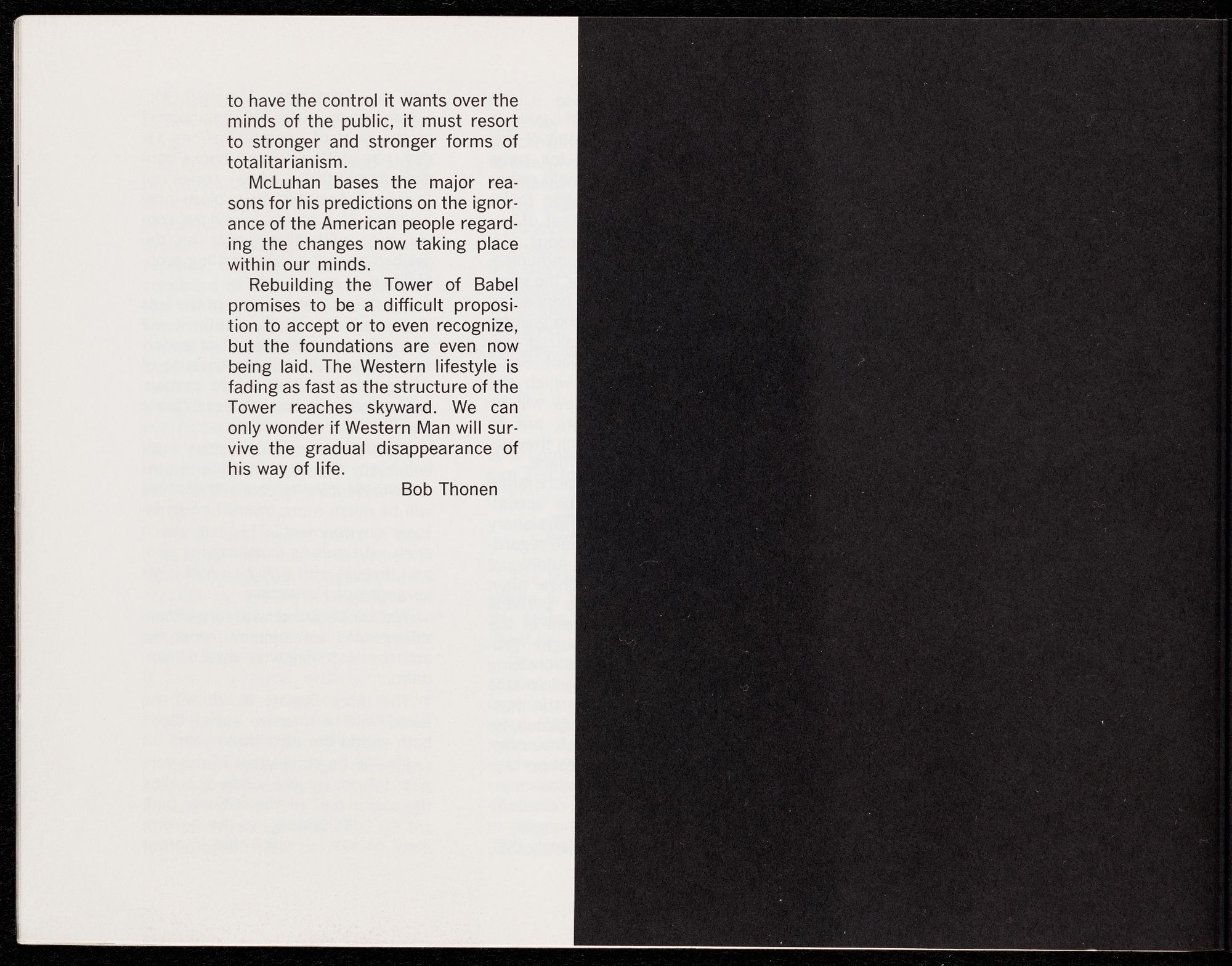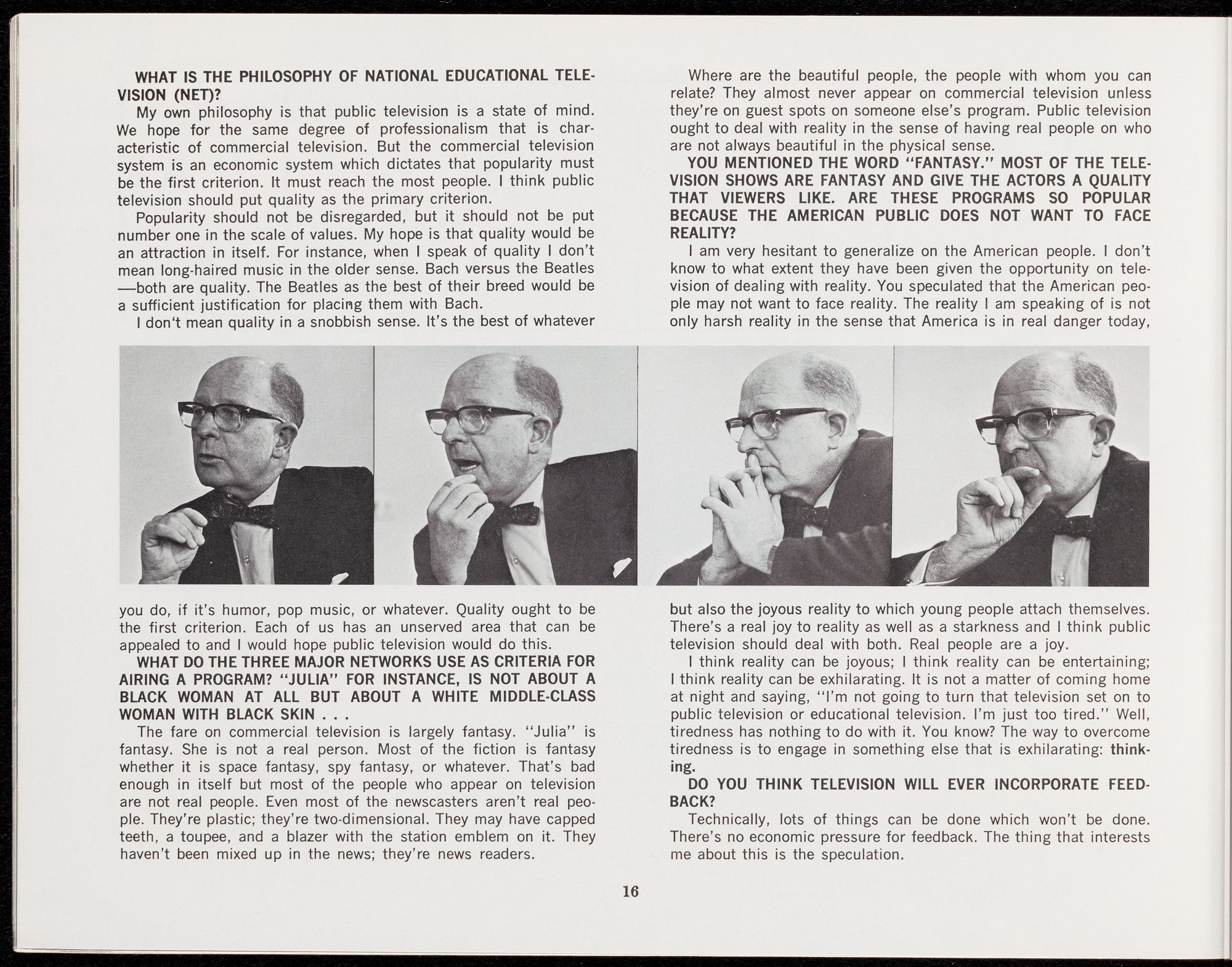 name only a few. We have accepted the media of mass communication as entities in themselves, not as technological servants. We respect