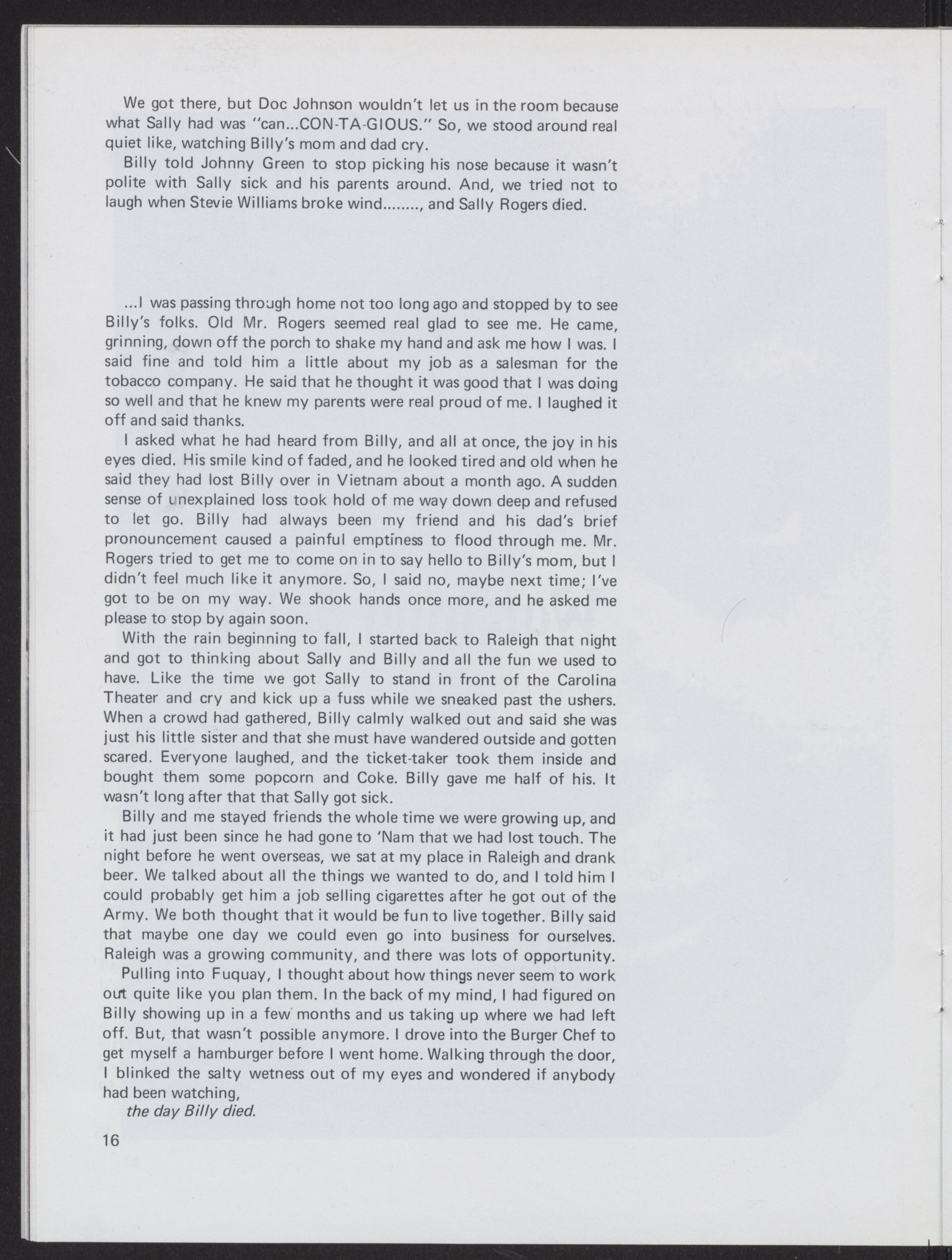 Yes, Aunt Doris, | died before | had even lived. | guess itTs sad