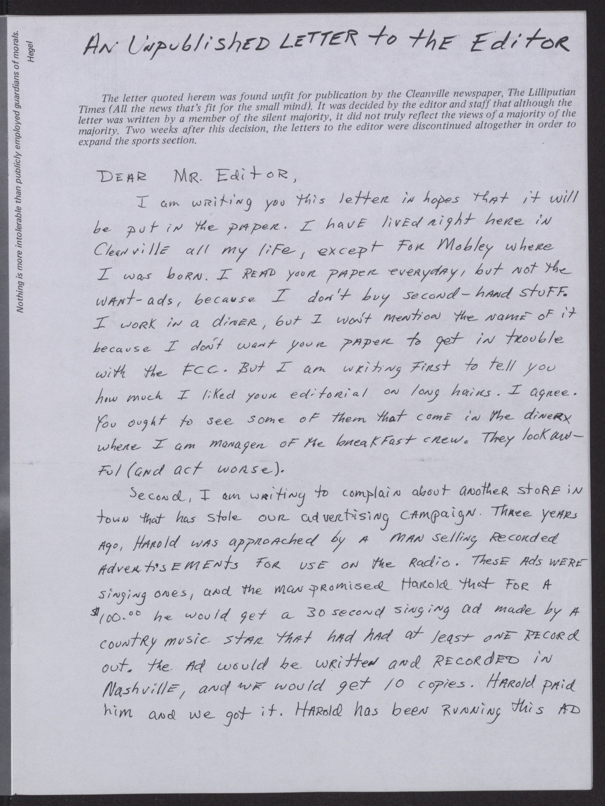 a 9 Sadao Archie Gaster ............ Unpublished Letter to the Editor