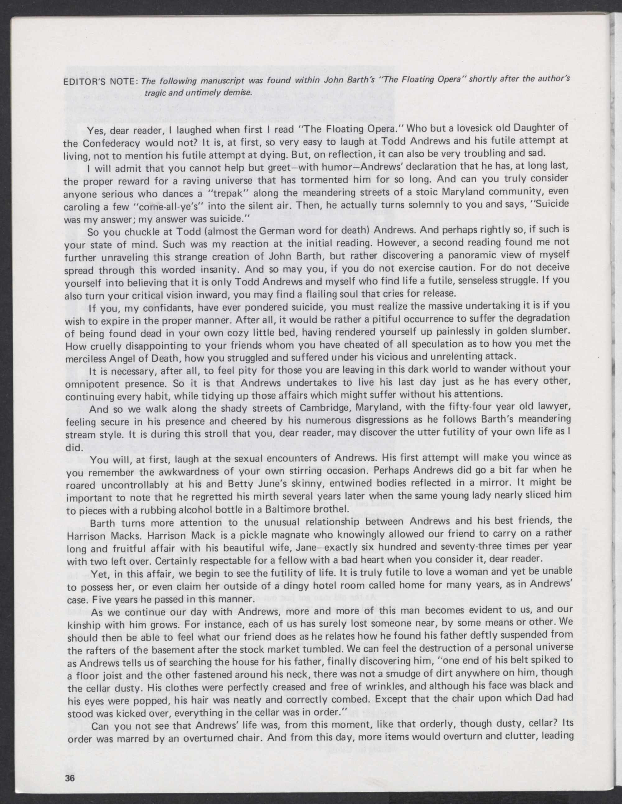 further unraveling this strange creation of John Barth, but rather discovering a panoramic view of myself