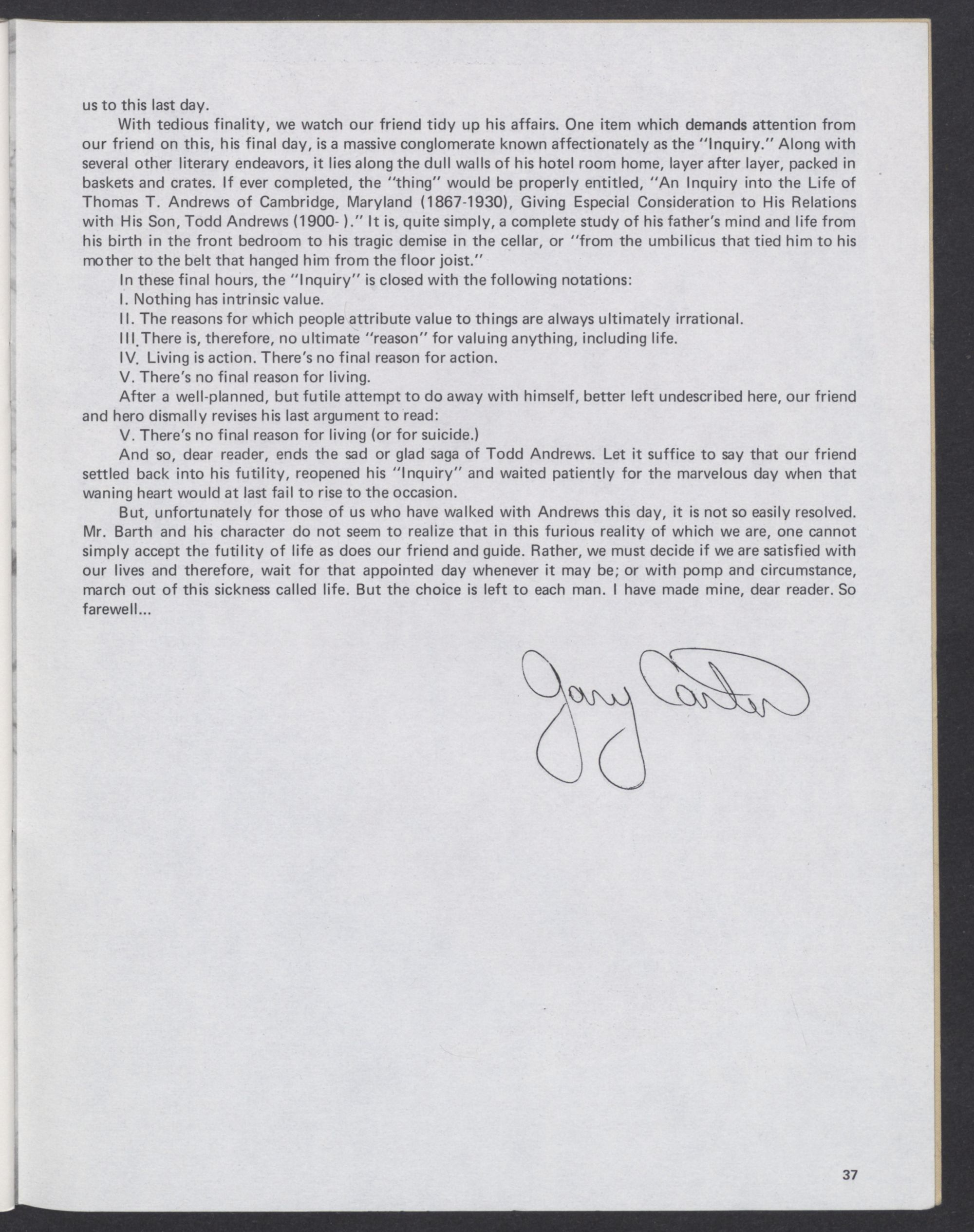 And so, dear reader, ends the sad or glad saga of Todd Andrews. Let it suffice to say that our friend