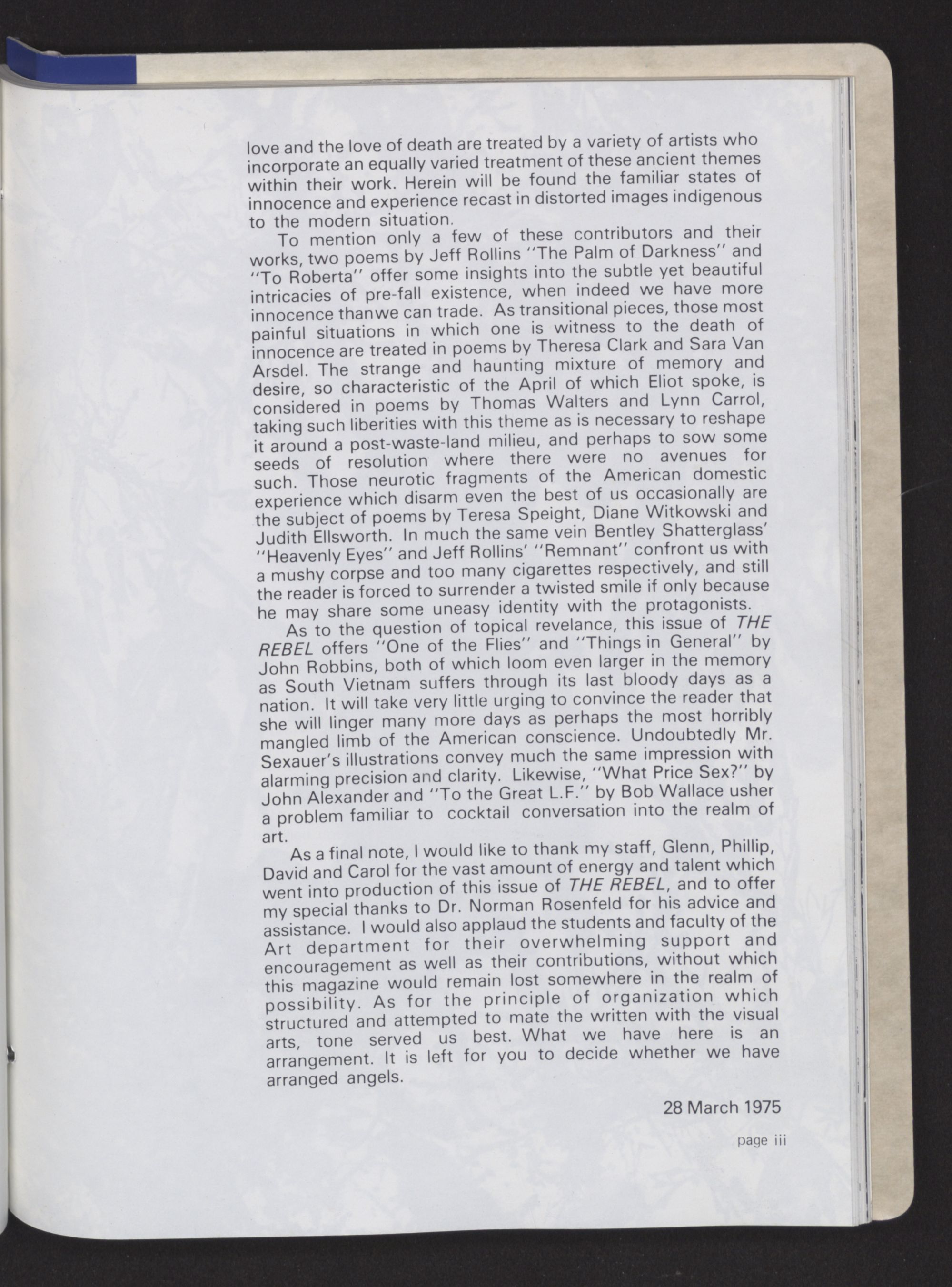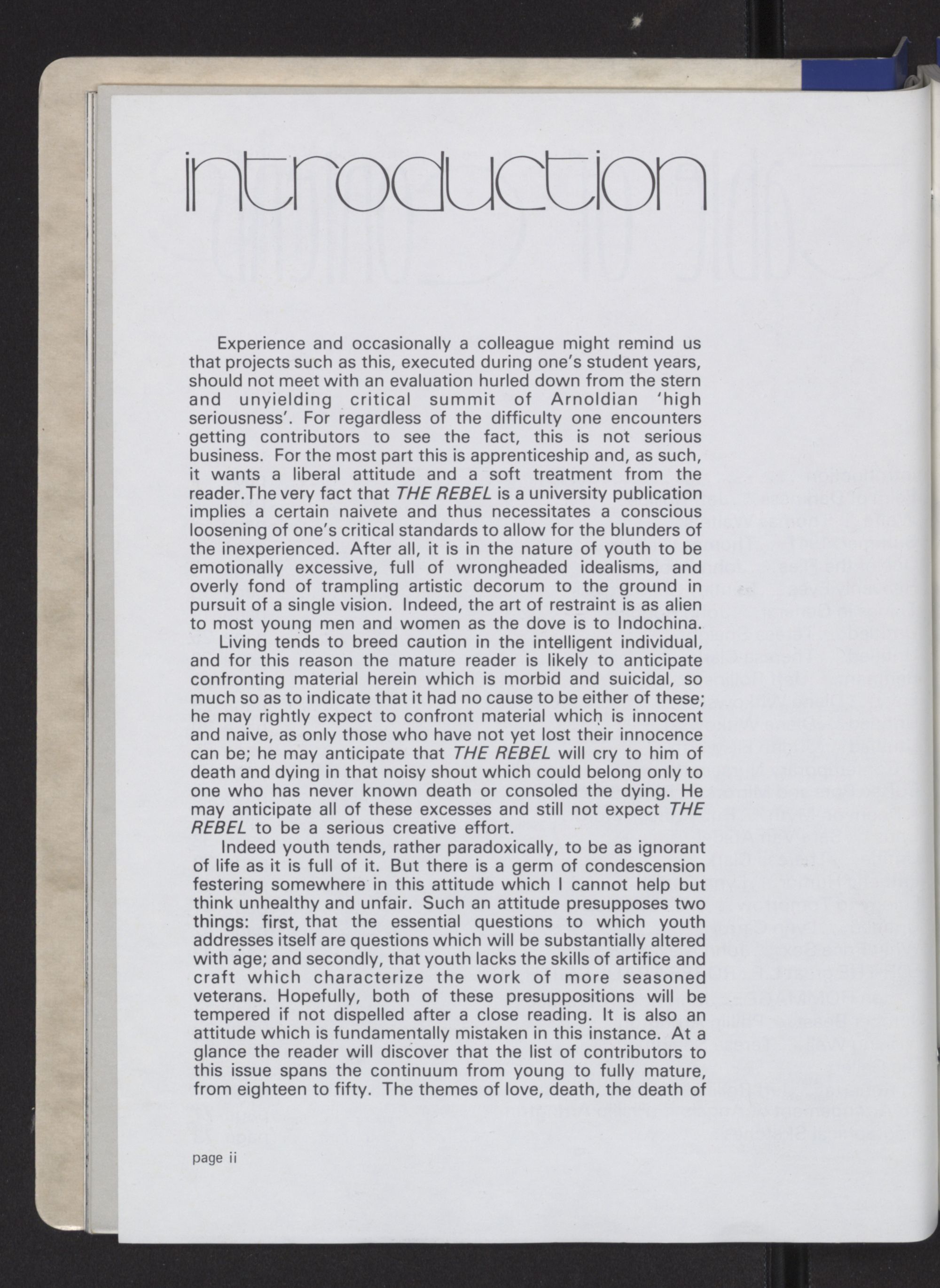 The drawing which appears on the cover of this issue of THE REBEL was executed by Edward Reep as
