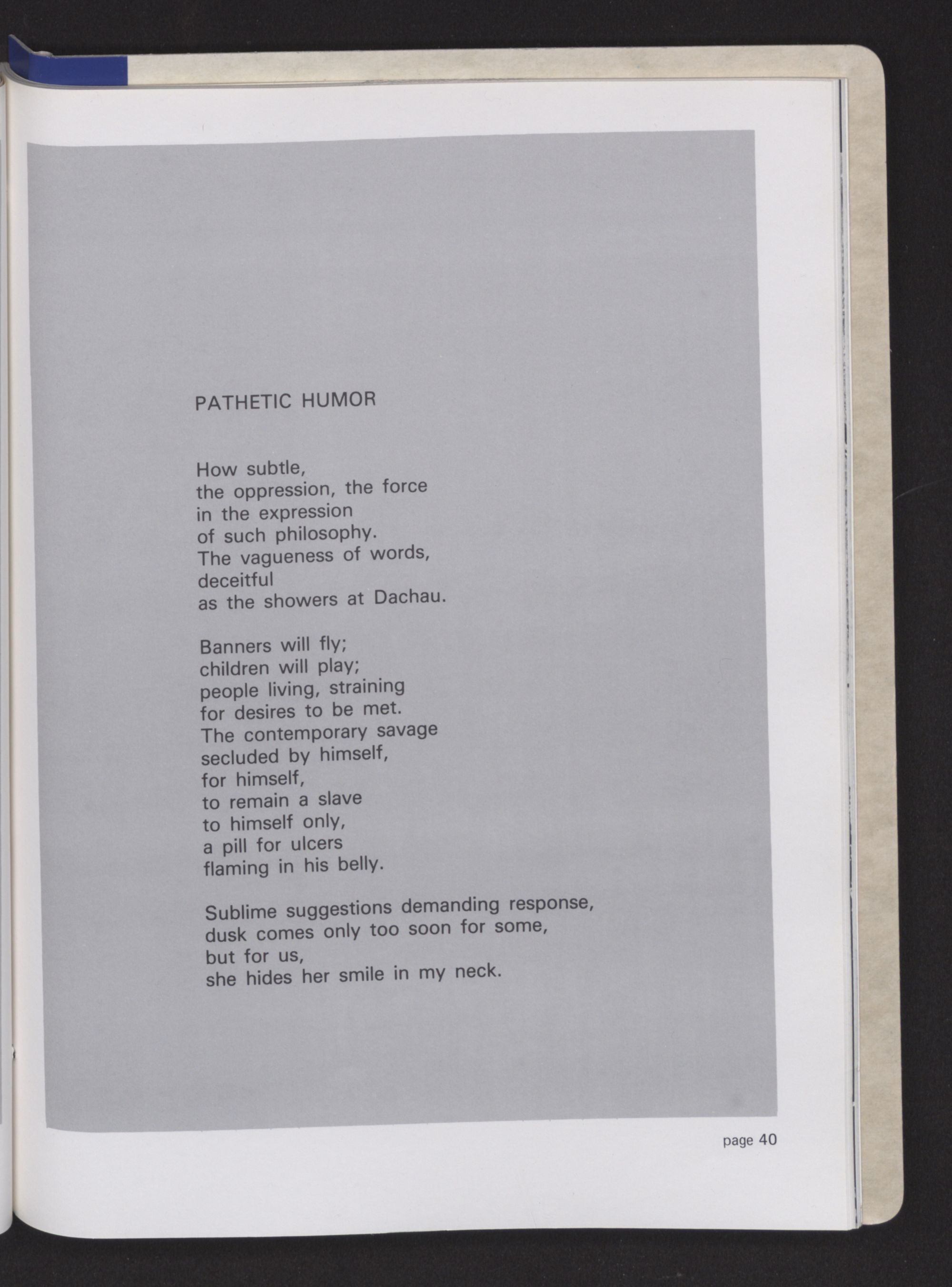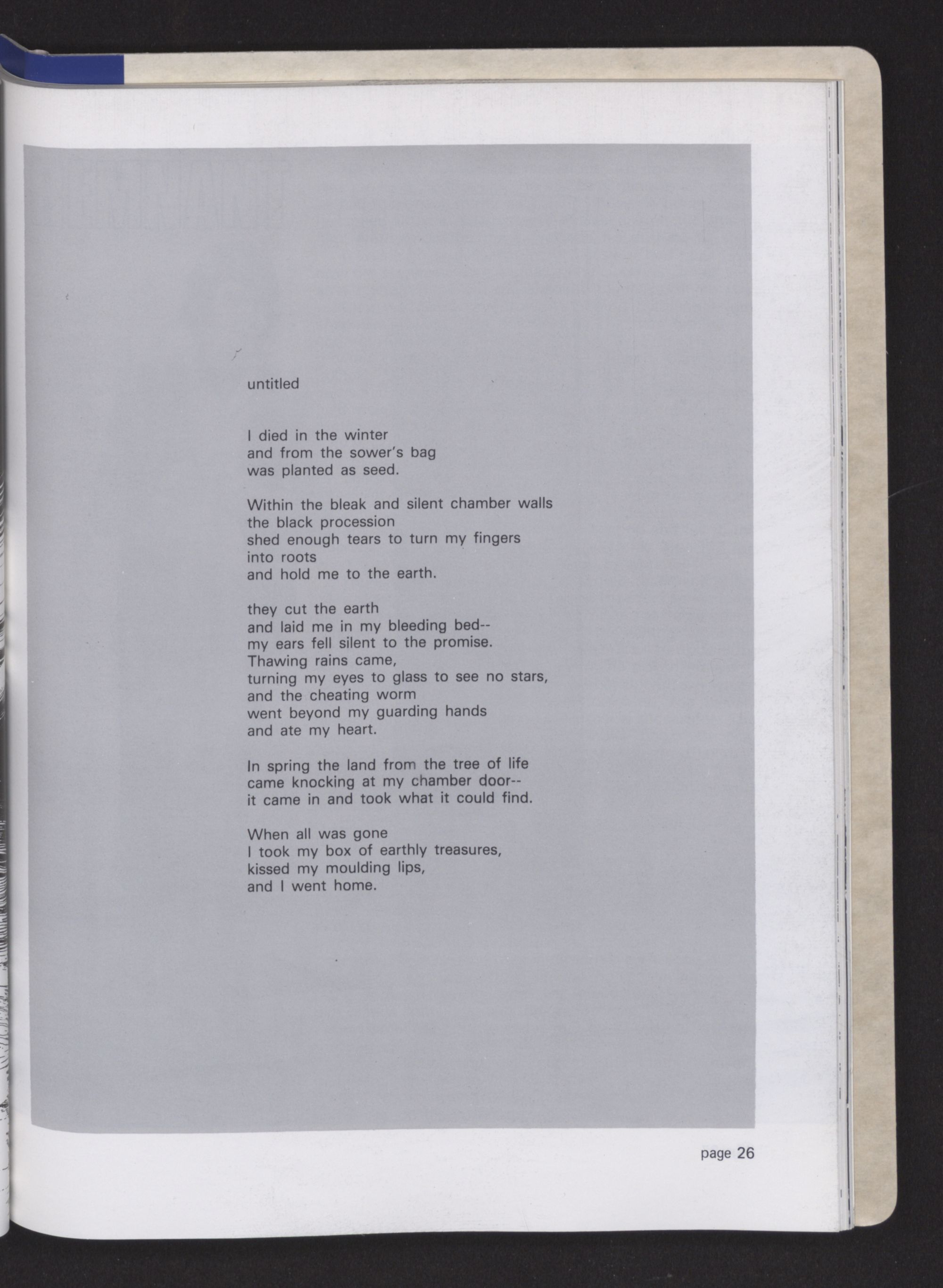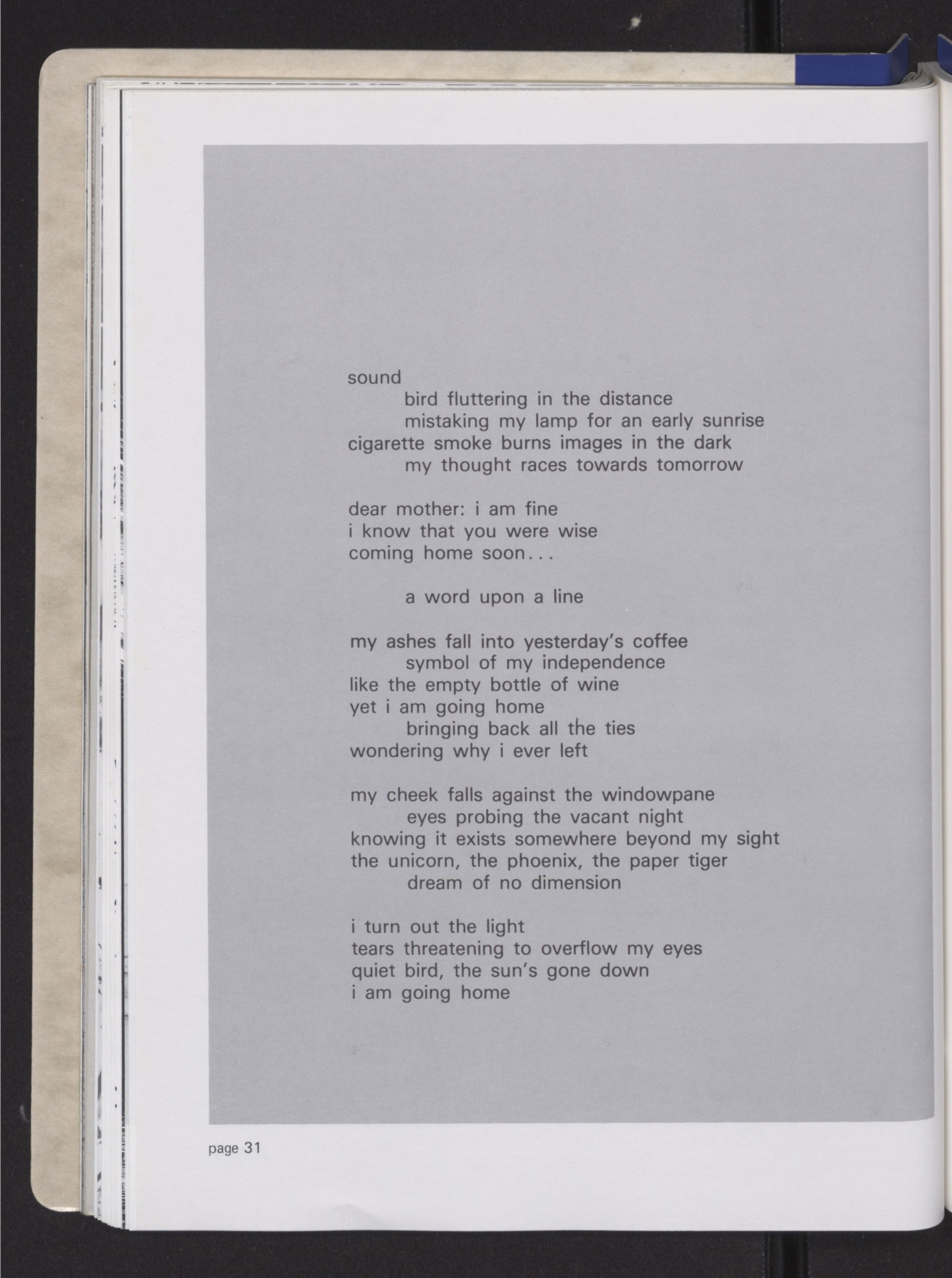 and other magazines. ASCEND THE HILL is her current volume of verse.