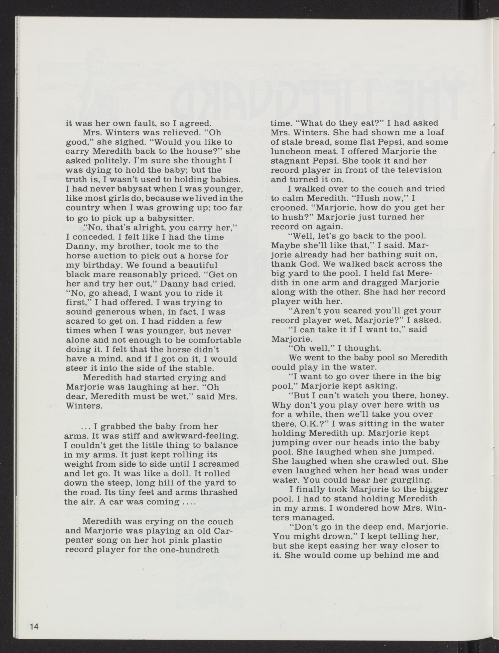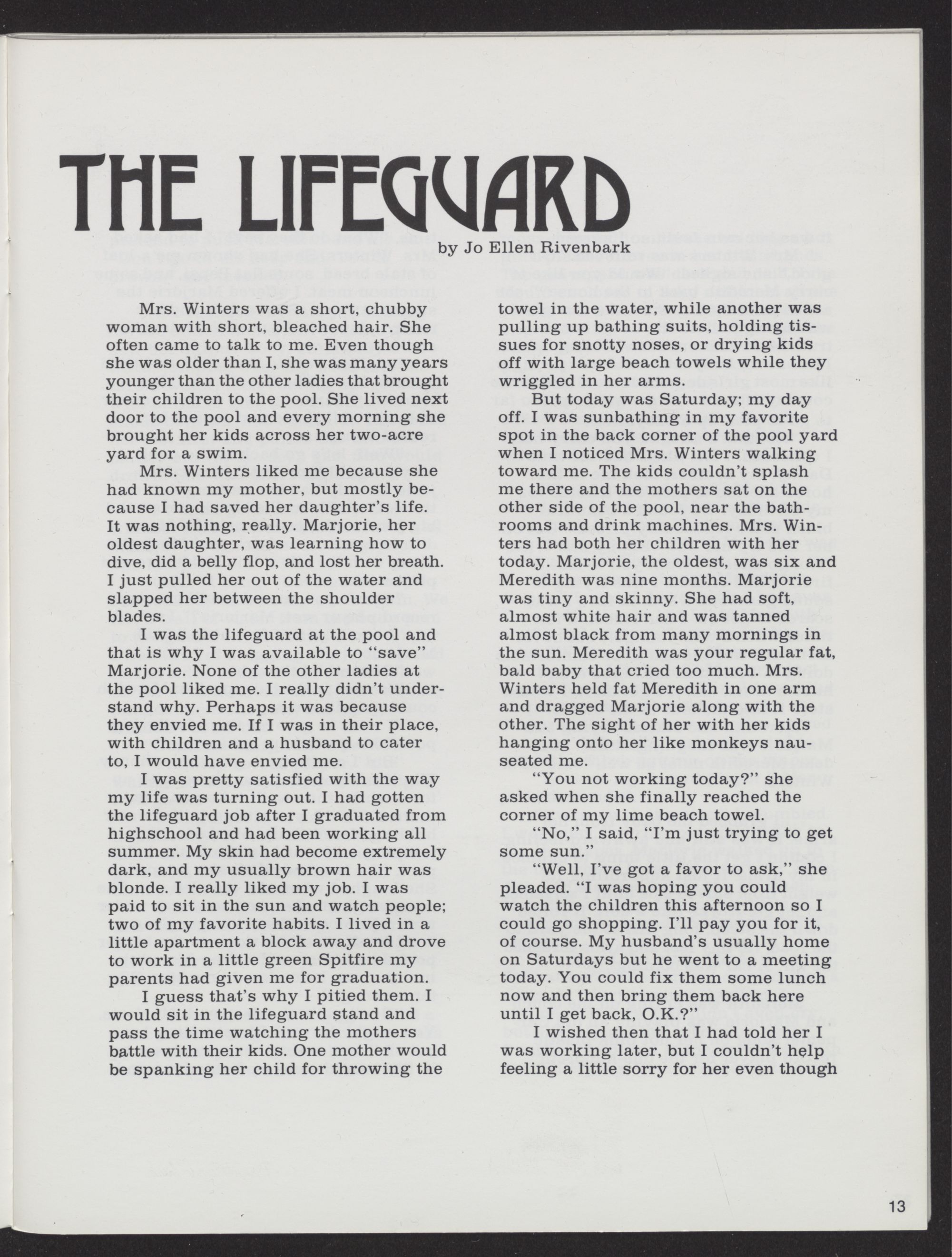 the Attic Award in fiction for her story, oThe Last