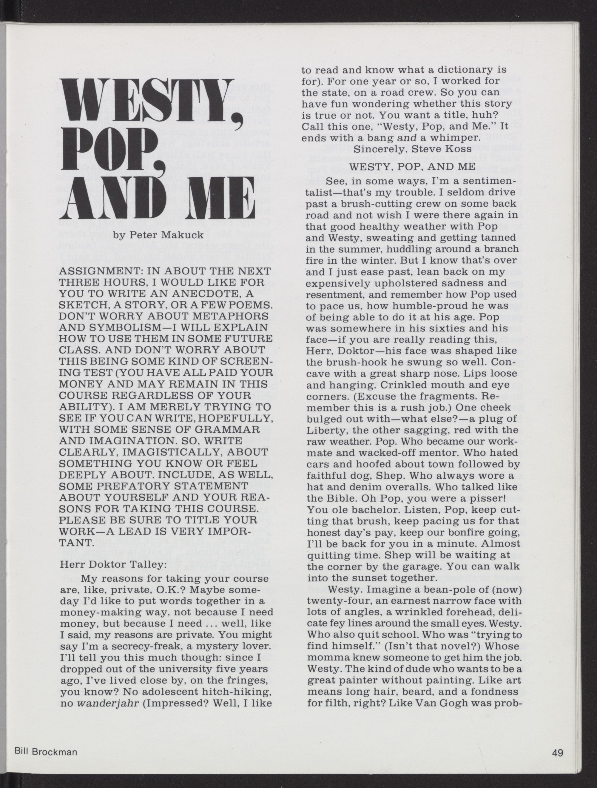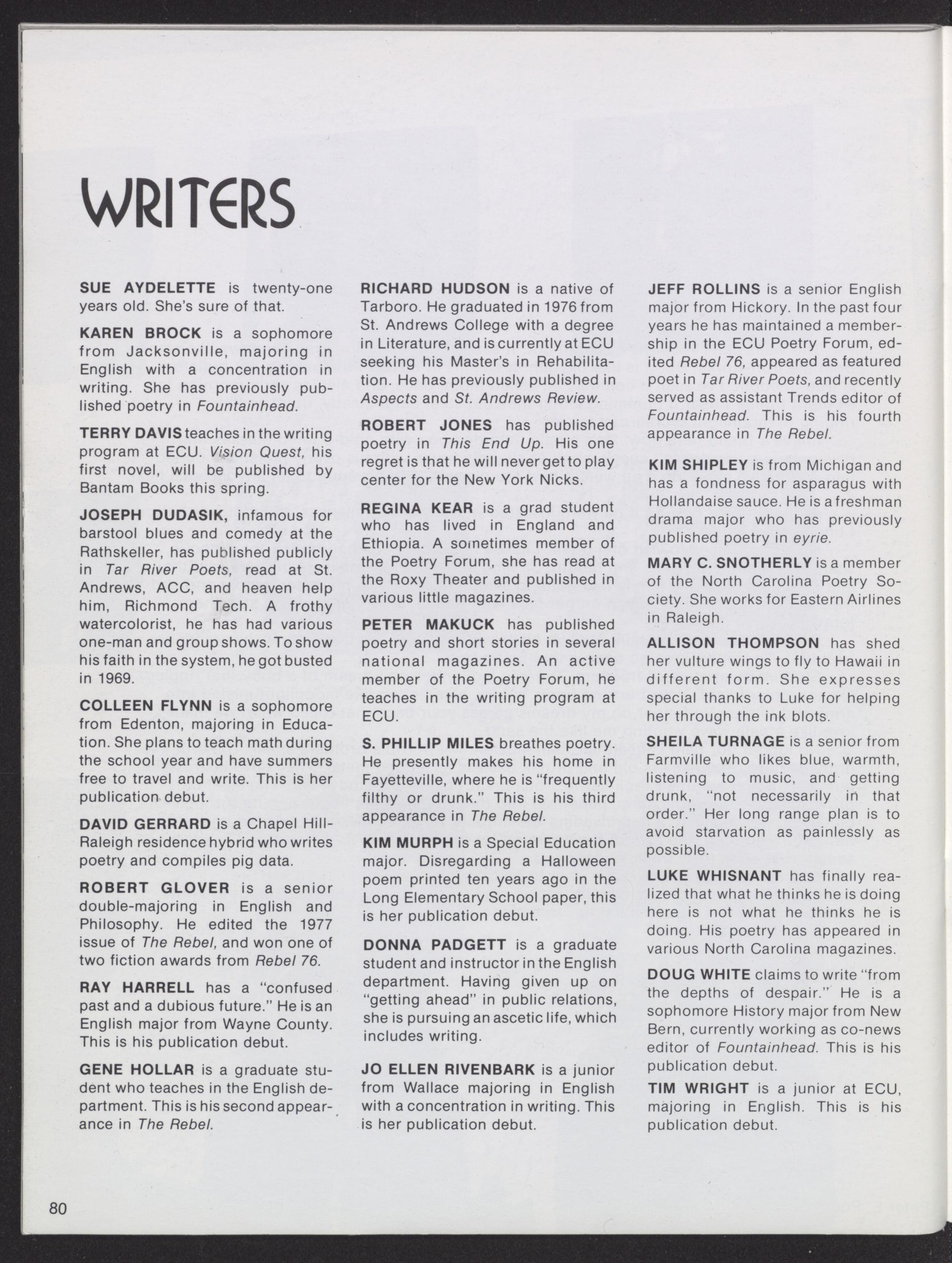 ment of student writers at ECU, the twentieth an-