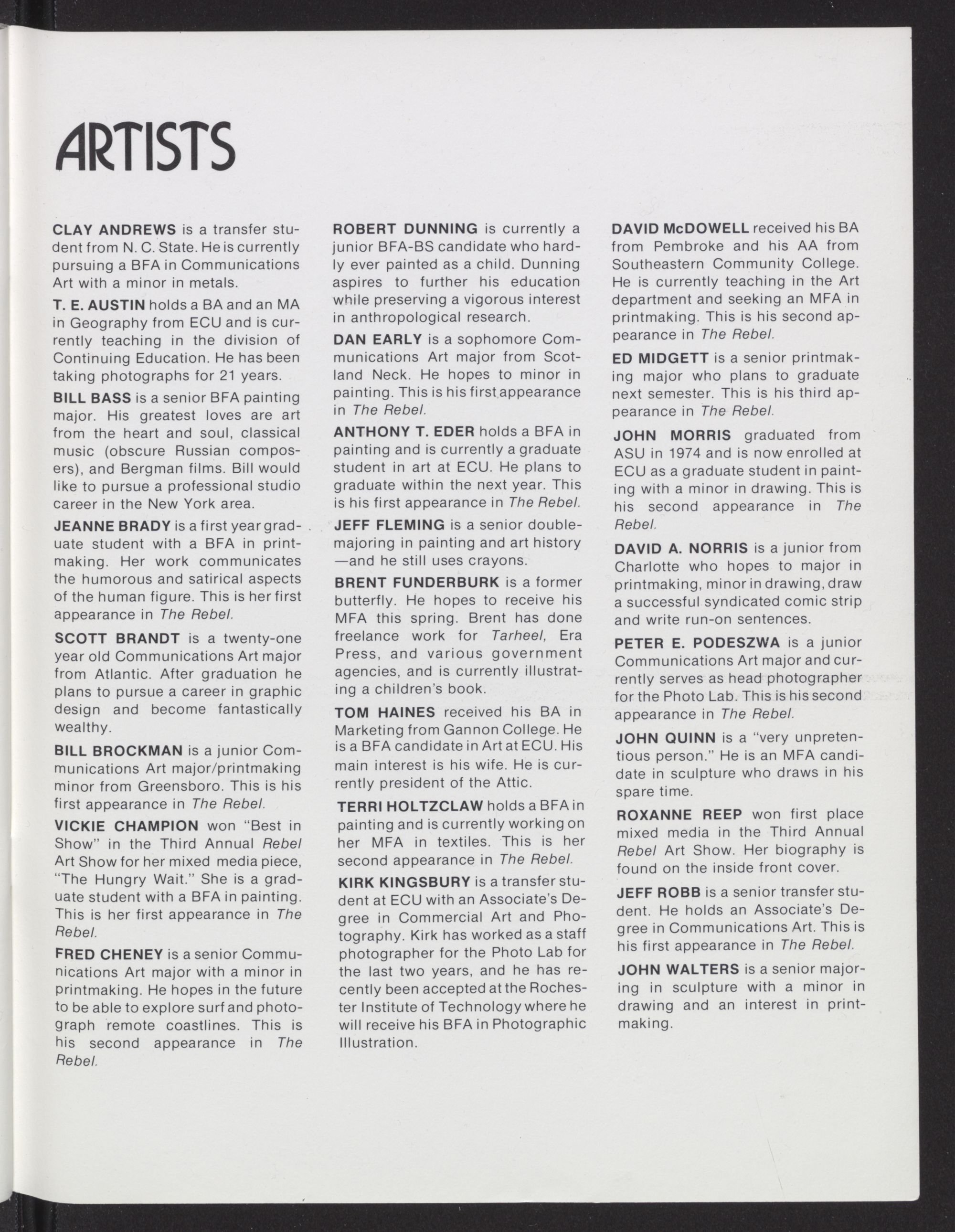 student in art at ECU. He plans to