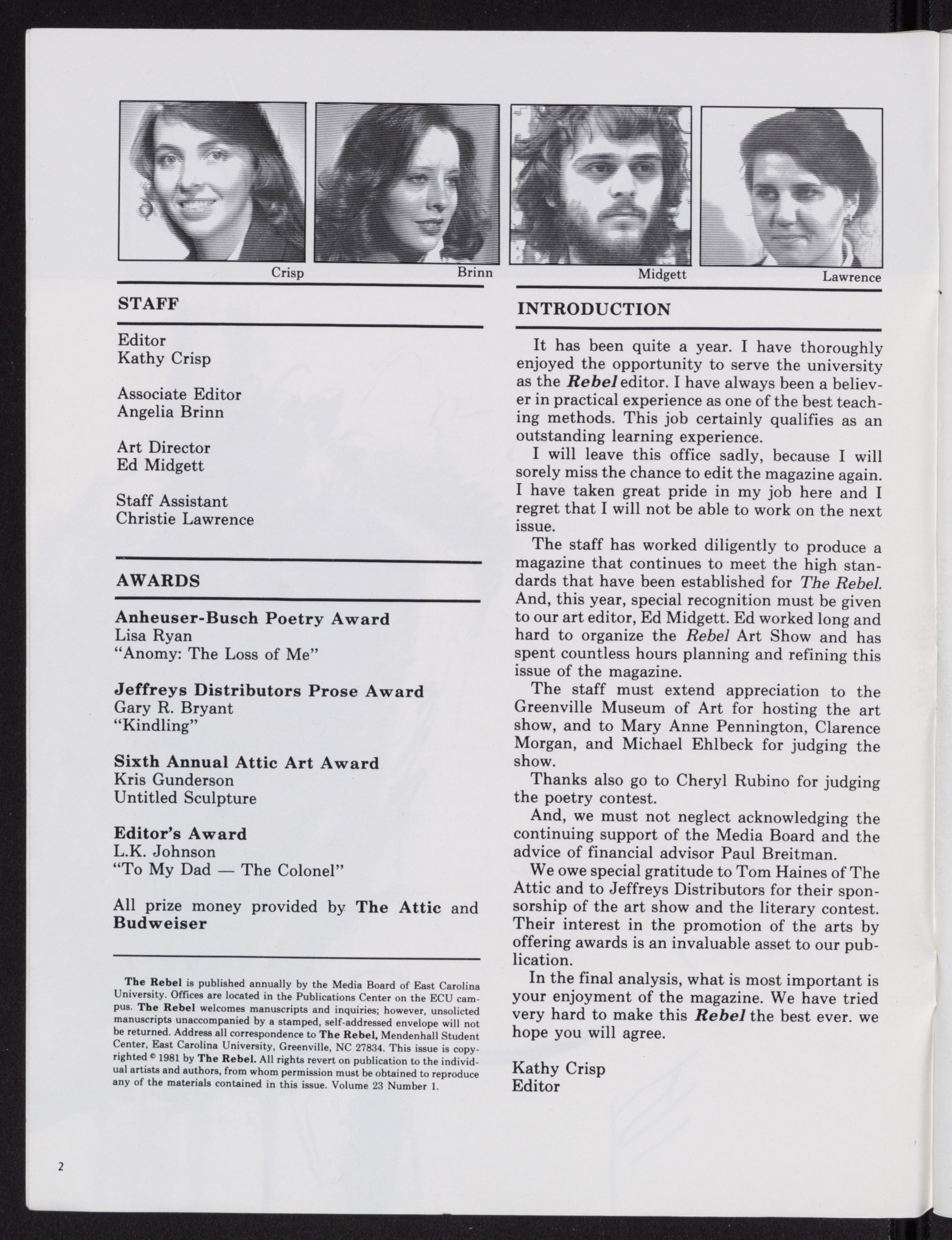 Center, East Carolina University, Greenville, NC 27834. This issue is copy-