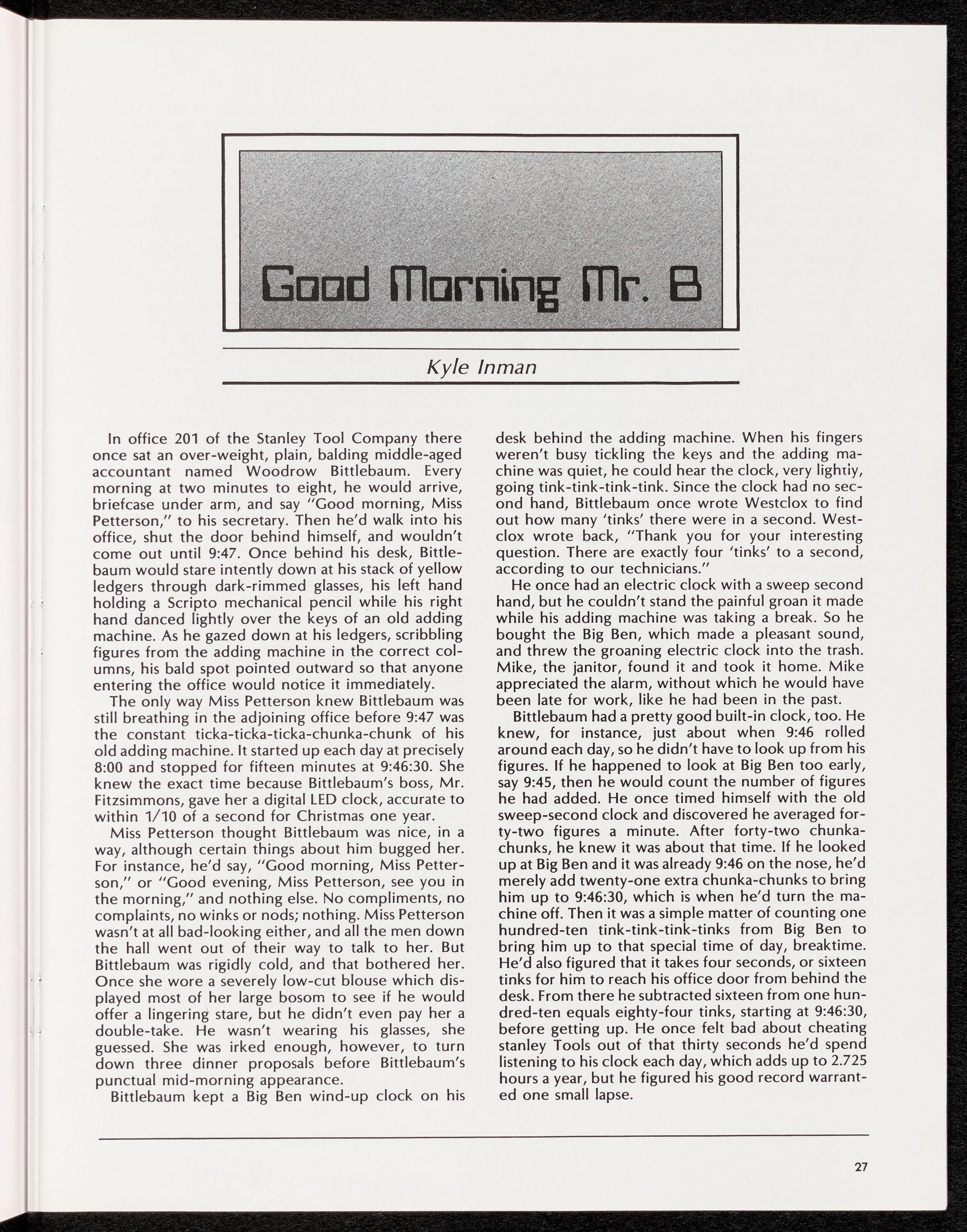 Good Morning Mr. B. Kyle S. Inman 27, Illustration Teresa Bice 7