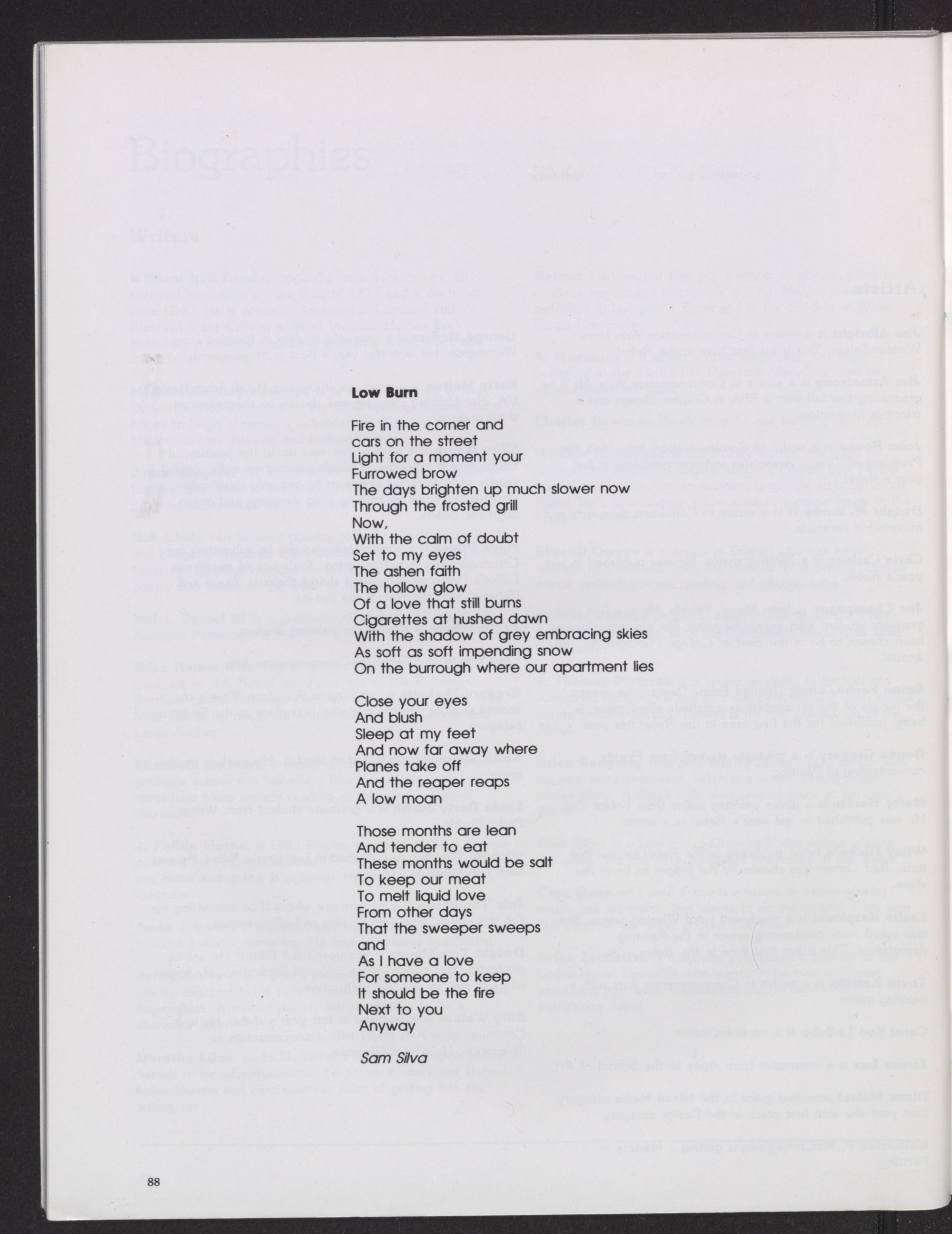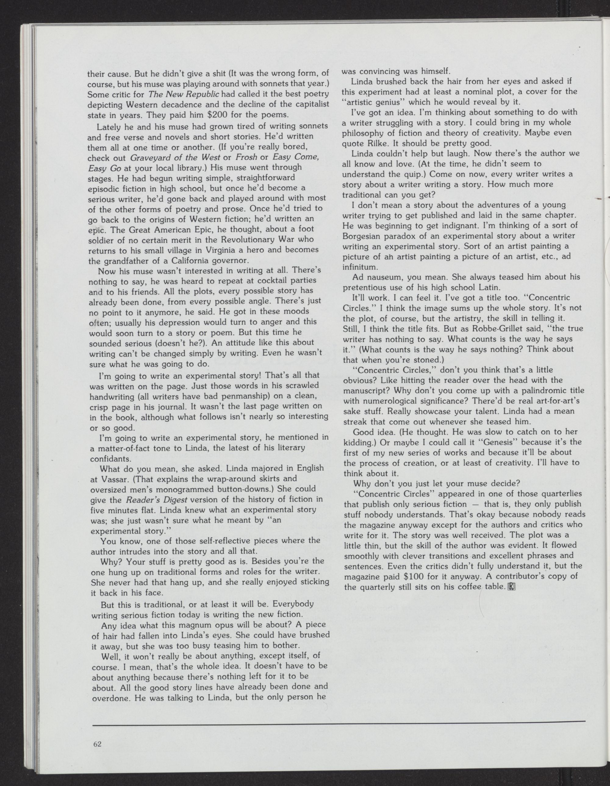 to the individual writers and artists upon publication. Contents of this issue may not be