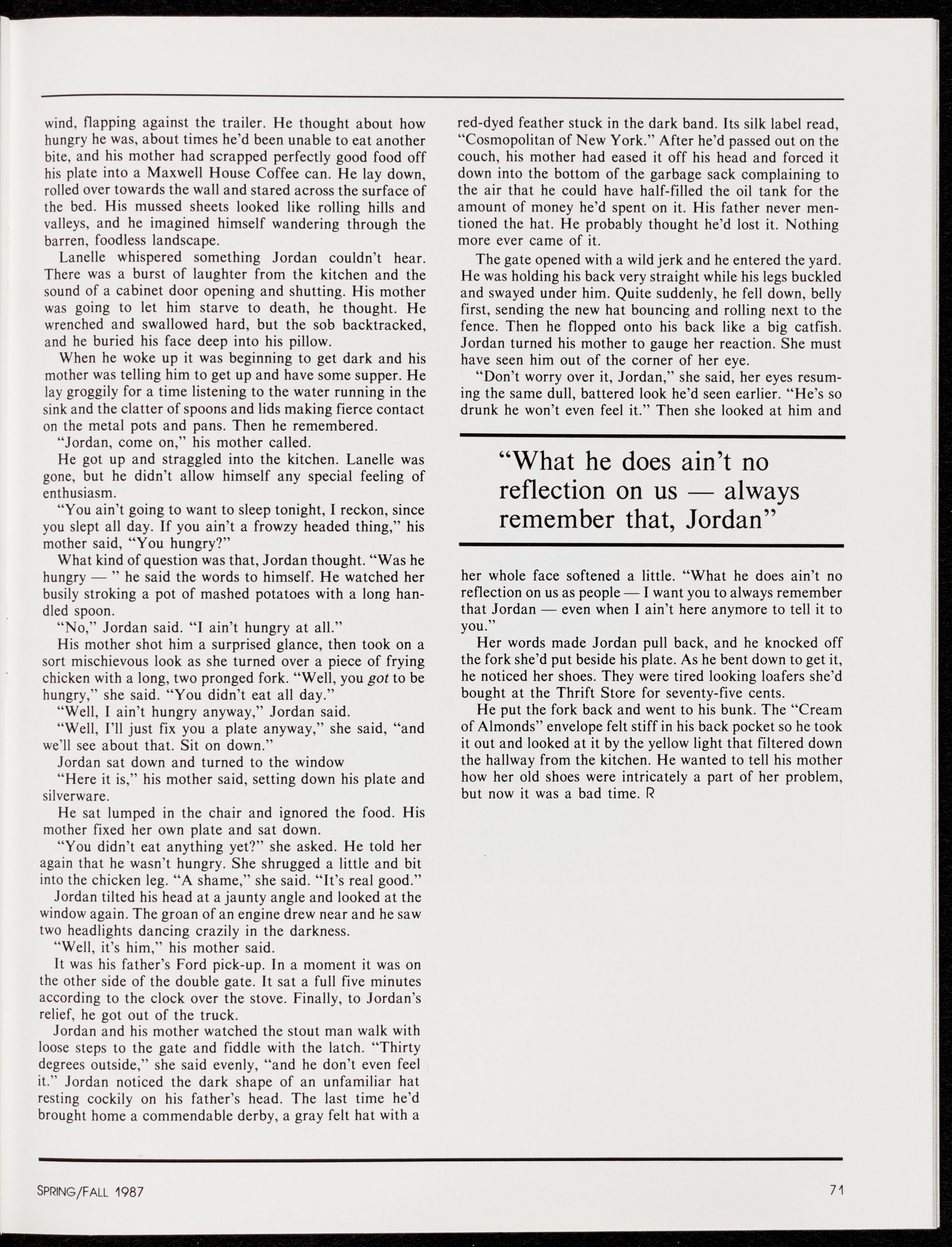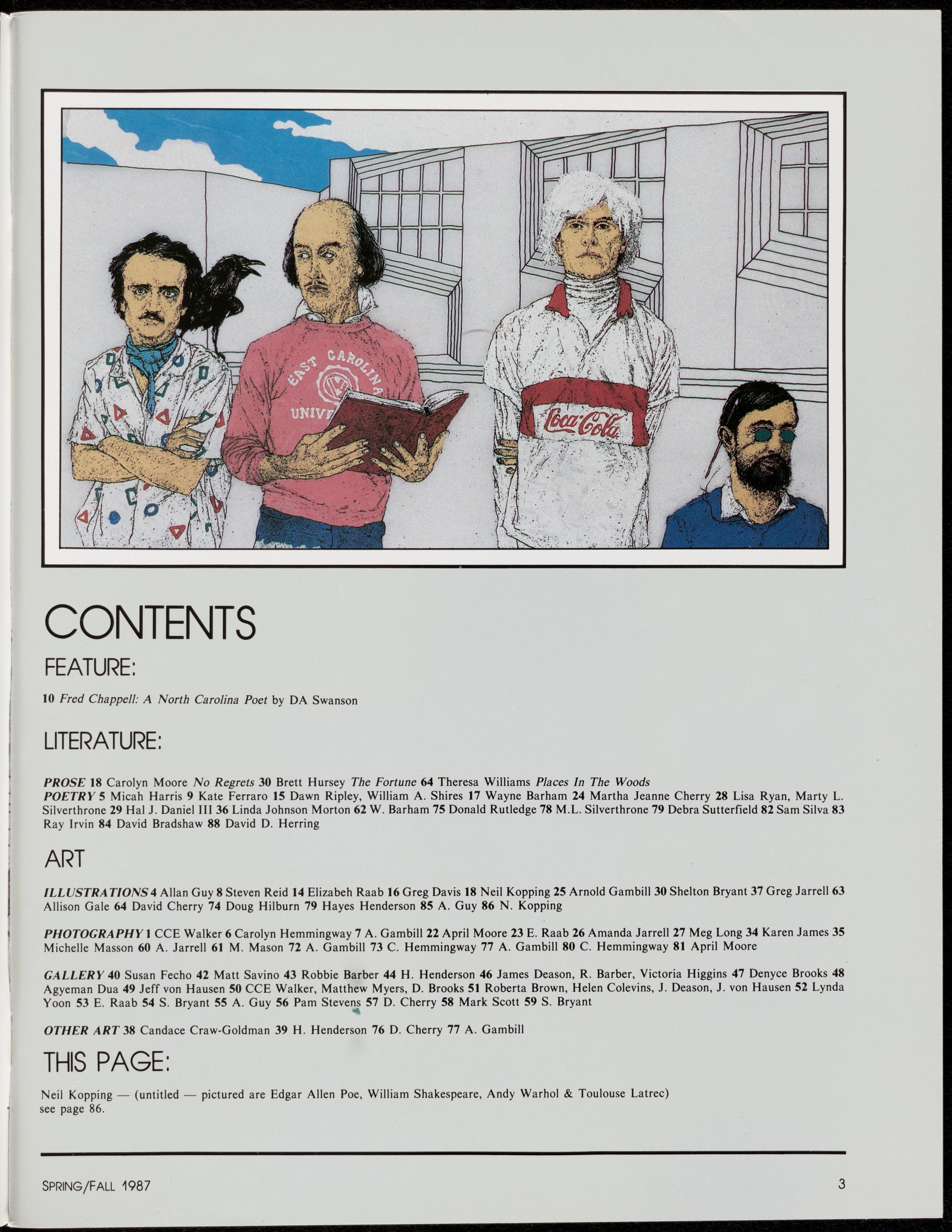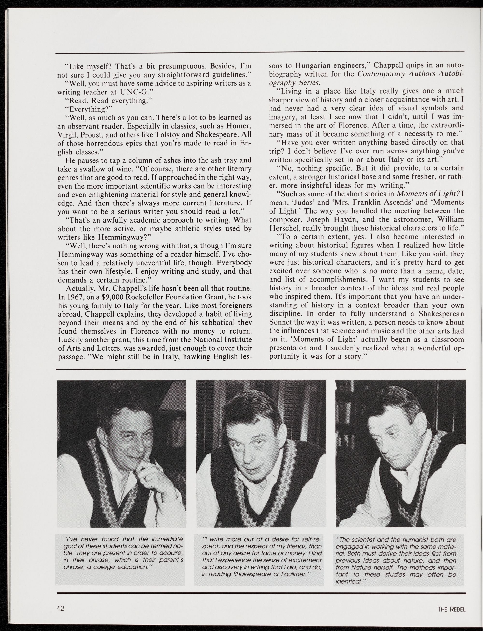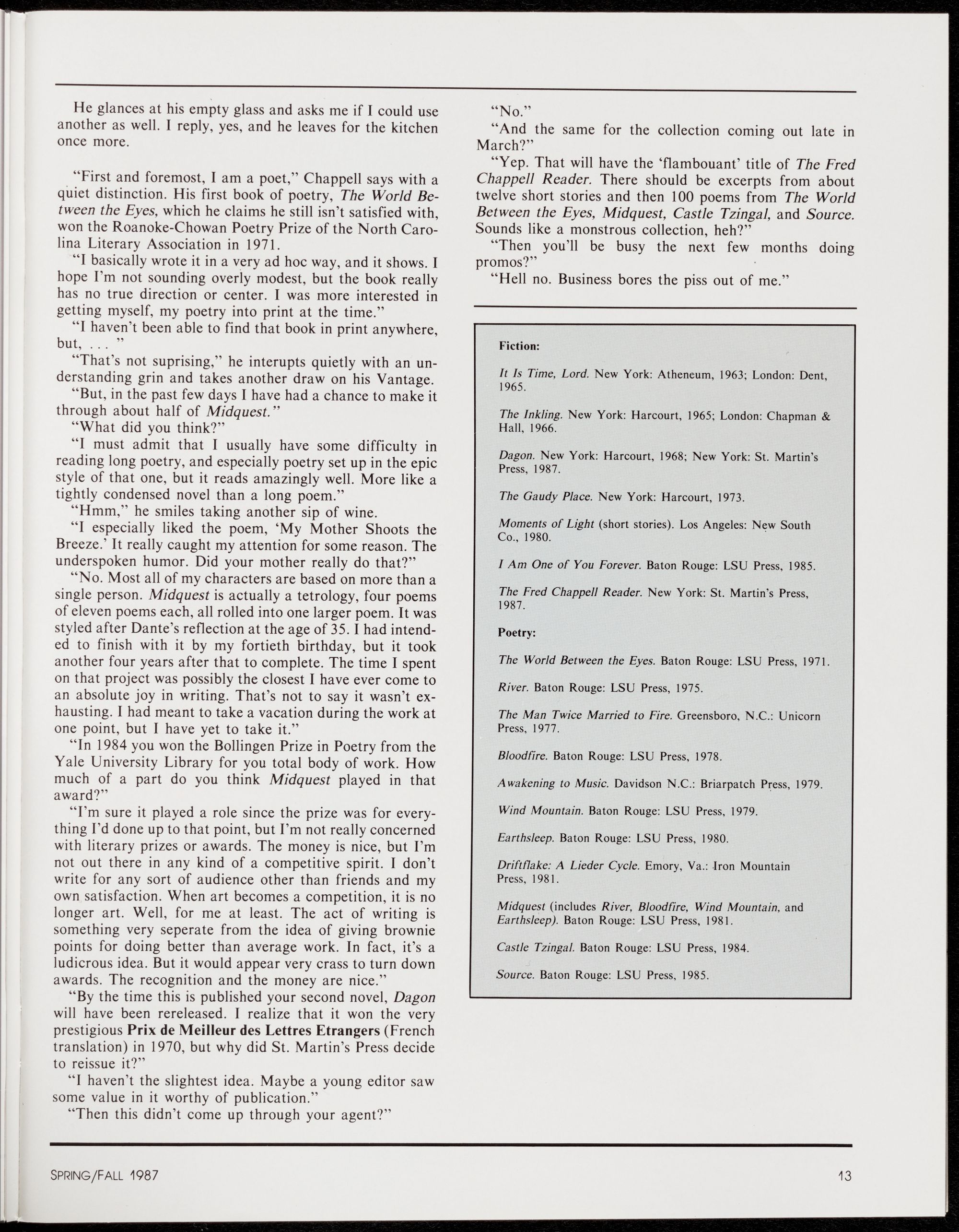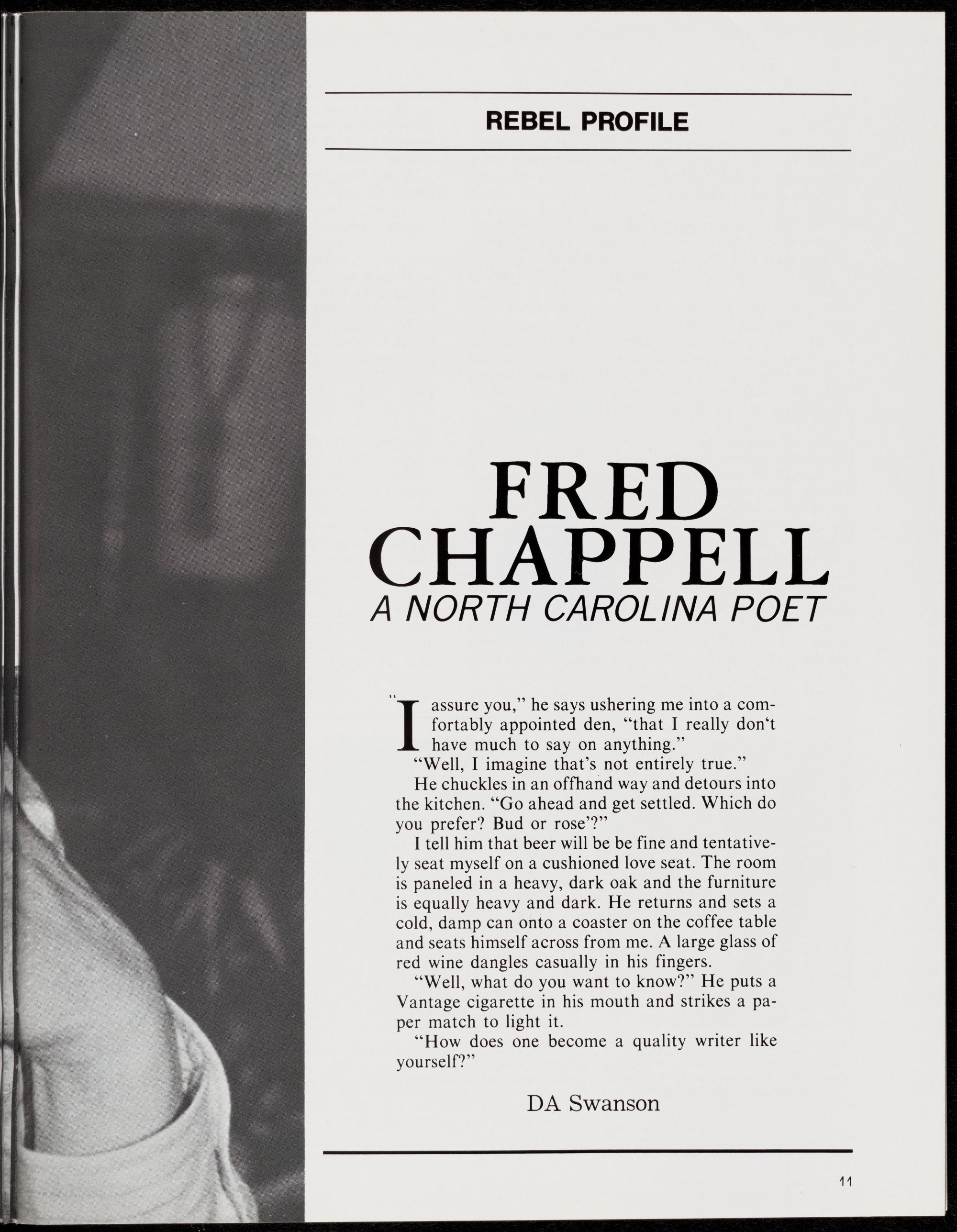 content. However, this issue includes an insightful profile on Fred Chappell, one of