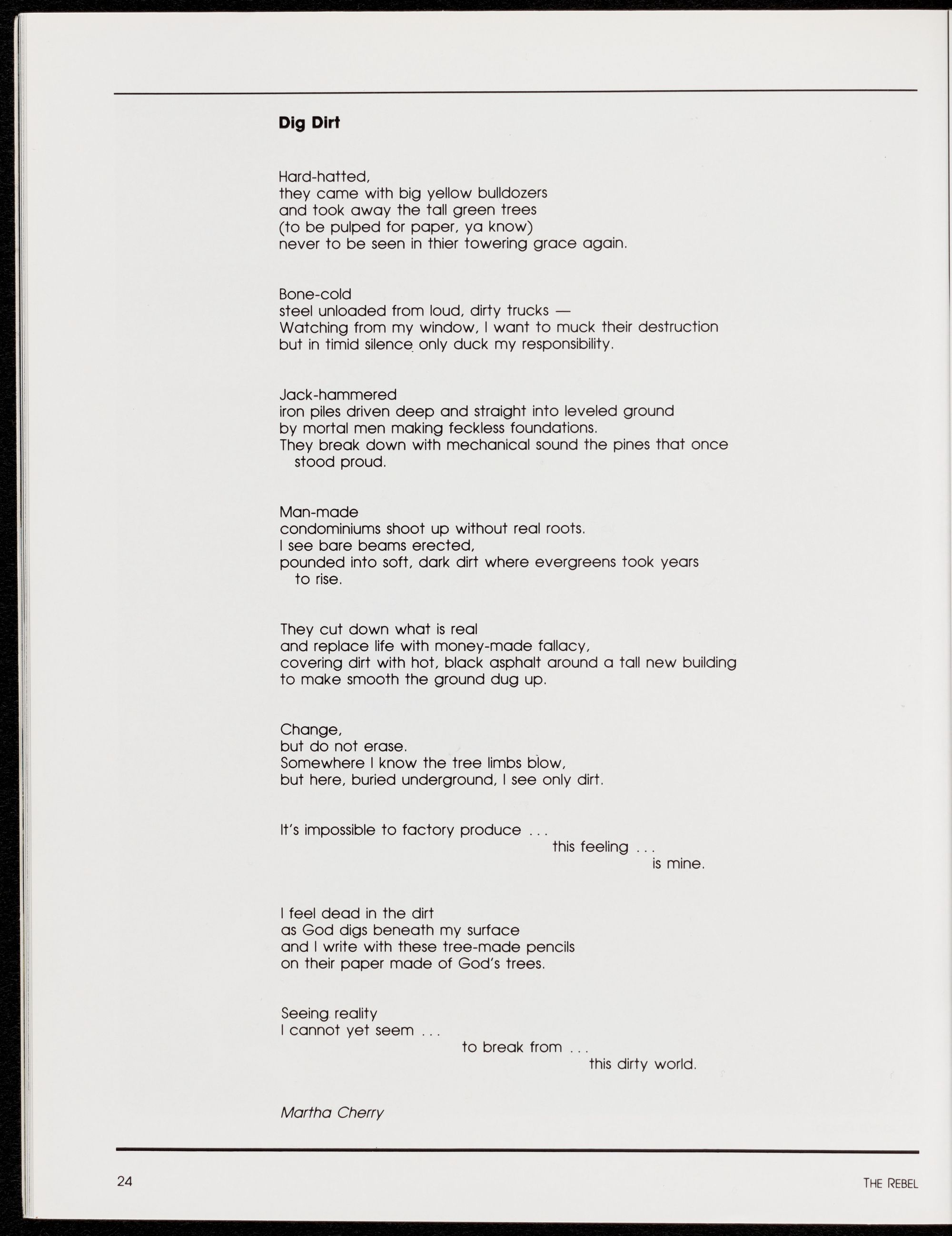 Cover designed for the Rebel T87 by Hayes Henderson.