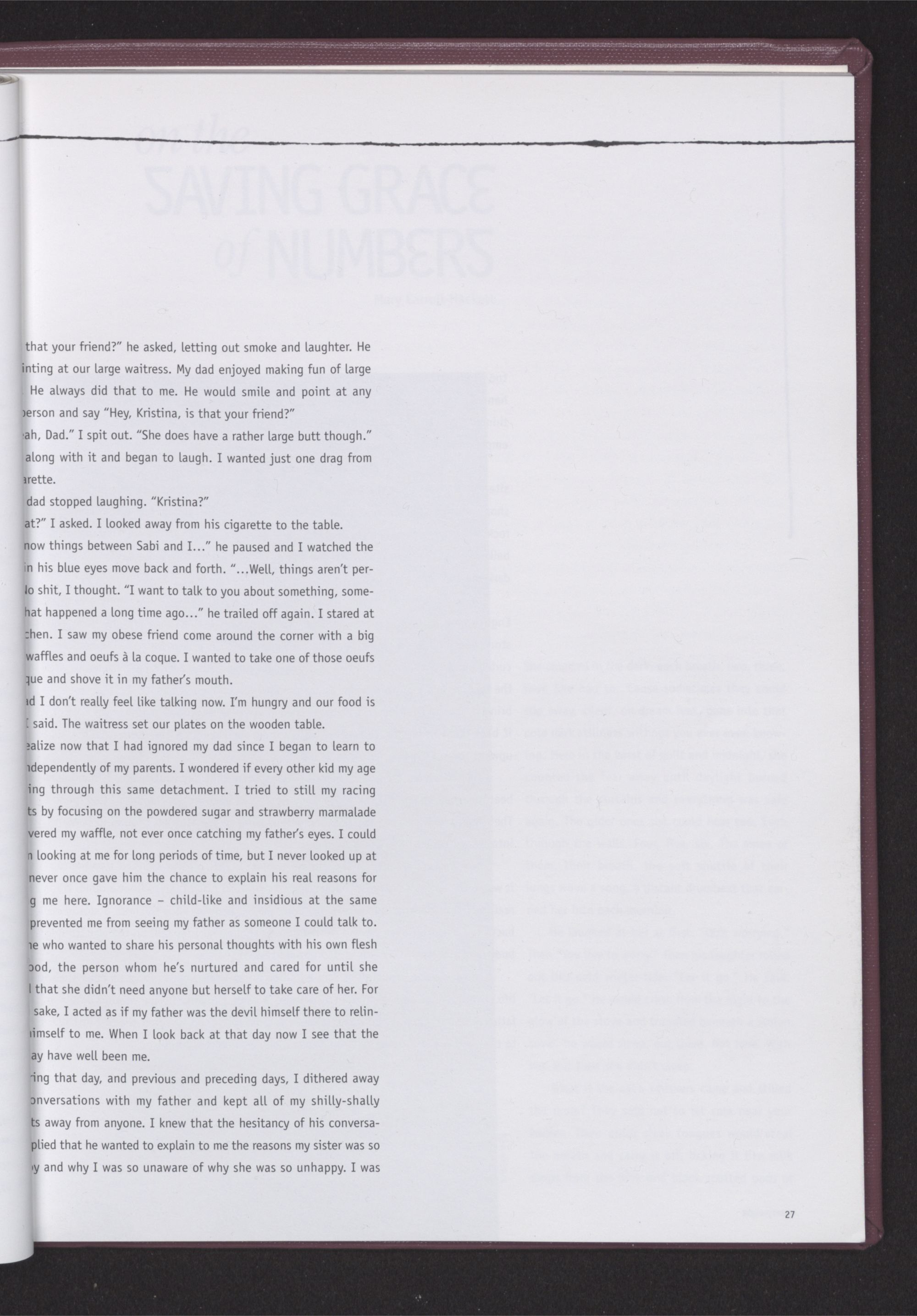 On the Saving Grace of Numbers Mary Carroll-Hackett Second Place 29