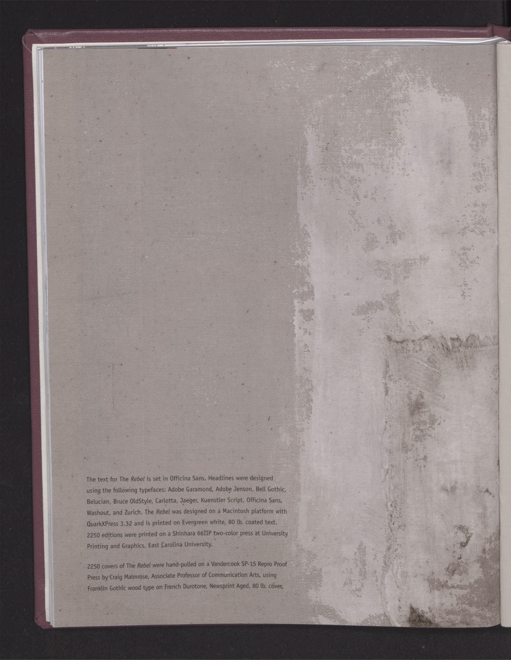 2250 covers of The Rebel were hand-pulled on a Vandercook SP-15 Repro Proof