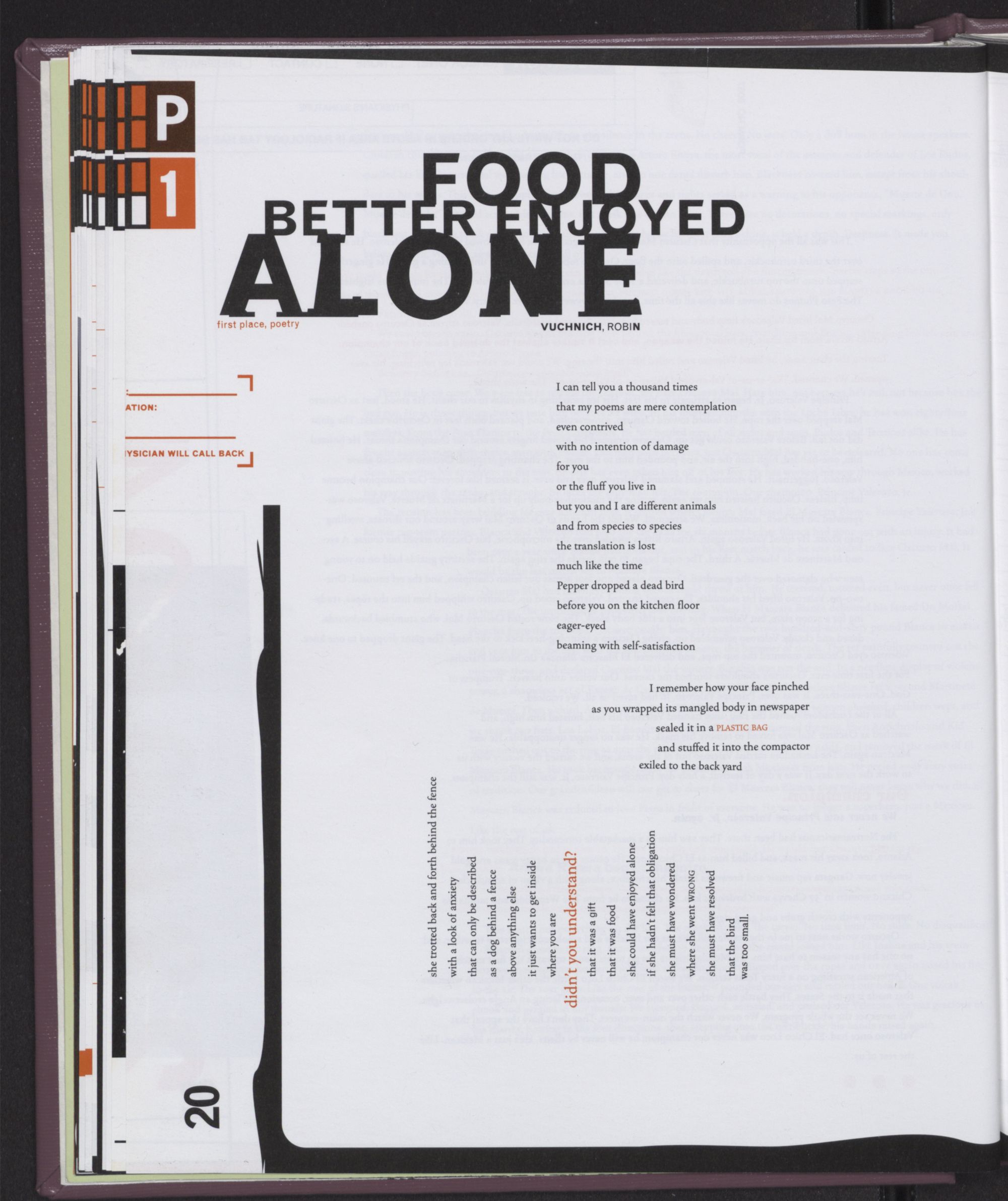 FOOD BETTER ENJOYED ALONE Robin Vuchnich