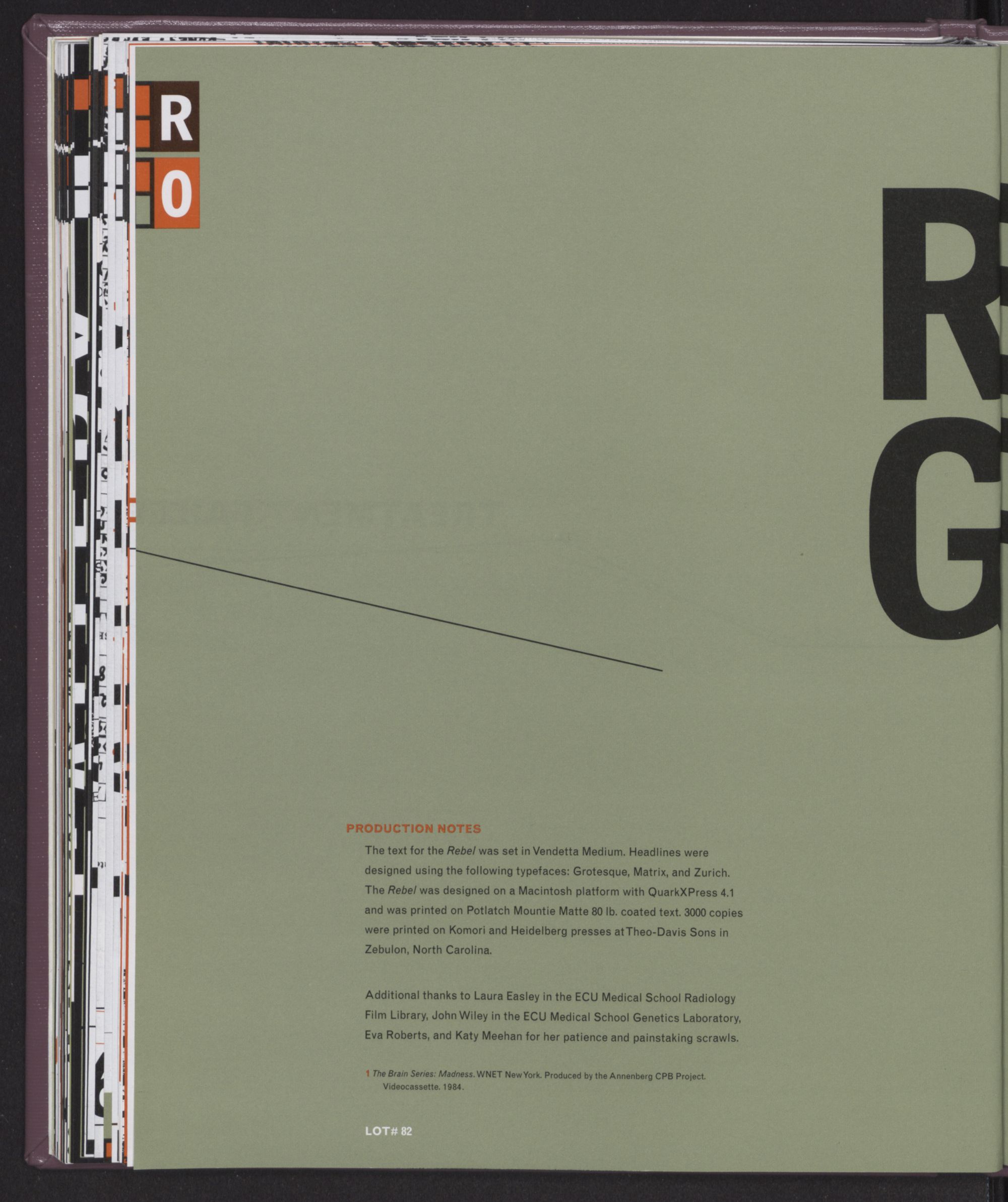 The Rebe/ was designed on a Macintosh platform with QuarkXPress 4.1