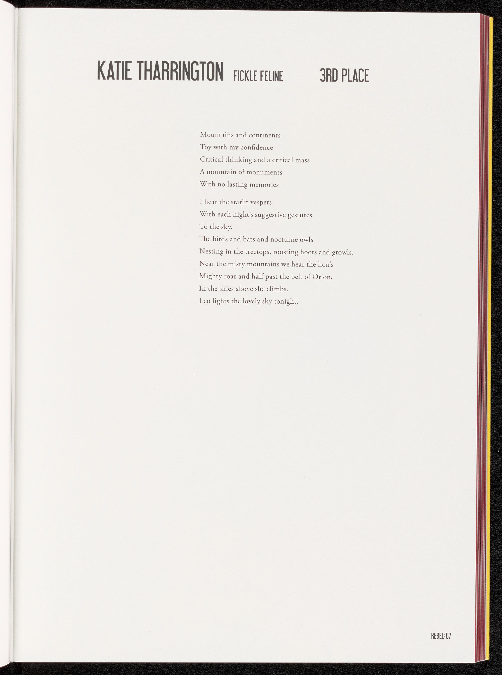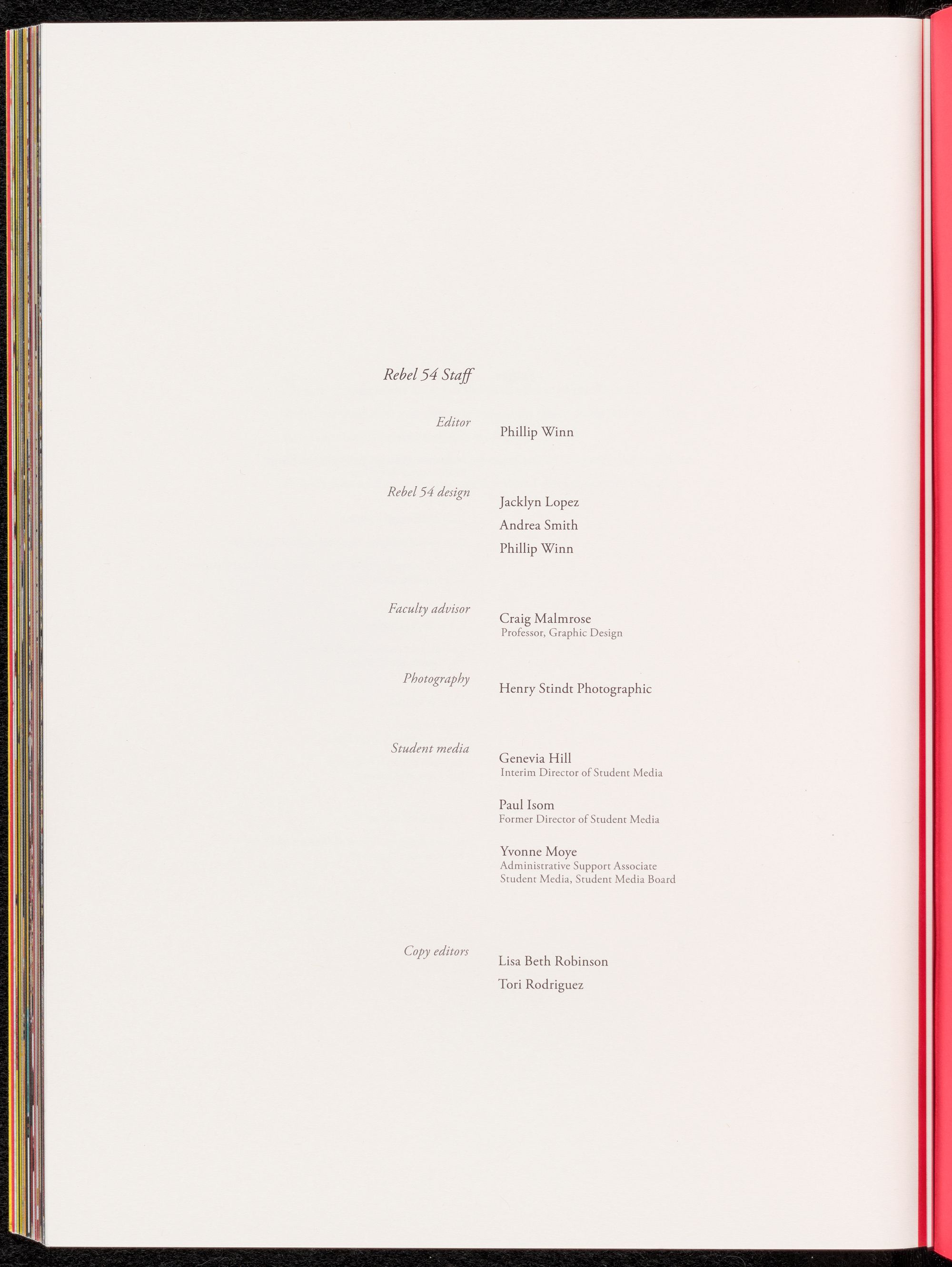 1, this issue of the Rebel literary arts magazine, we strive to show the