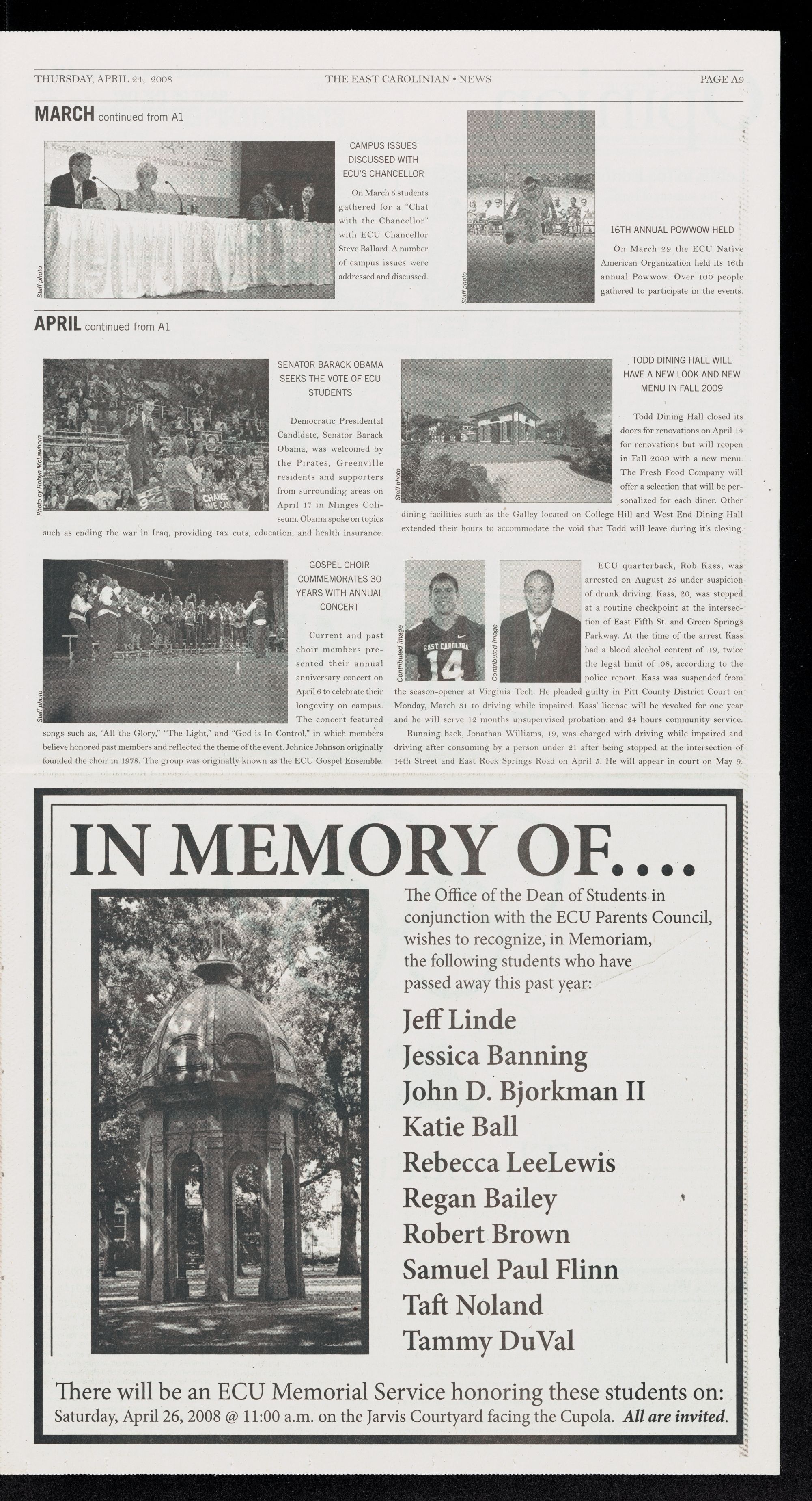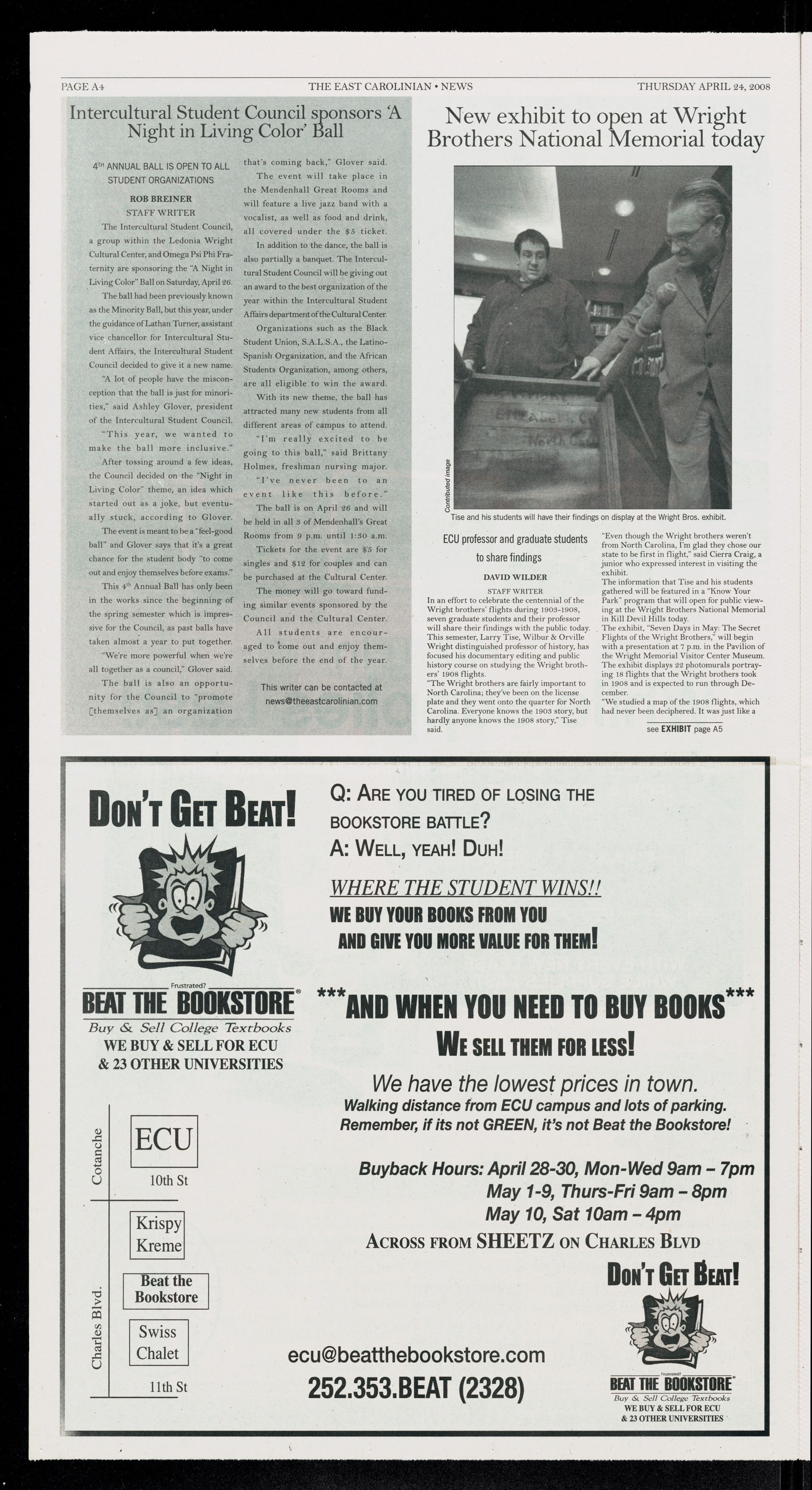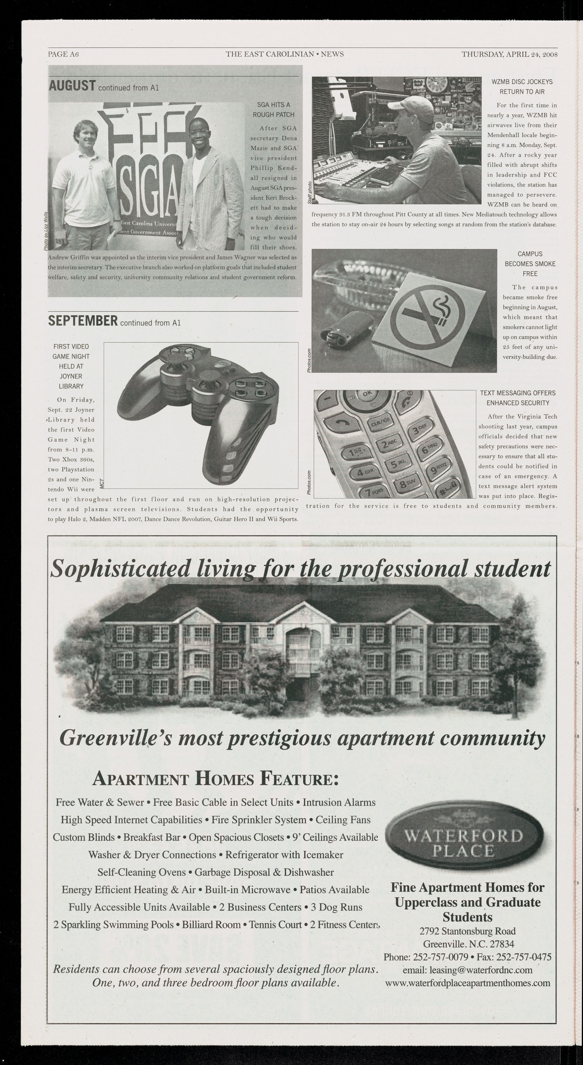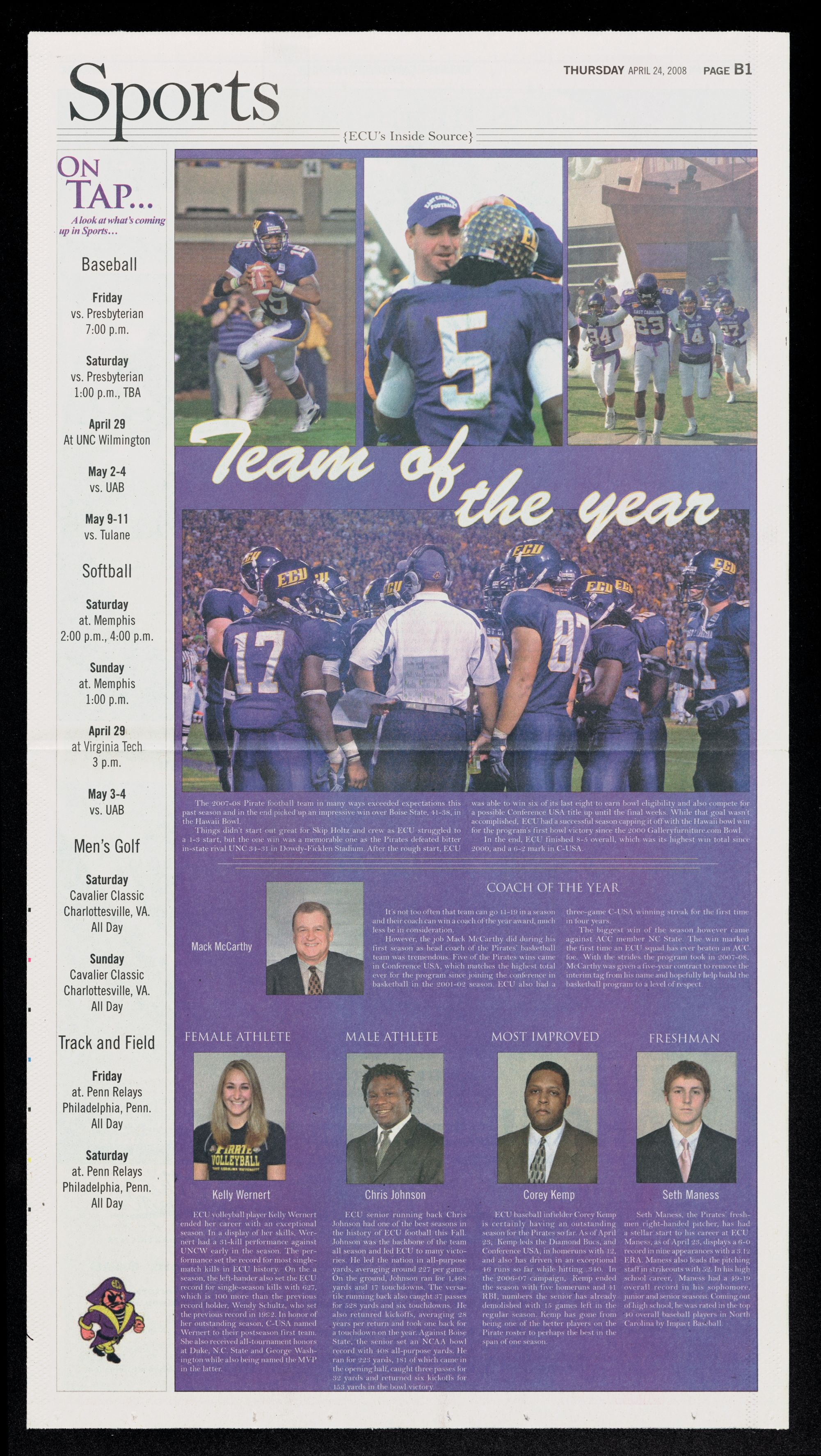 East Carolina's student-run campus newspaper was first published in 1923 as the East Carolina Teachers College News (1923-1925). It has been re-named as The Teco Echo (1925, 1926-1952), East Carolinian (1952-1969), Fountainhead (1969-1979), and The East Carolinian (1969, 1979-present). It includes local, state, national, and international stories with a focus on campus events.