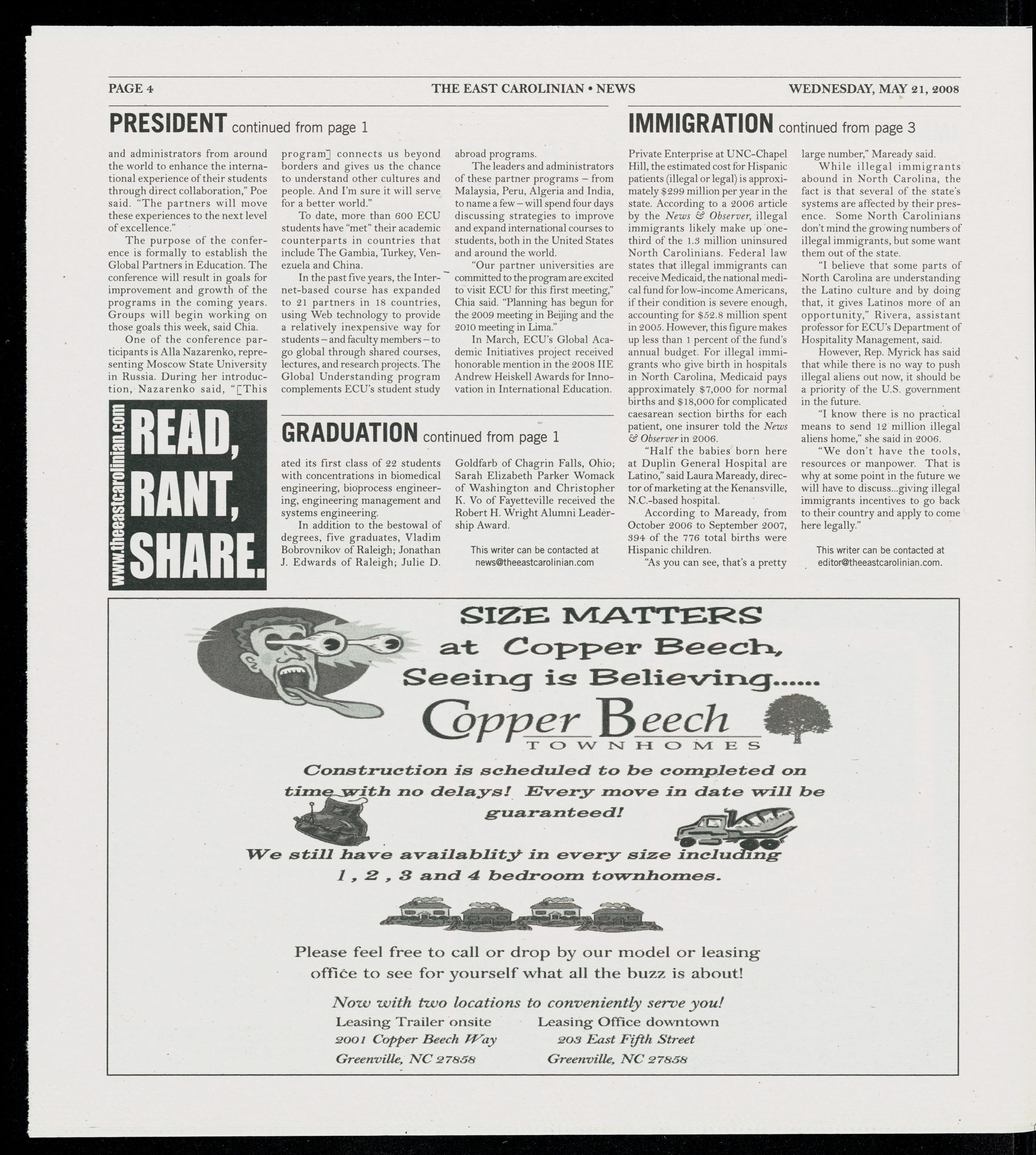 PAGE 16 THE EAST CAROLINIAN WEDNESDAY, MAY 21, 2008