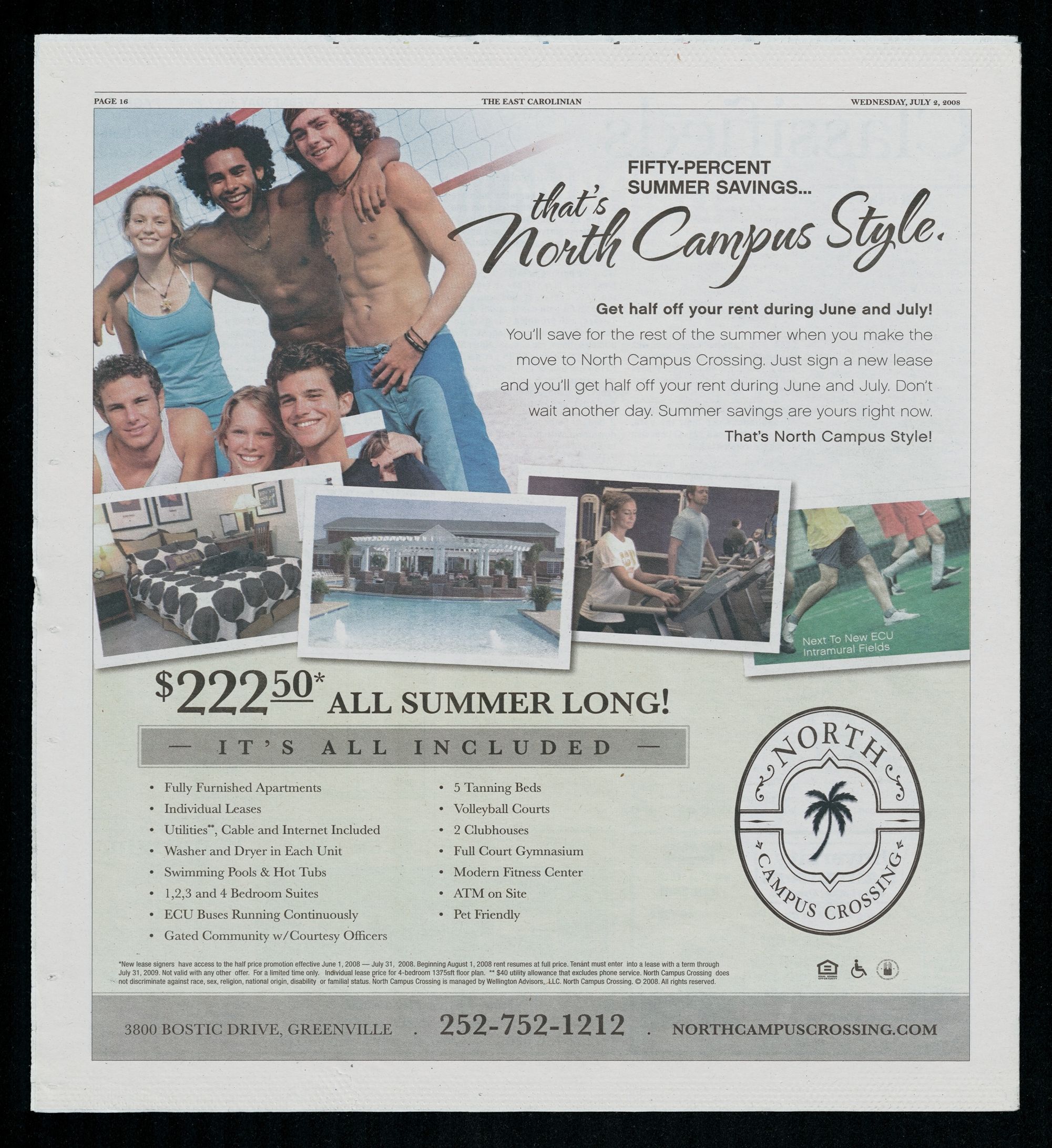 ~ not discriminate against race, sex, religion, national origin, disability or familial status. North Campus Crossing is managed by Wellington Advisors, LLC. North Campus Crossing. © 2008. All rights reserved.