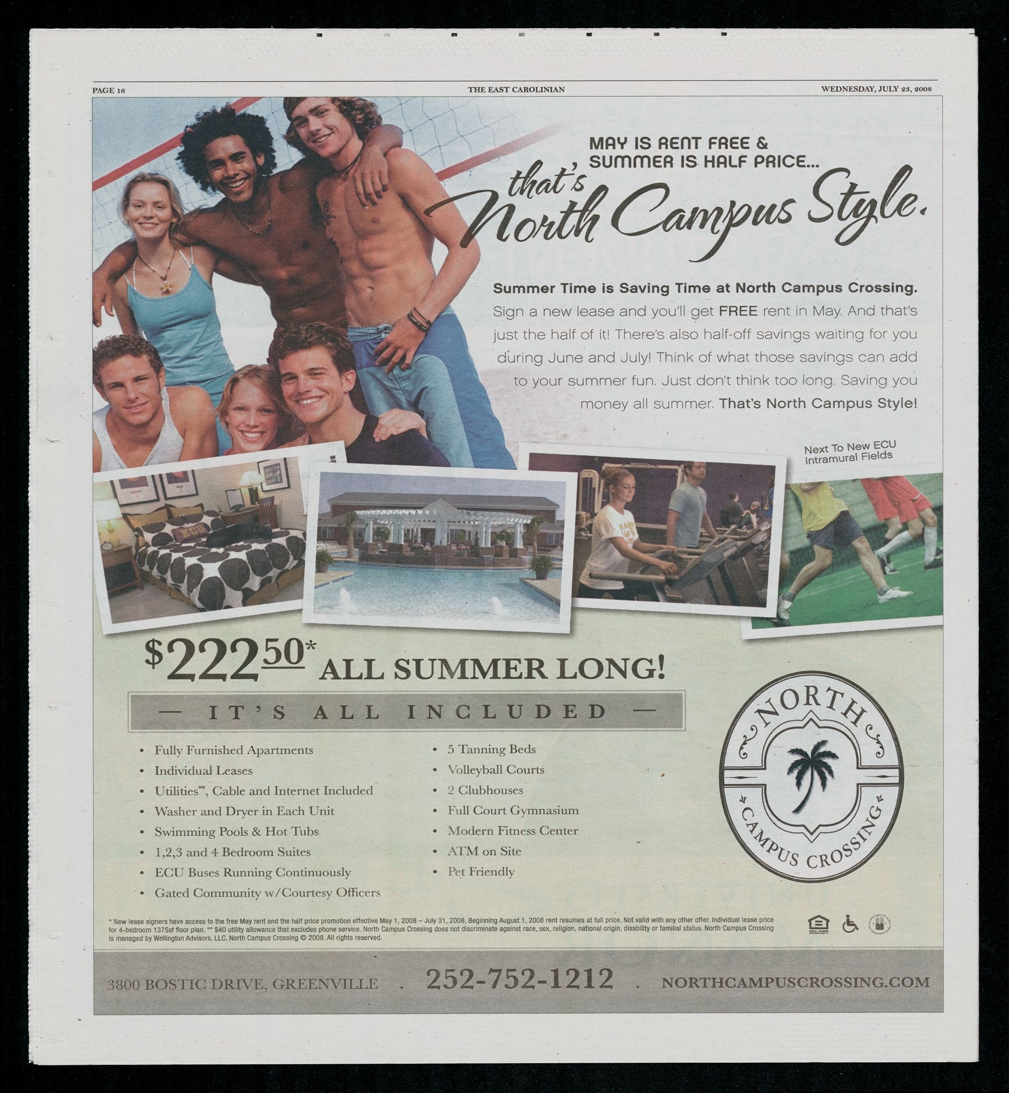 * New lease signers have access to the free May rent and the half price promotion effective May 1, 2008 " July 31, 2008. Beginning August 1, 2008 rent resumes at full price. Not valid with any other offer. Individual lease price