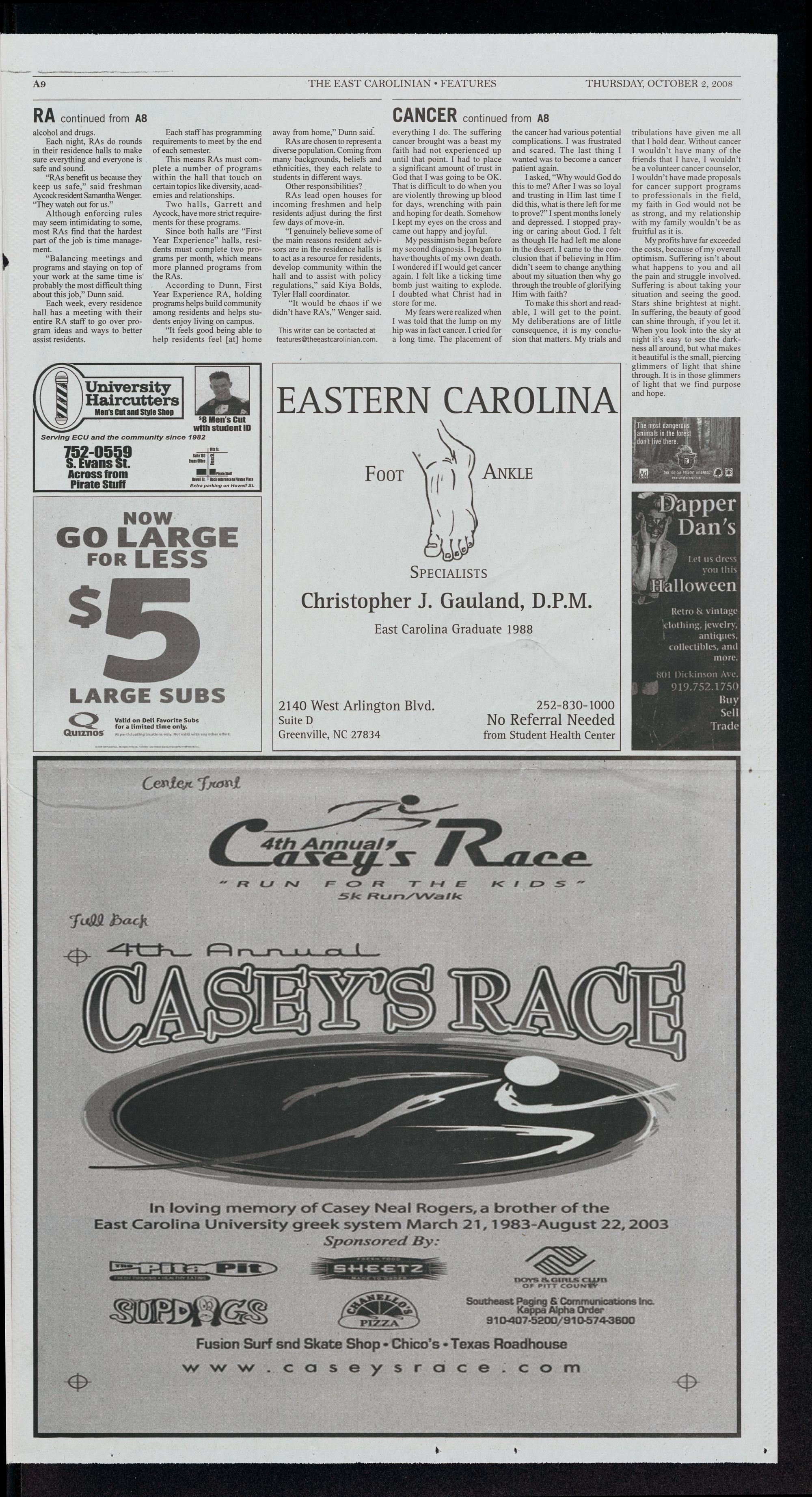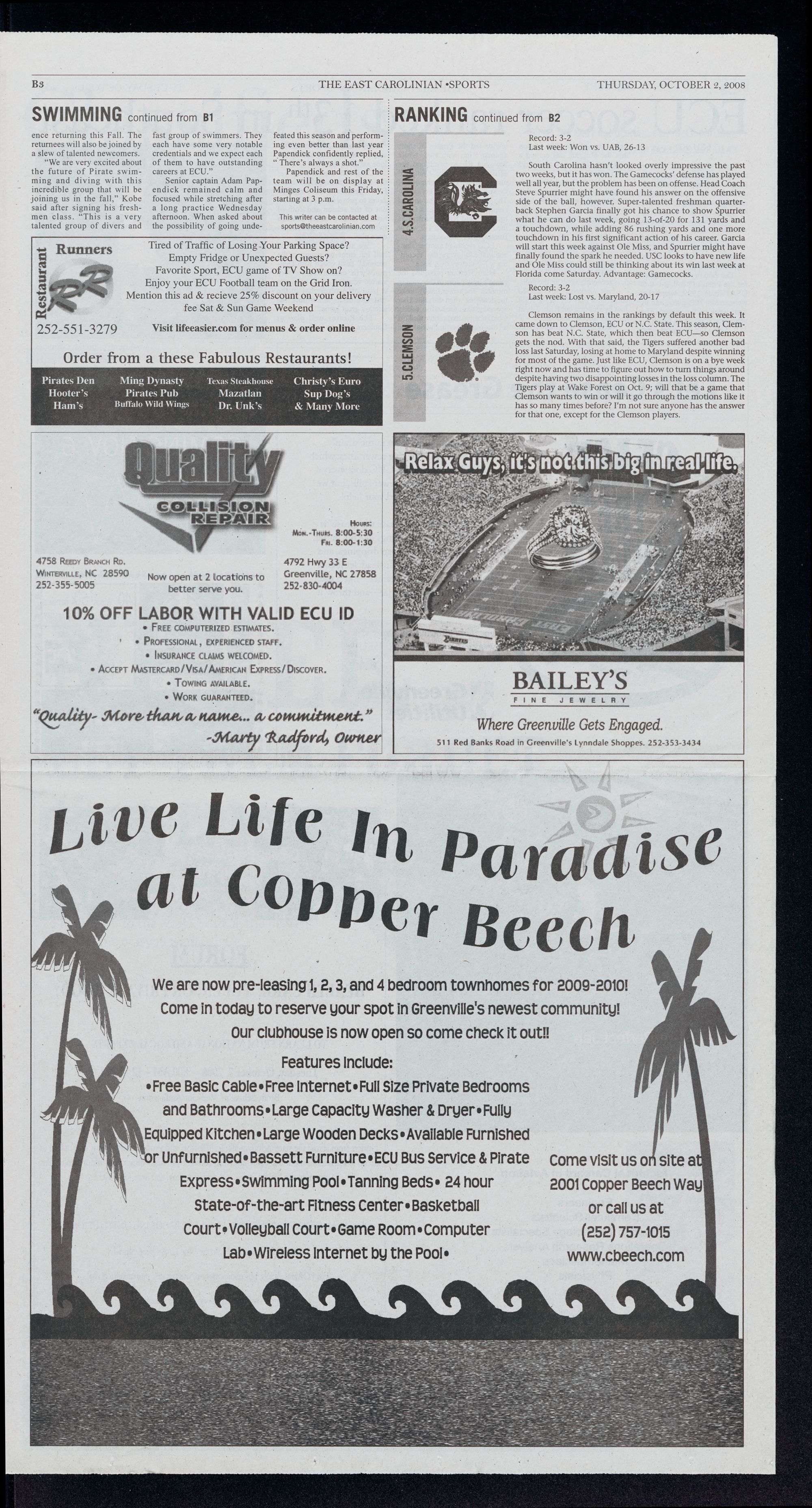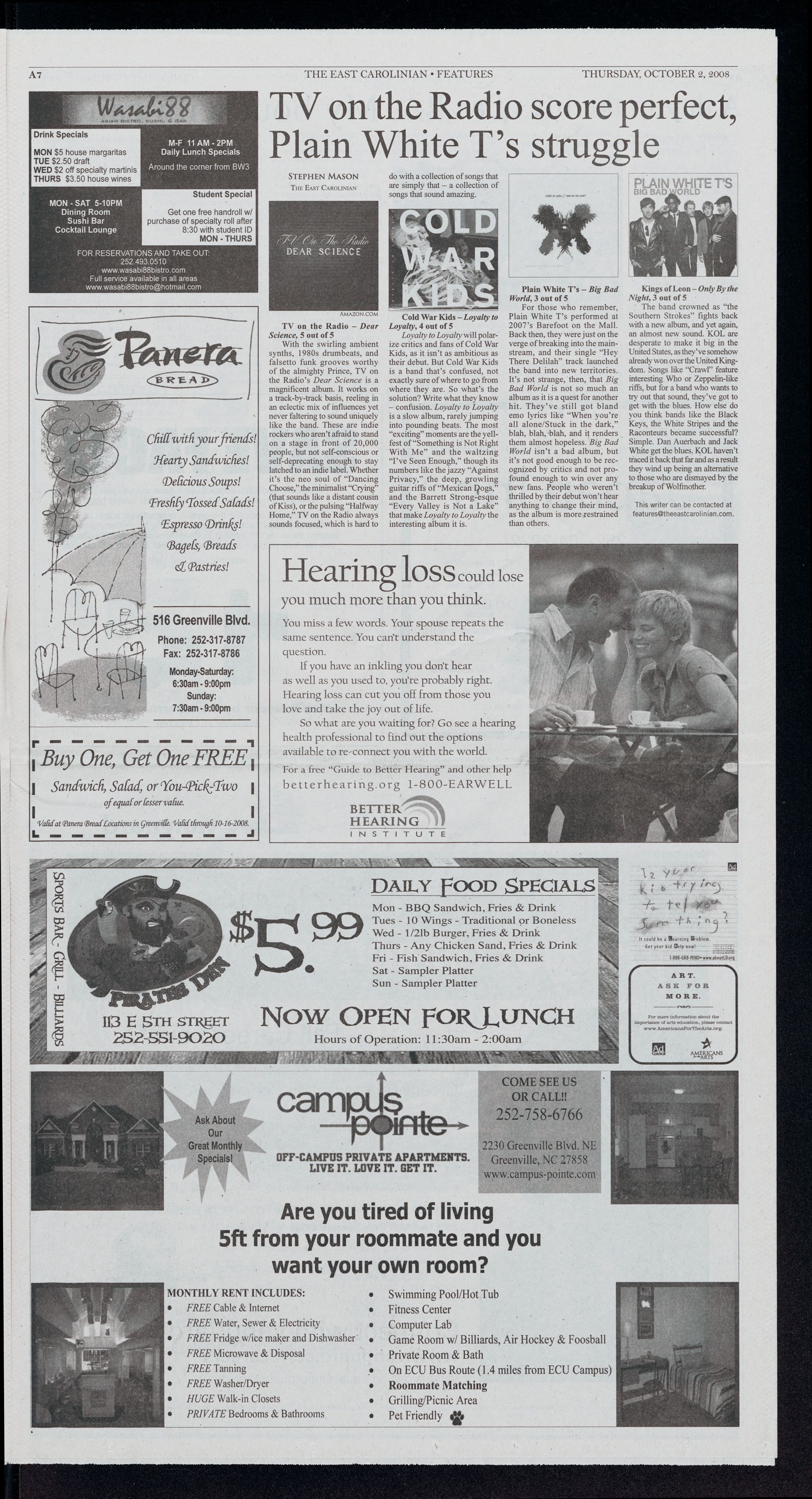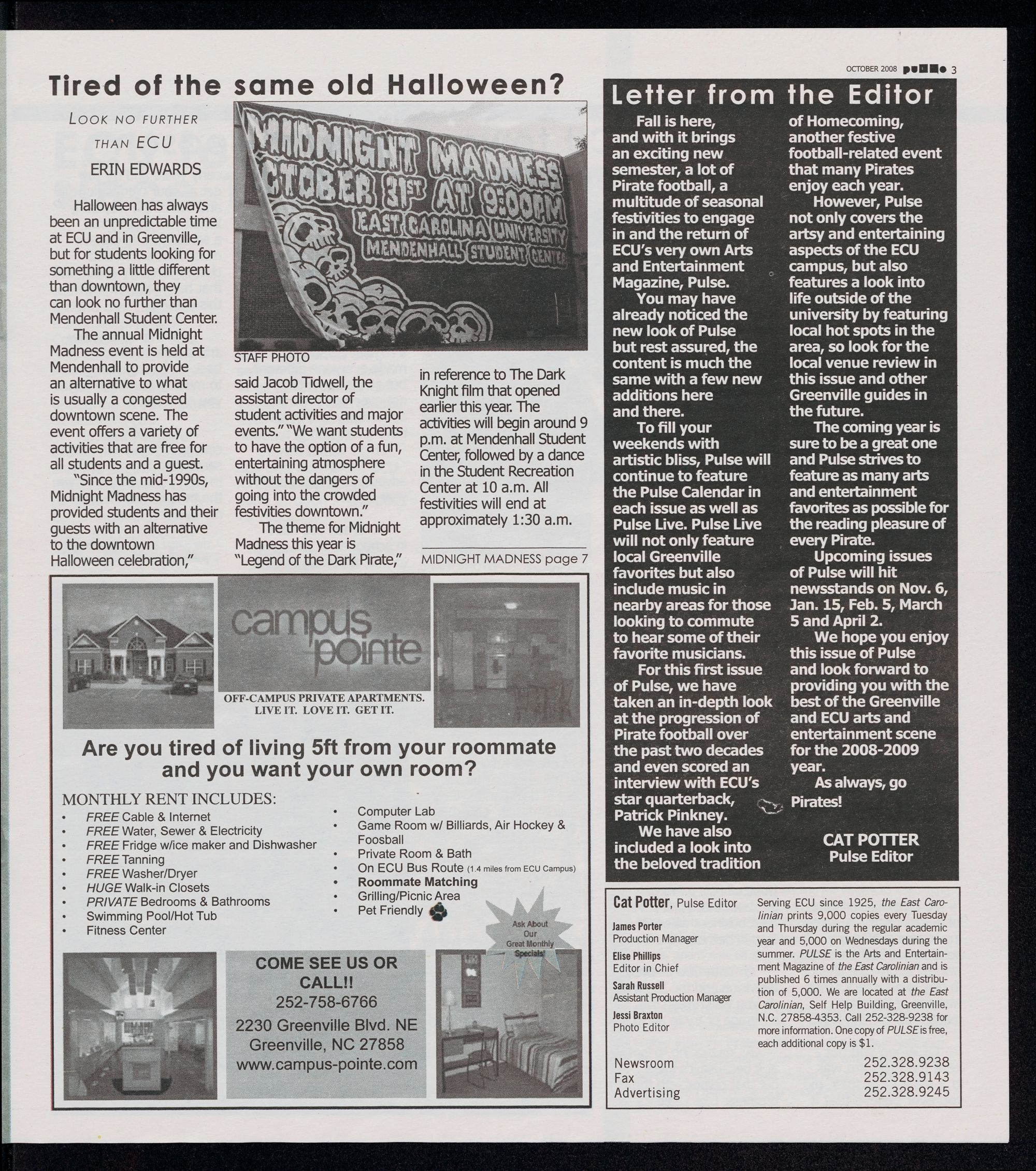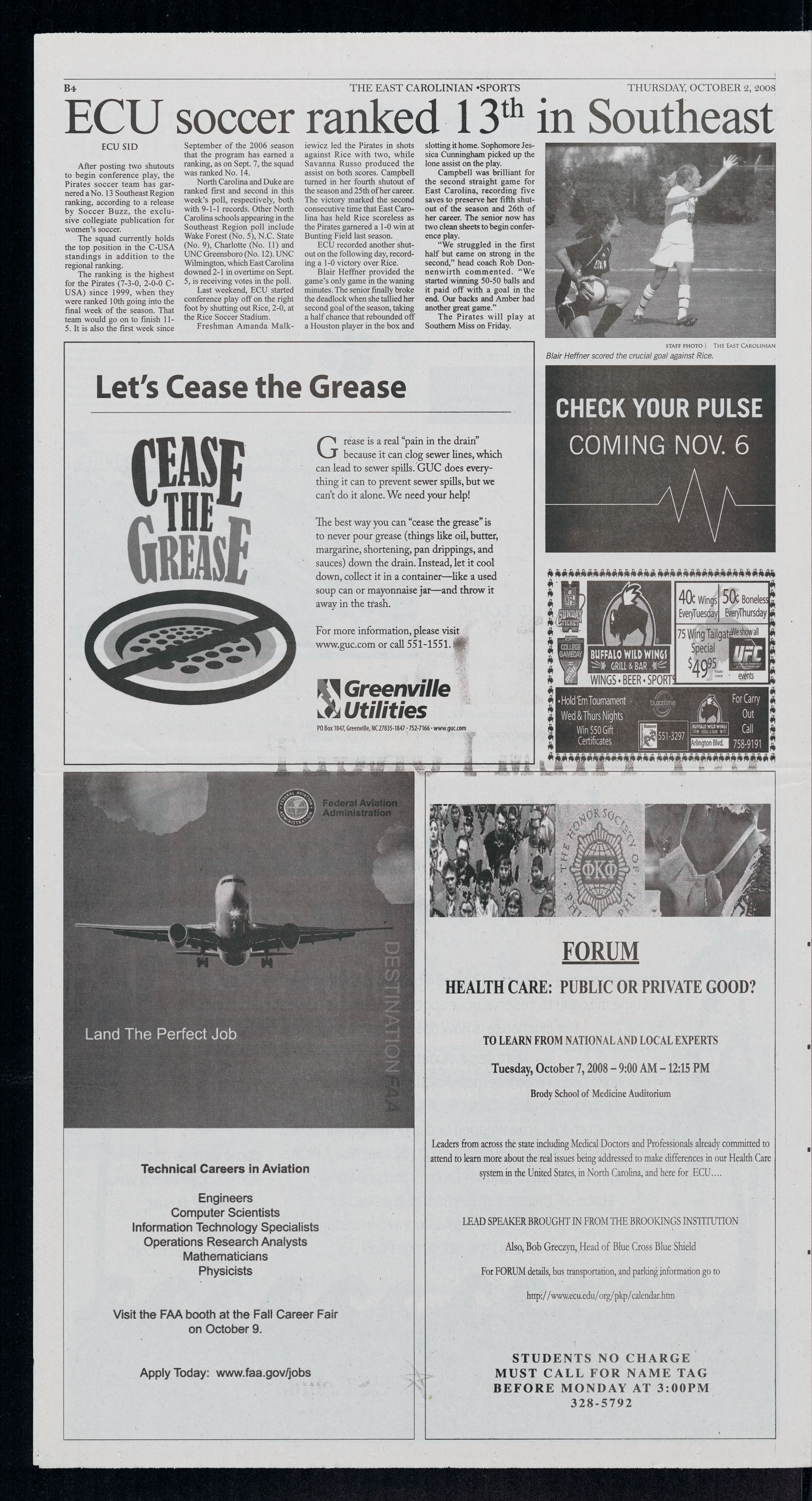 East Carolina's student-run campus newspaper was first published in 1923 as the East Carolina Teachers College News (1923-1925). It has been re-named as The Teco Echo (1925, 1926-1952), East Carolinian (1952-1969), Fountainhead (1969-1979), and The East Carolinian (1969, 1979-present). It includes local, state, national, and international stories with a focus on campus events.