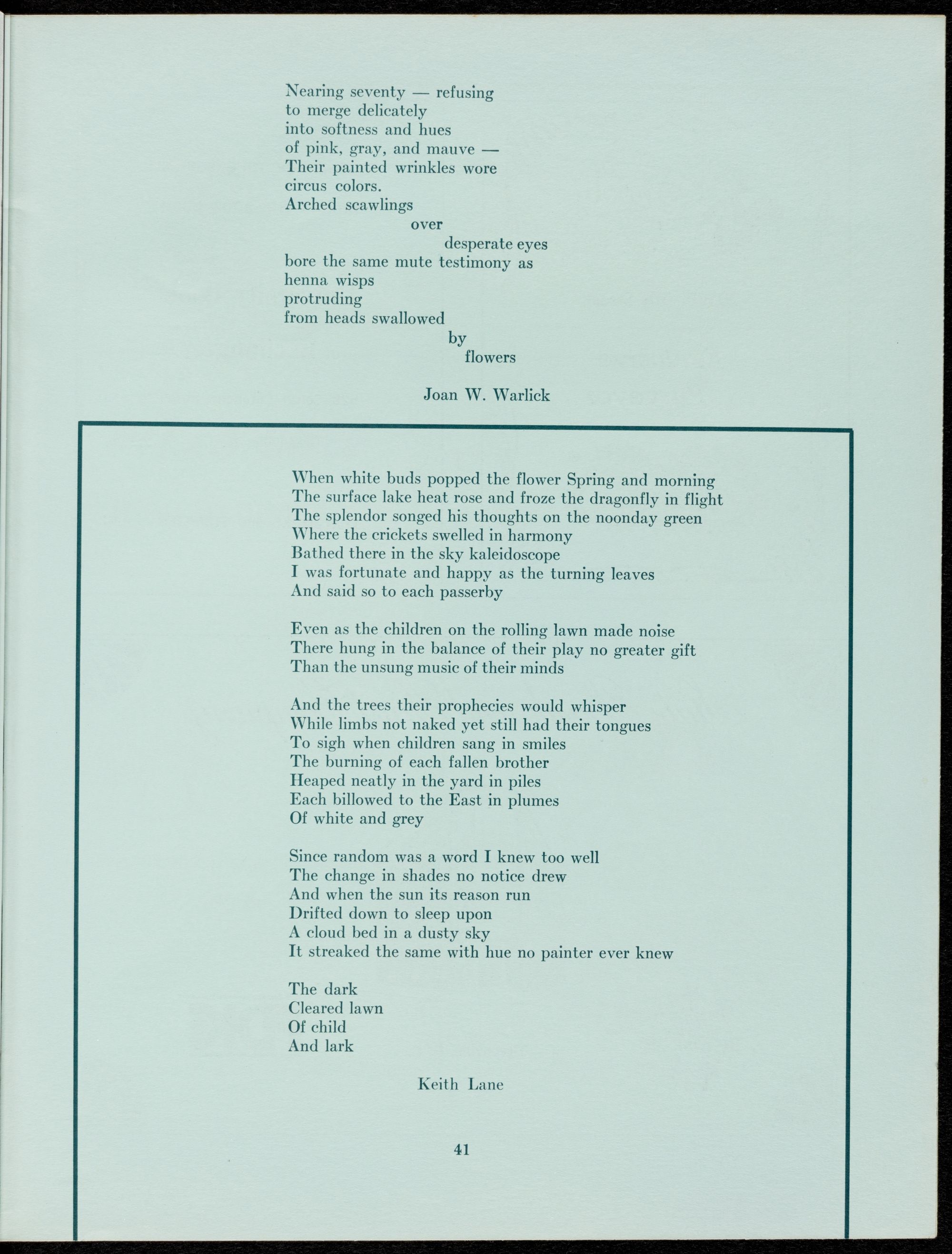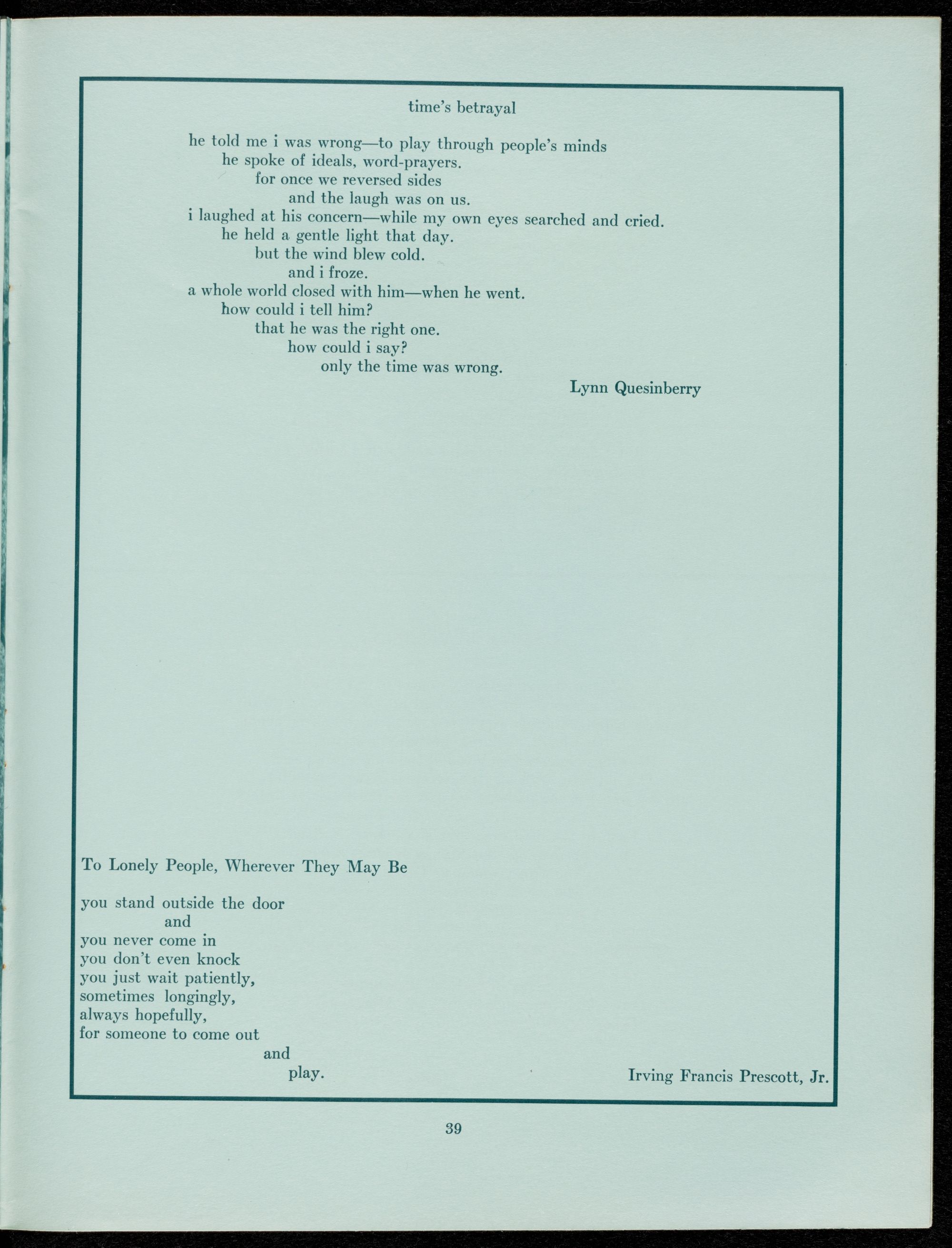 this issue are Lynn Quesinberry, a sophomore Eng-