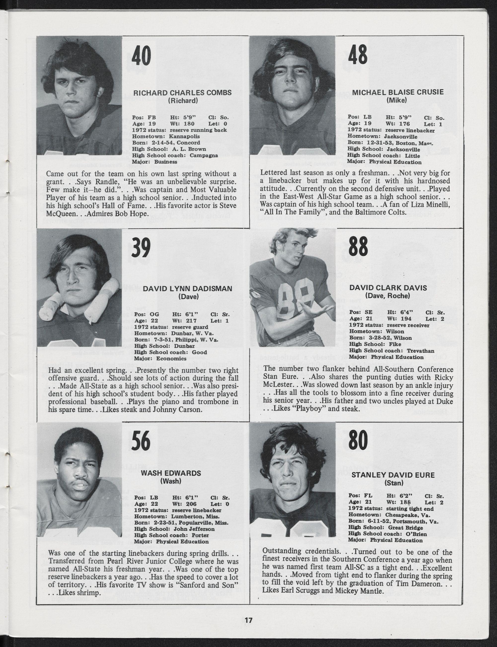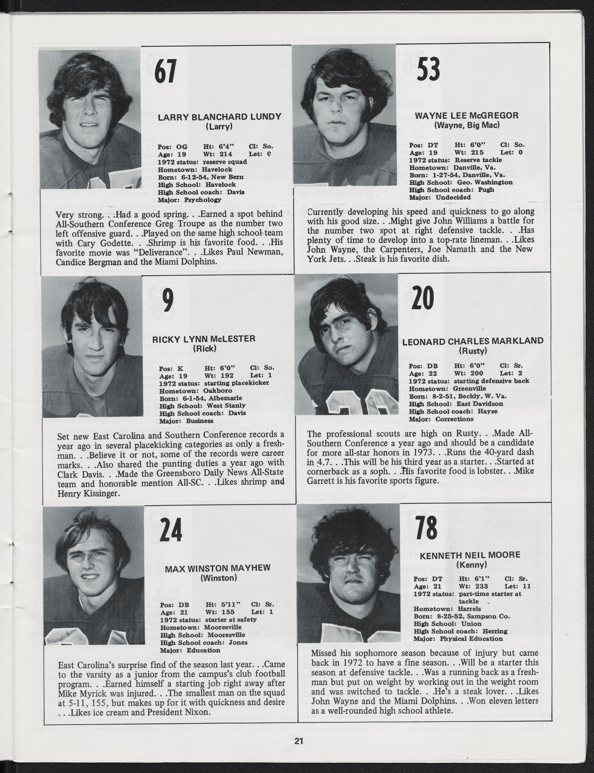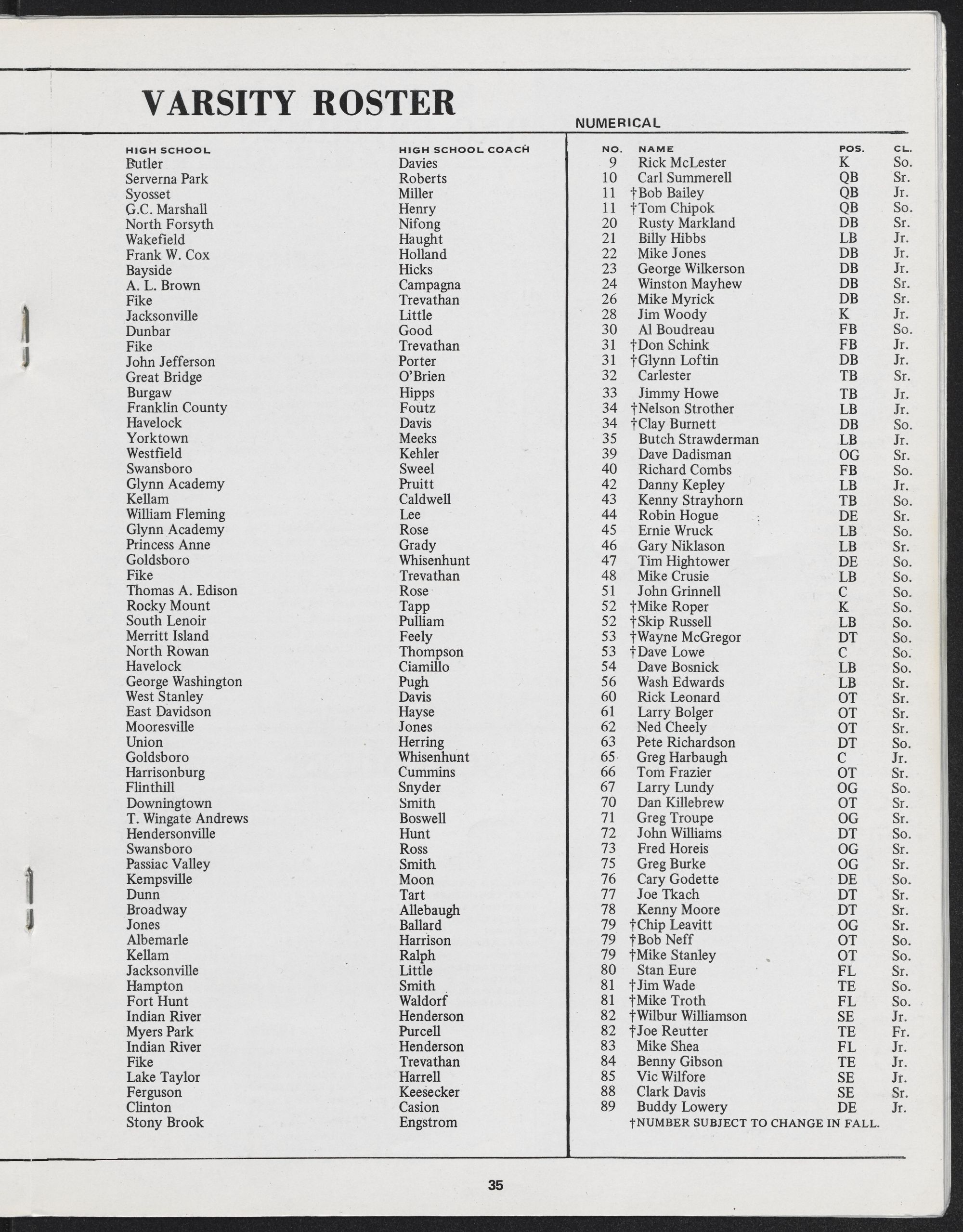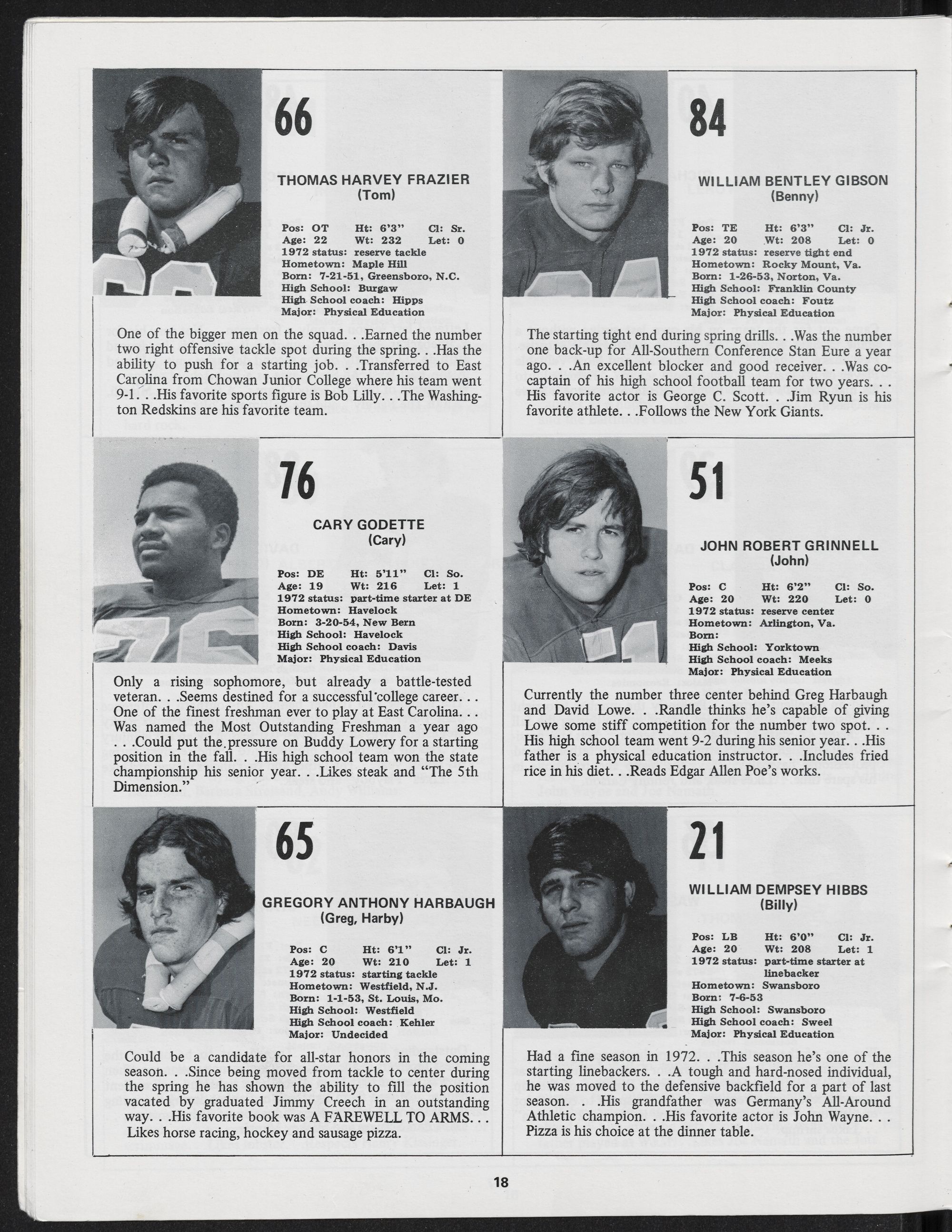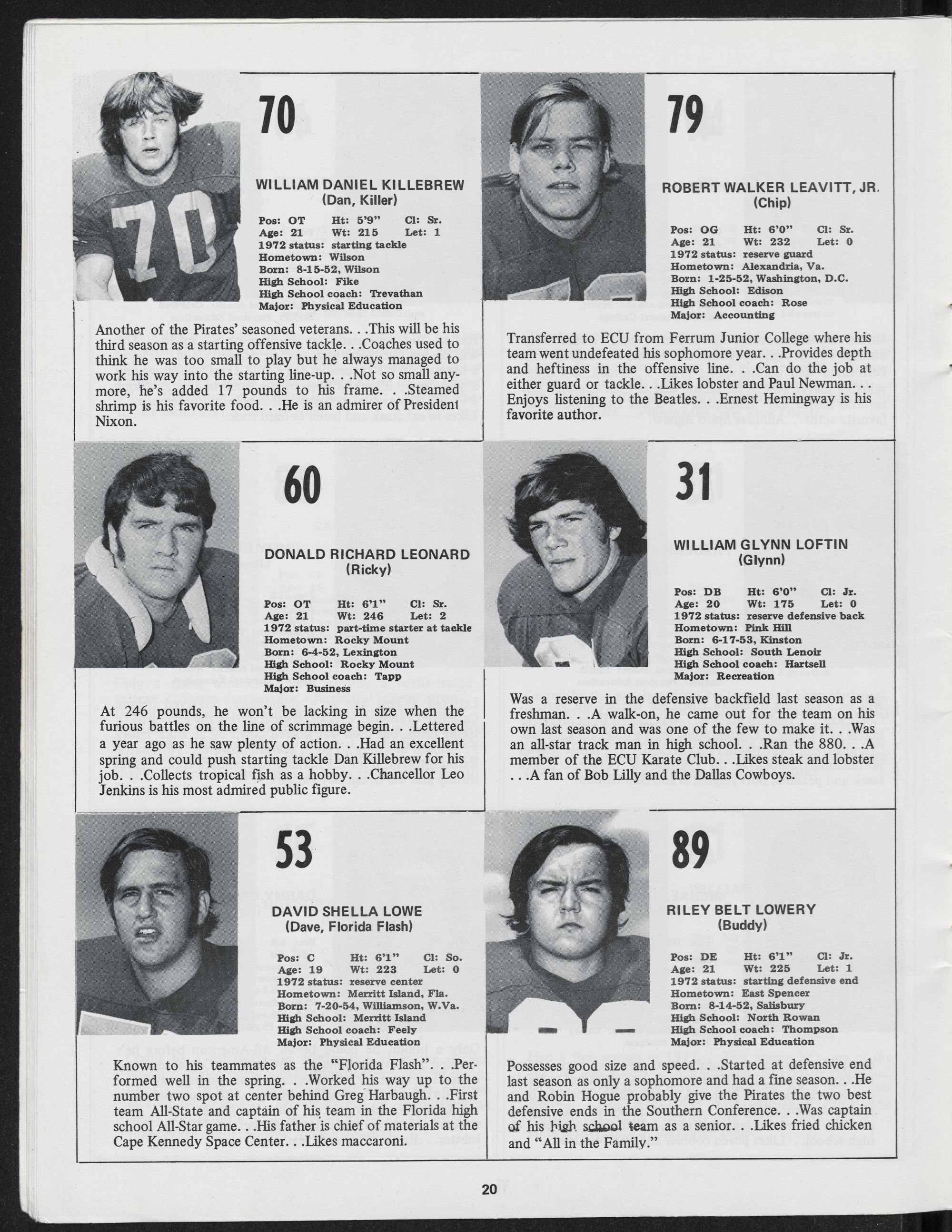 Dave Franklin, and guards Jerome Owens, Ernie Pope and