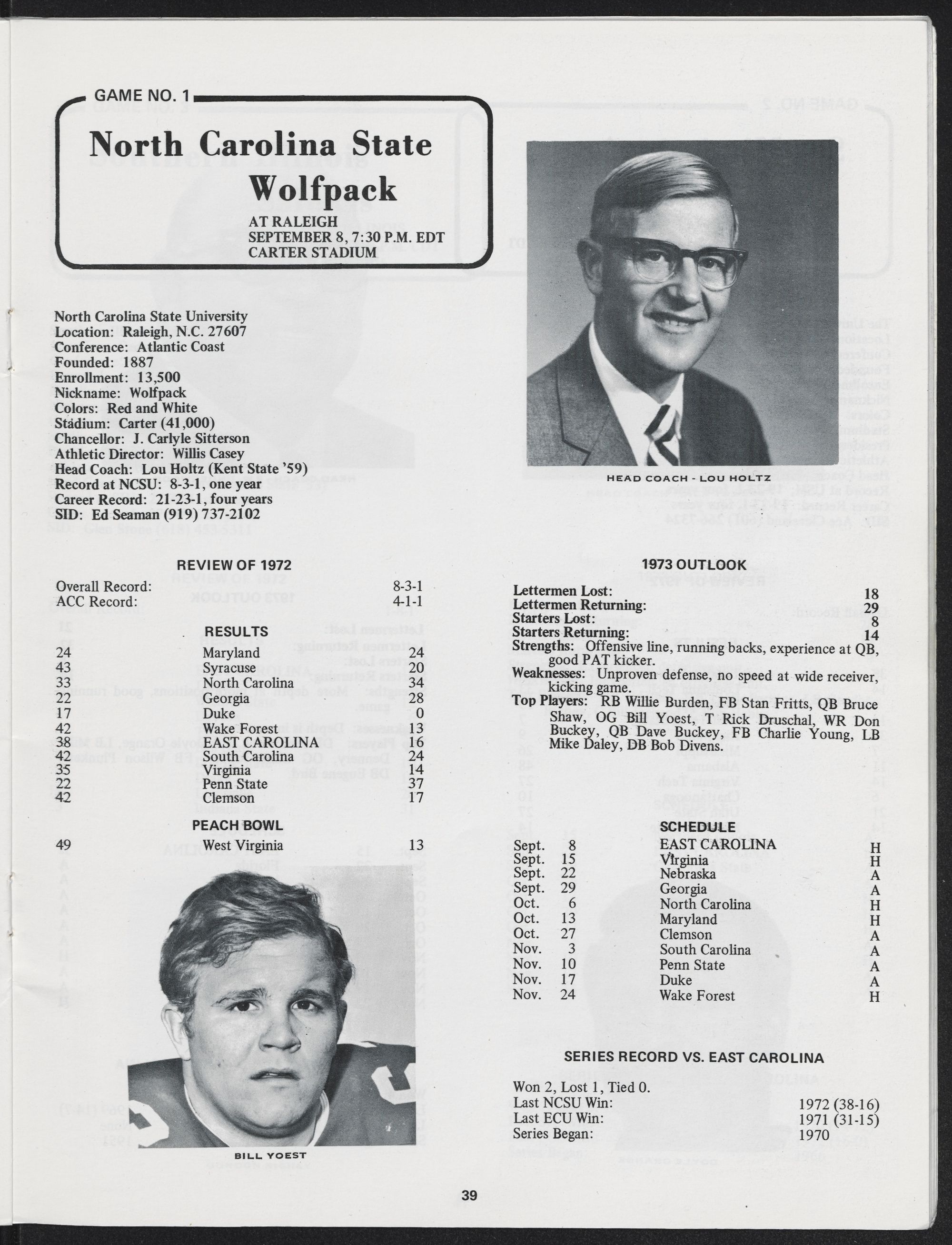 SEPTEMBER 8 NORTH CAROLINA STATE RALEIGH 7:30 EDT