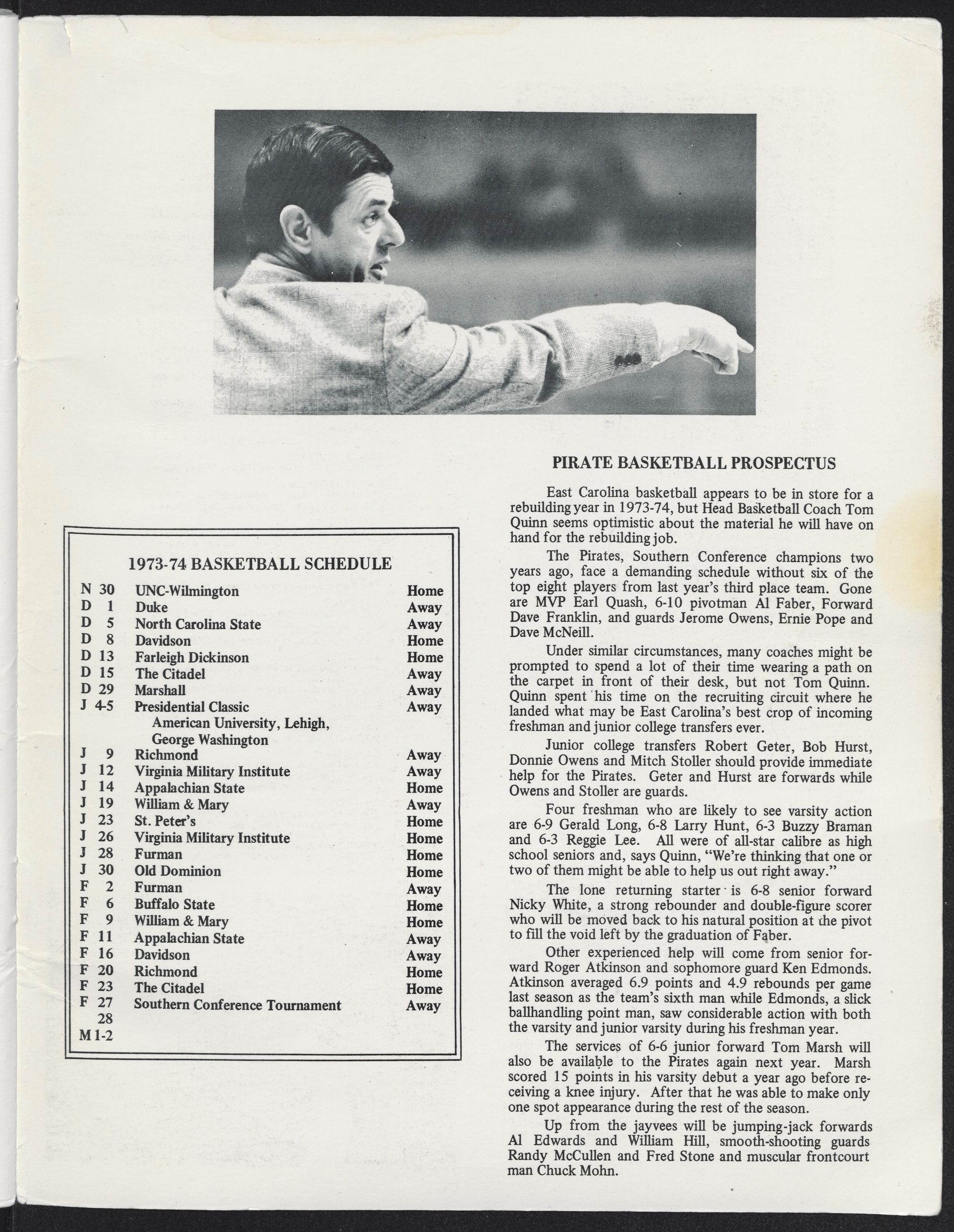 rebuilding year in 1973-74, but Head Basketball Coach Tom