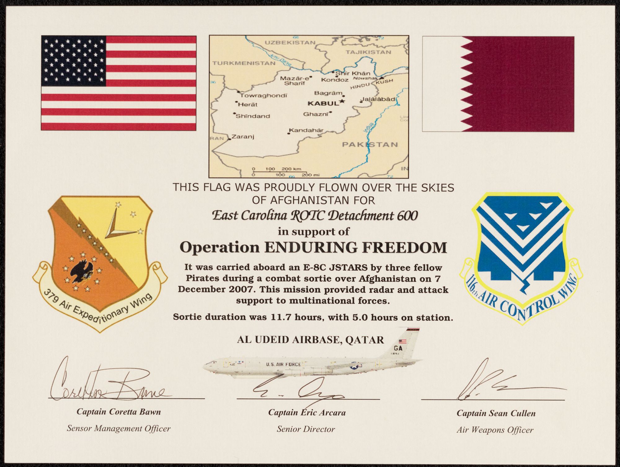 THIS FLAG WAS PROUDLY FLOWN OVER THE SKIES