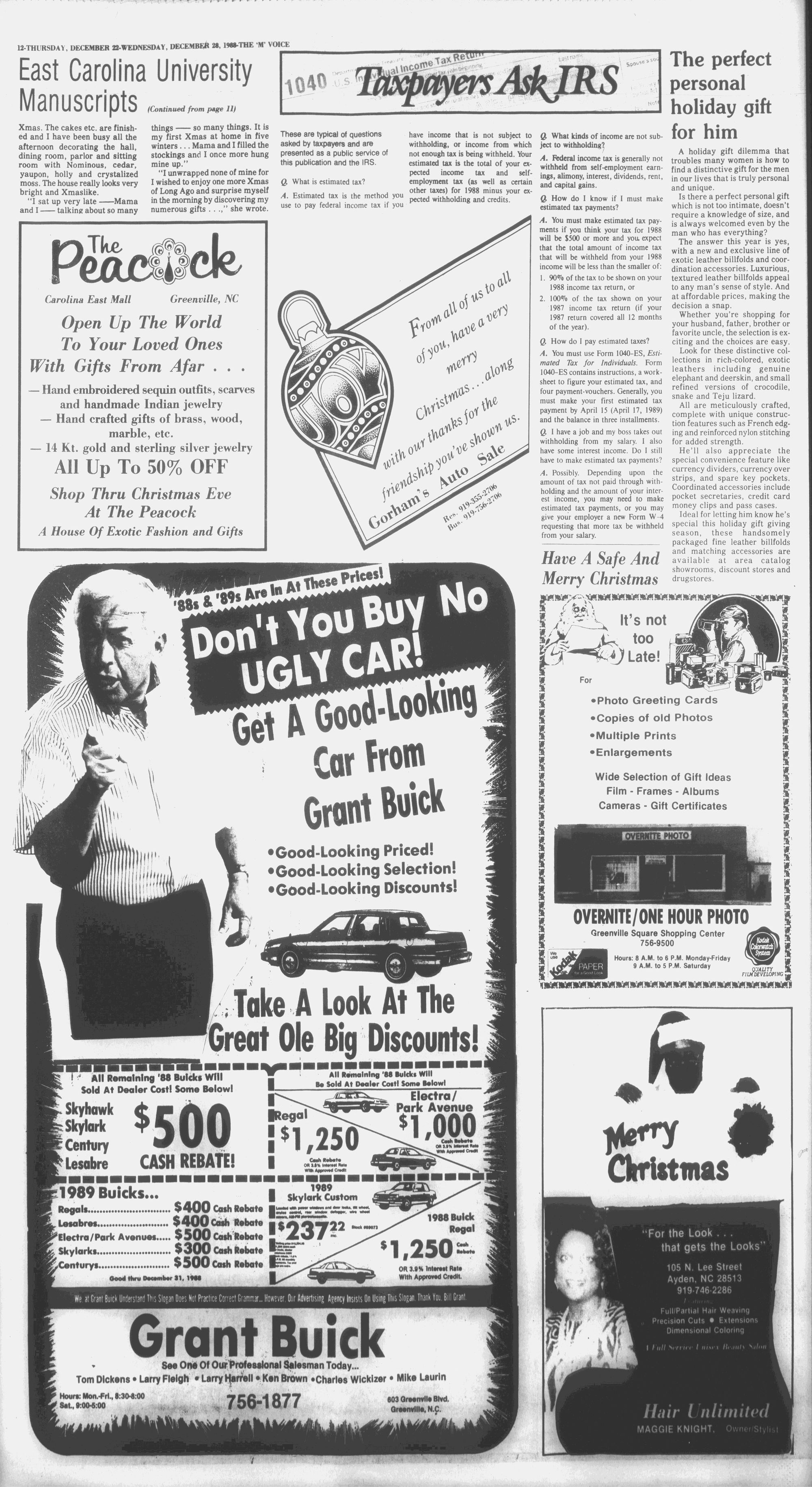 oTHURSDAY DECEMBER 22-WEDNESDAY, DECEMBER 28, 1988-THE ~MT VOICE|