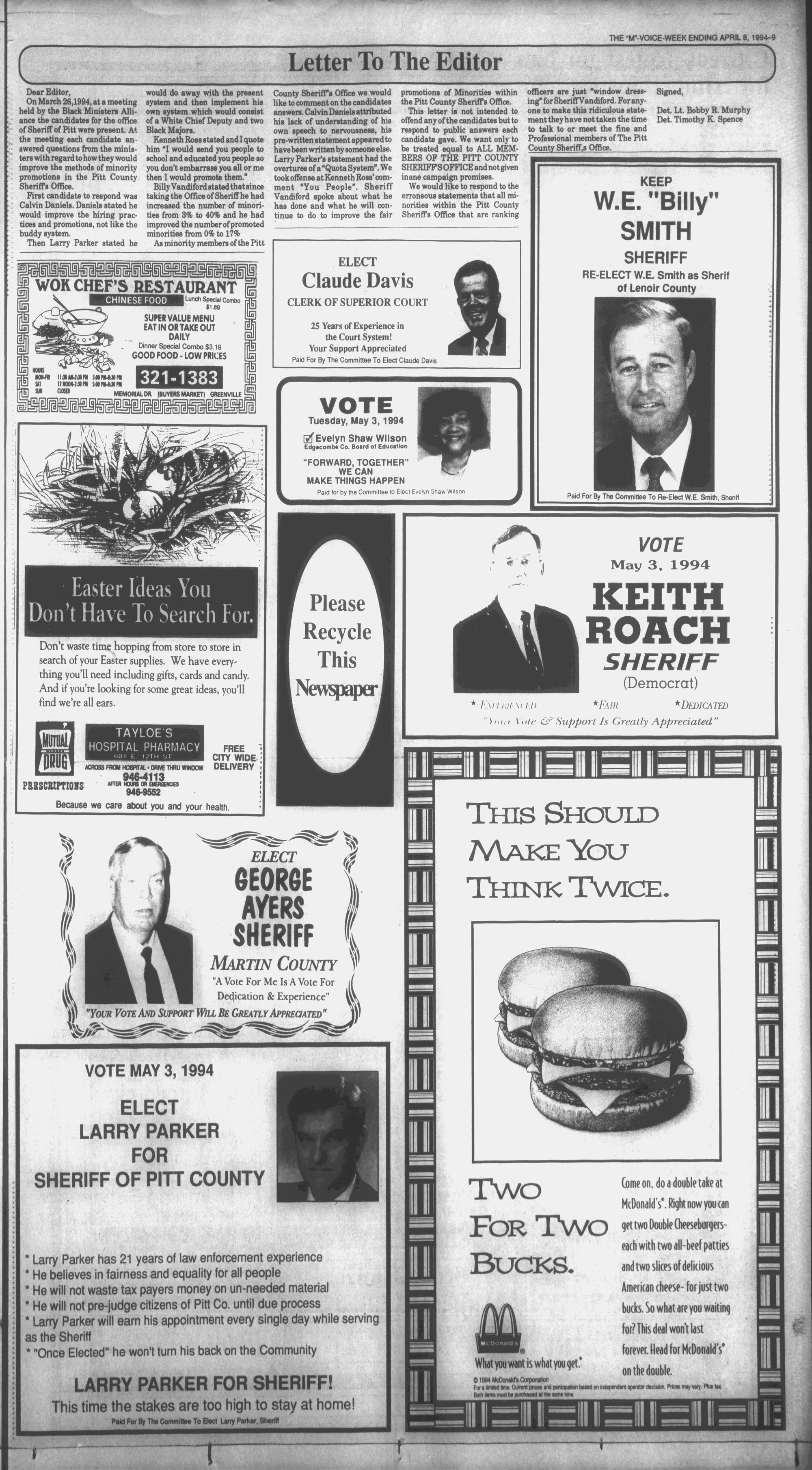 Paid For By The Committee To Re-Elect W.E. Smith, Sheriff