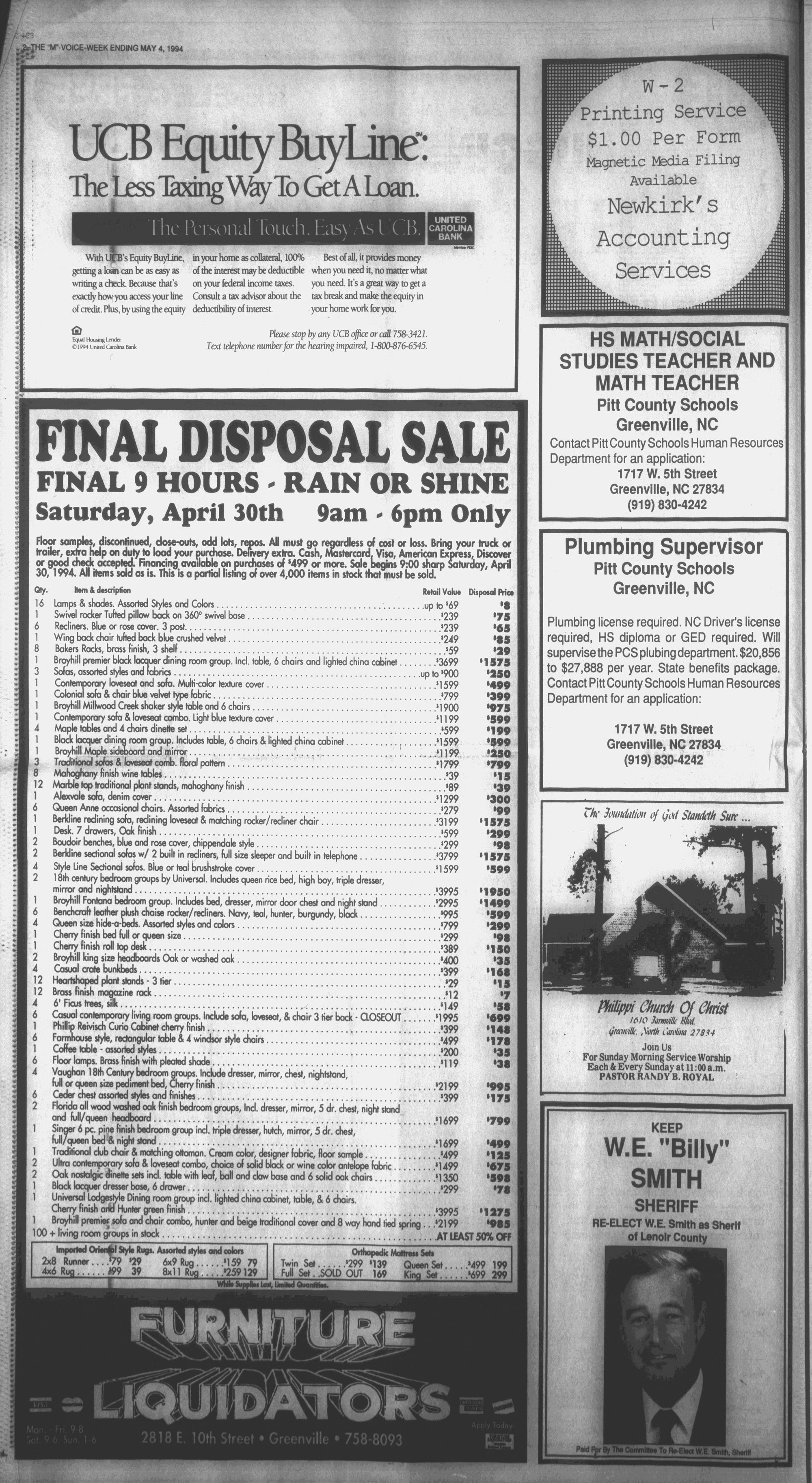 or good check accepted. Financing available on purchases of 499 or more. Sale begins 9:00 sharp Saturday, April