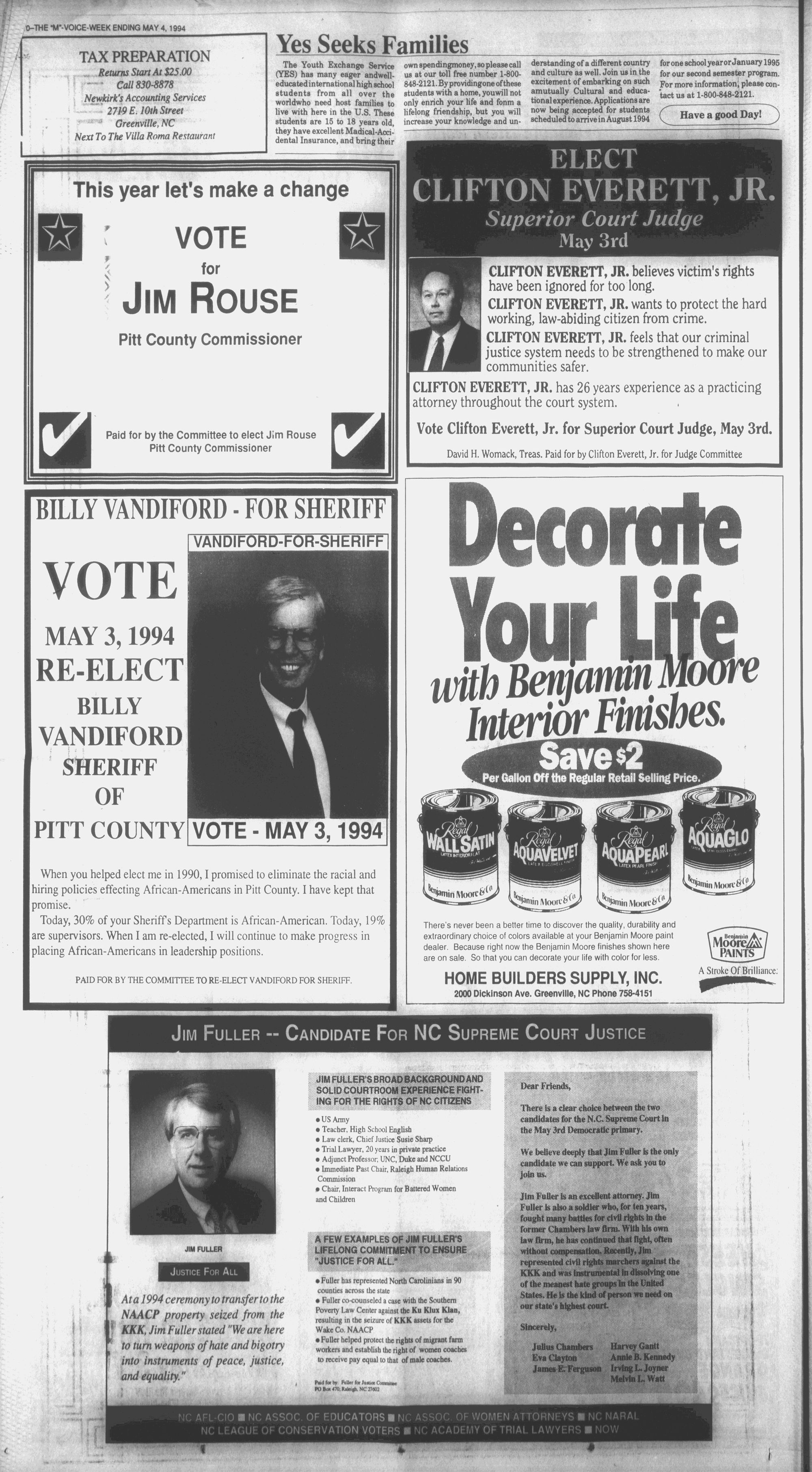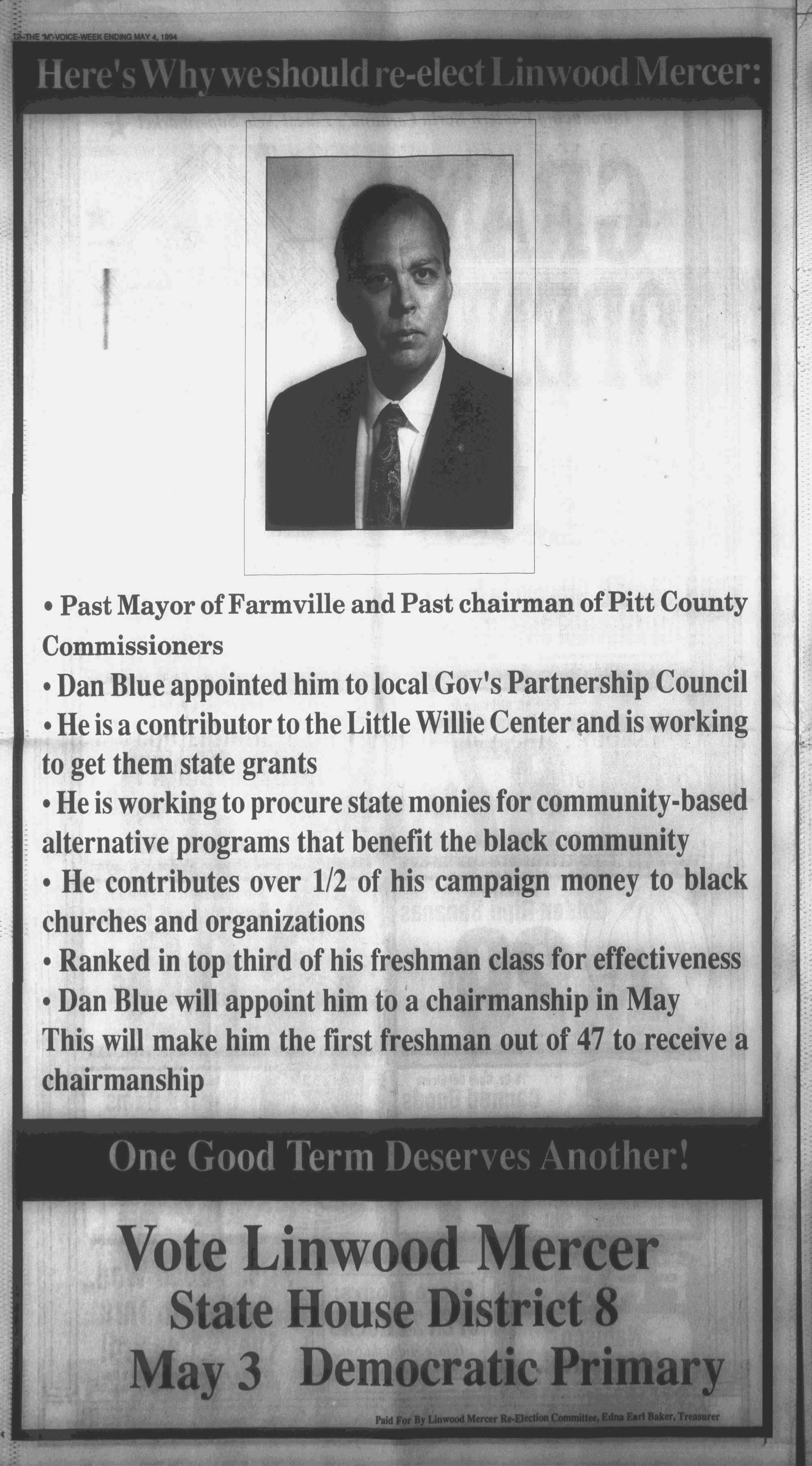 ¢ Past Mayor of Farmville and Past chairman of Pitt County