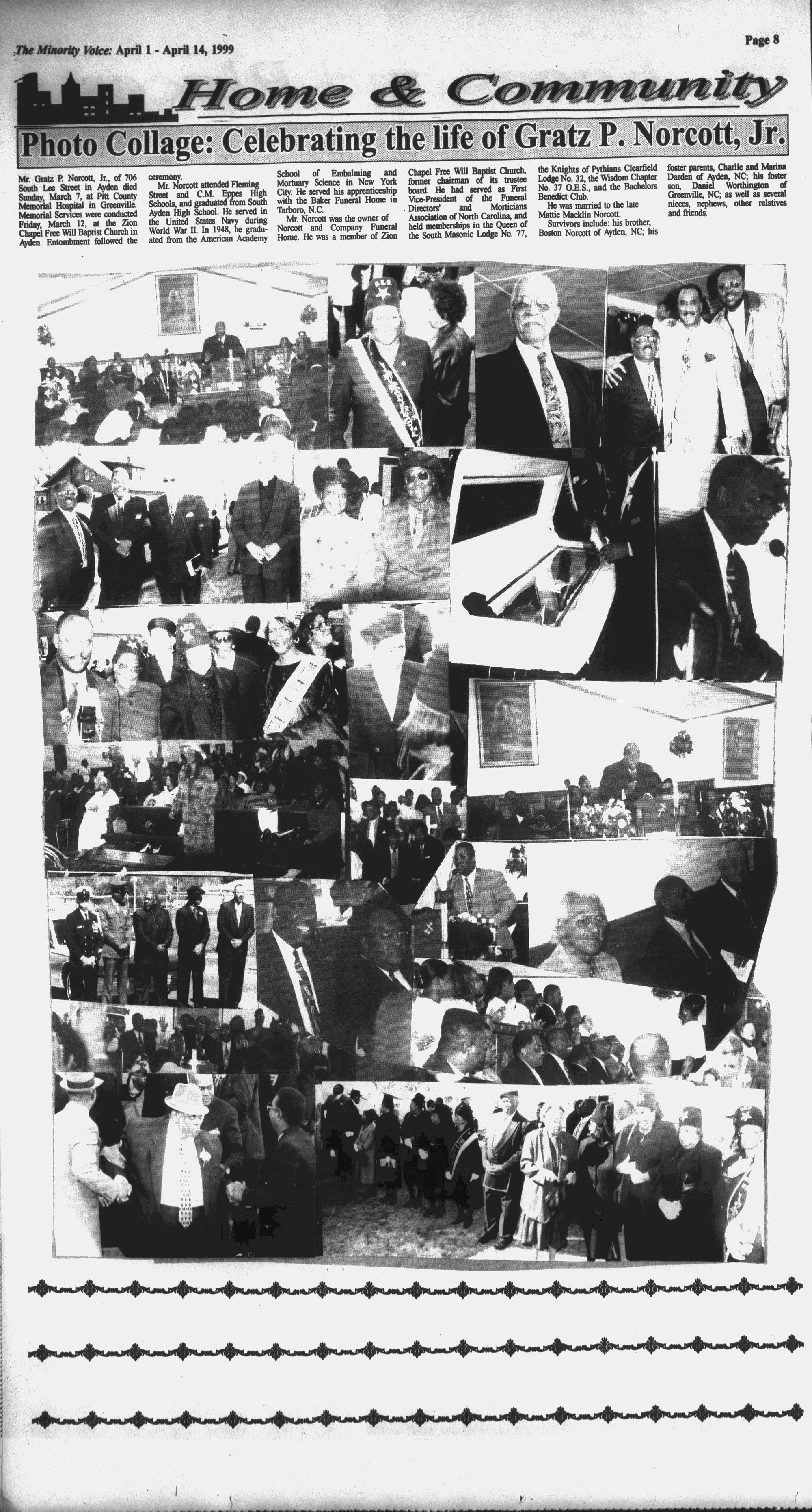 ee ines of Teg Me Norcott attended Fleming Mortuary Science in New York former chai Baptist Church, pe No. 32, the Wisdom Chapter Darden of Ayden, NC; his foster