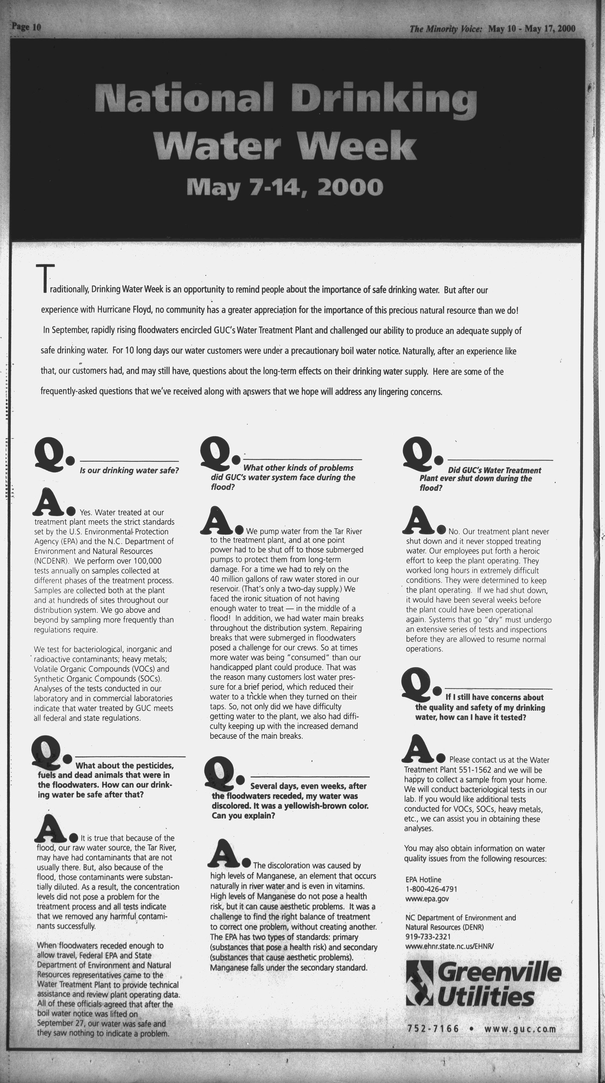 experience with Hurricane Floyd, no community has a greater appreciation for the importance of this precious natural resource than we do!