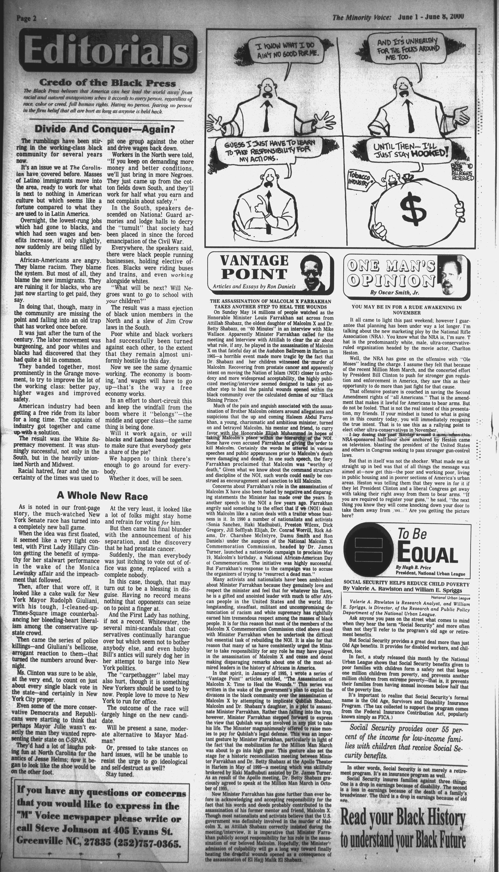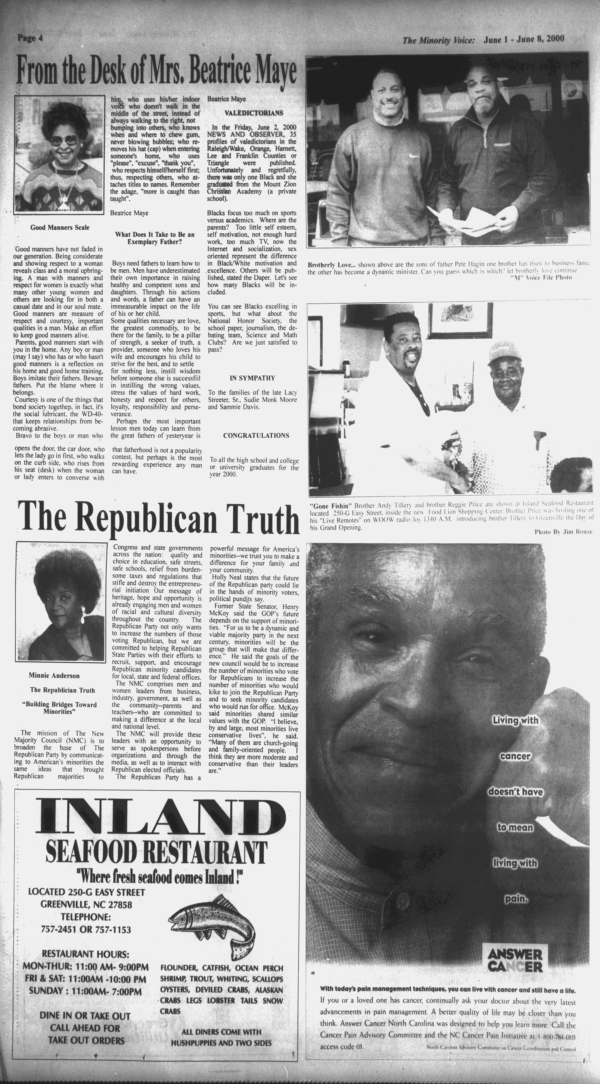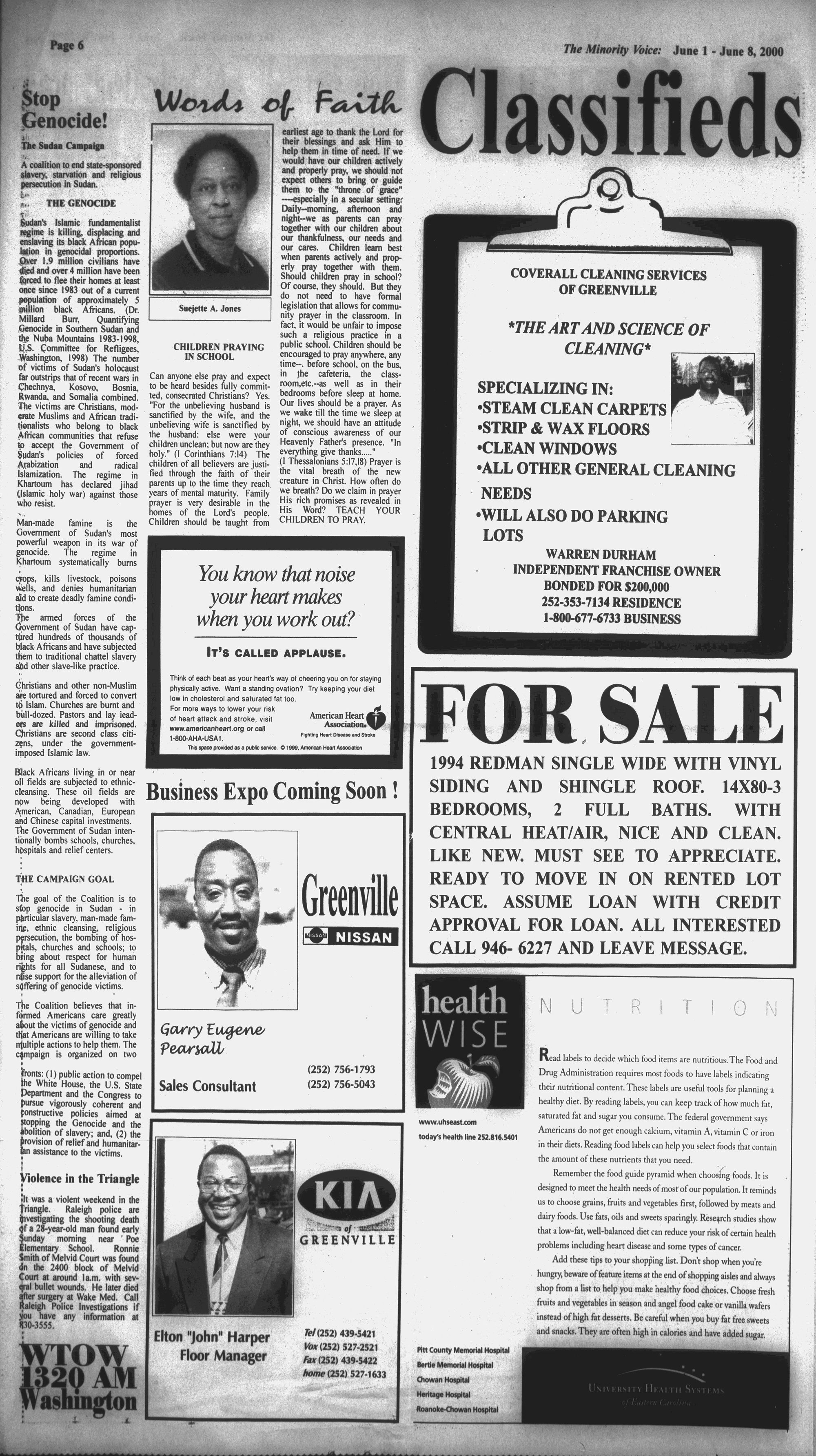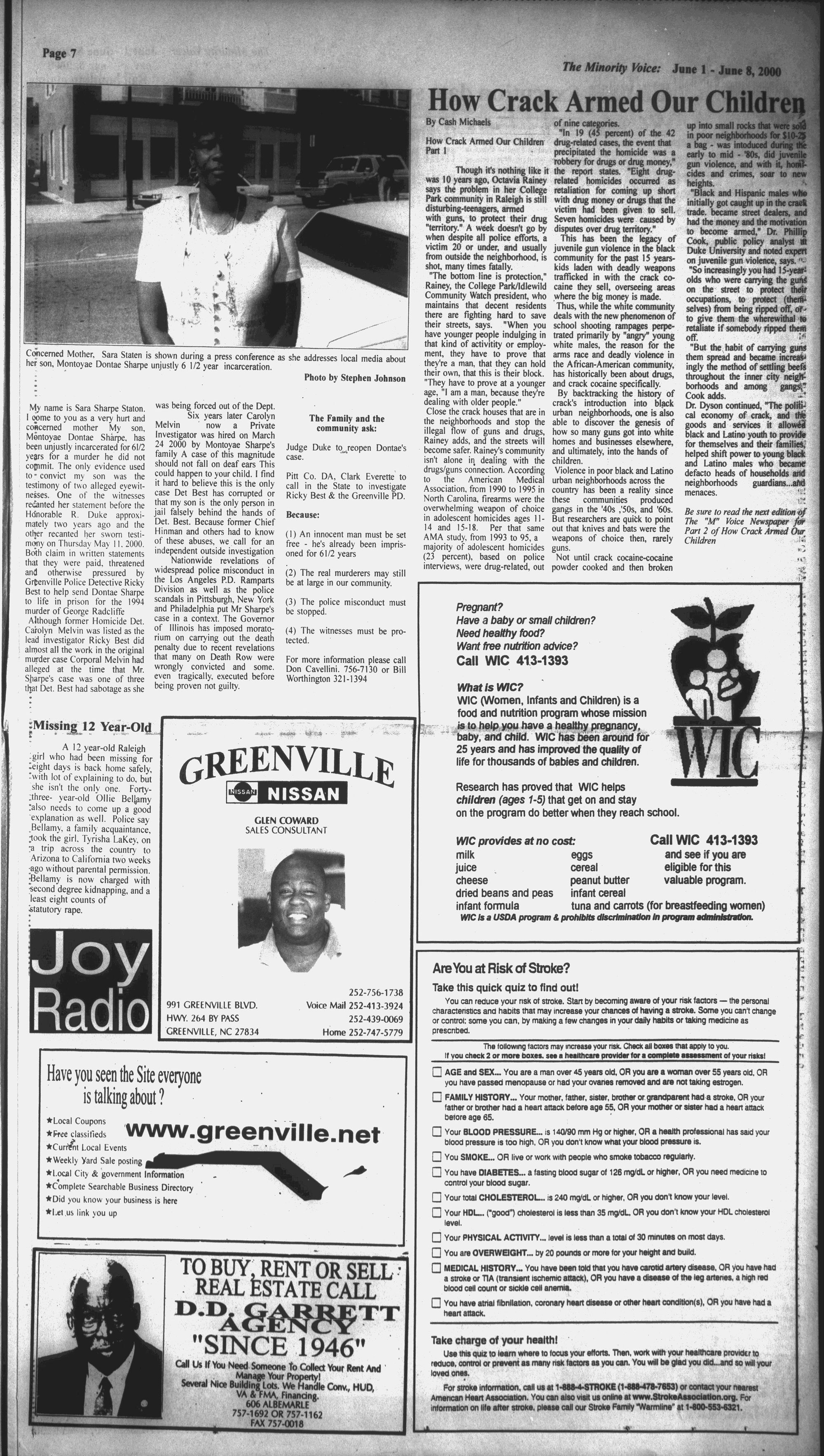 The 'M' voice : Eastern North Carolina's minority voice-since 1987. Greenville. N.C. : Minority Voice, inc. James Rouse, Jr. (1942-2017), began publication of The "M" Voice in 1987 with monthly issues published intermittently until 2010. At different times, the paper was also published as The "M"inority Voice and The Minority Voice. It focused on the Black community in Eastern North Carolina.