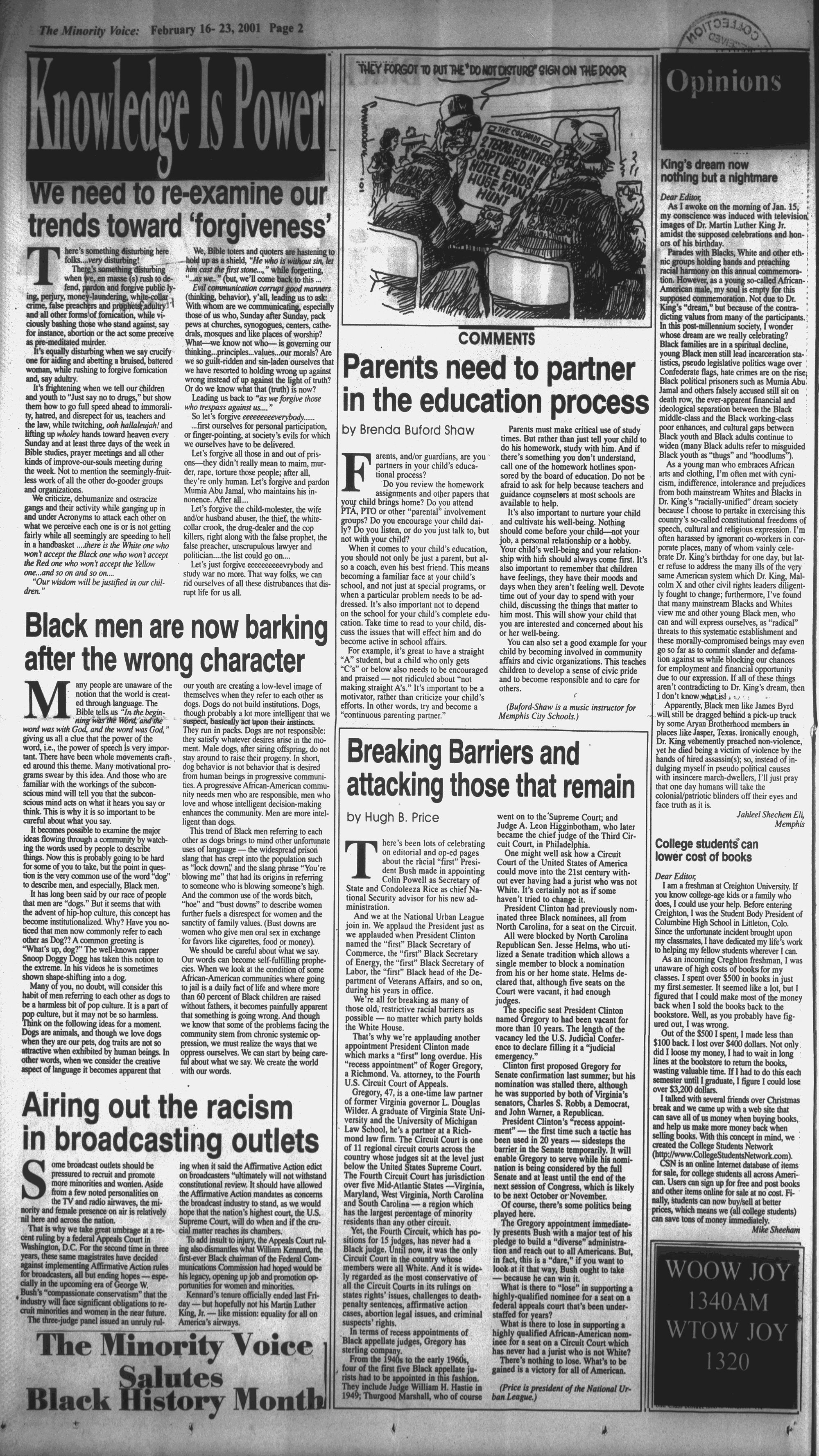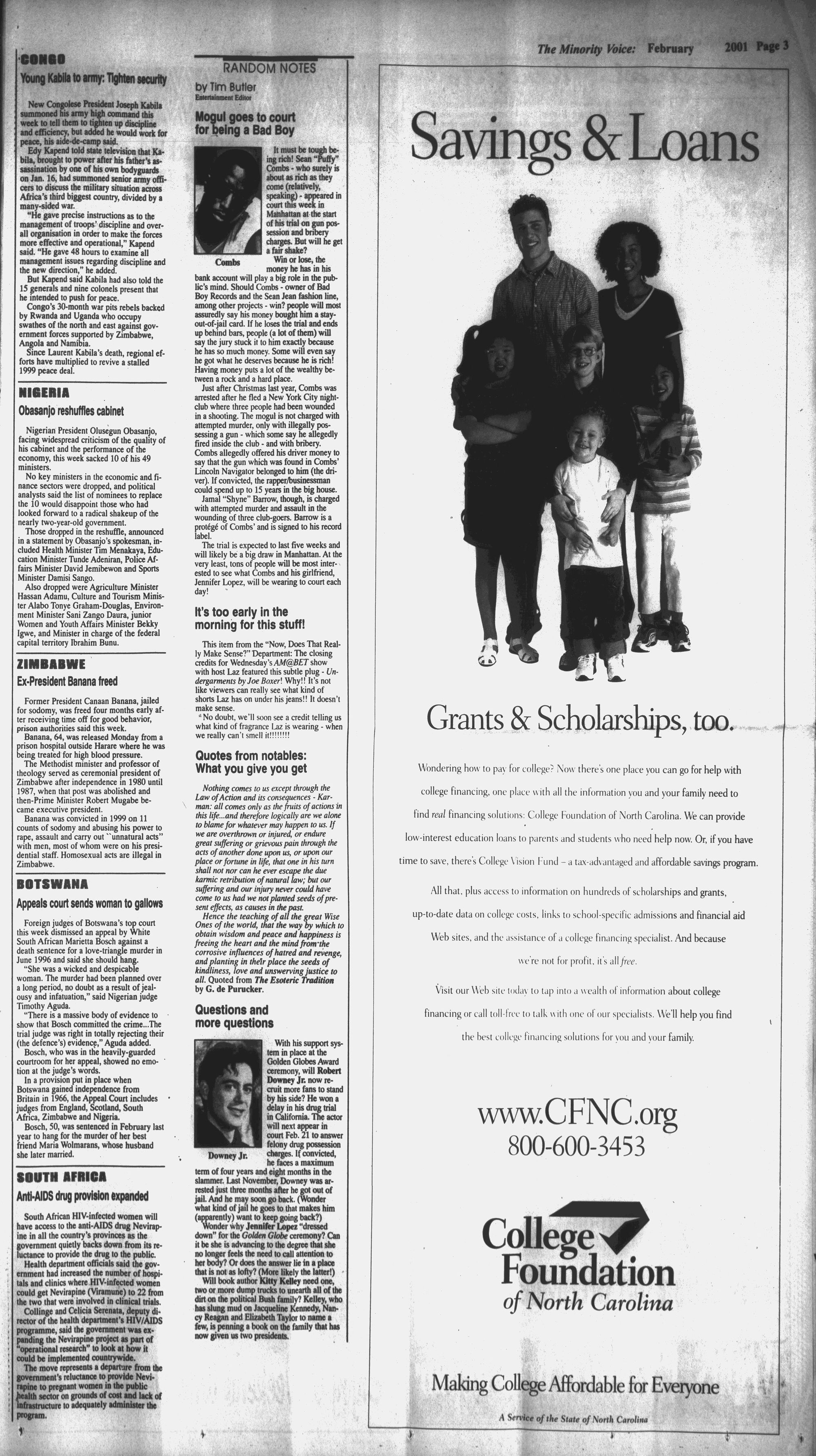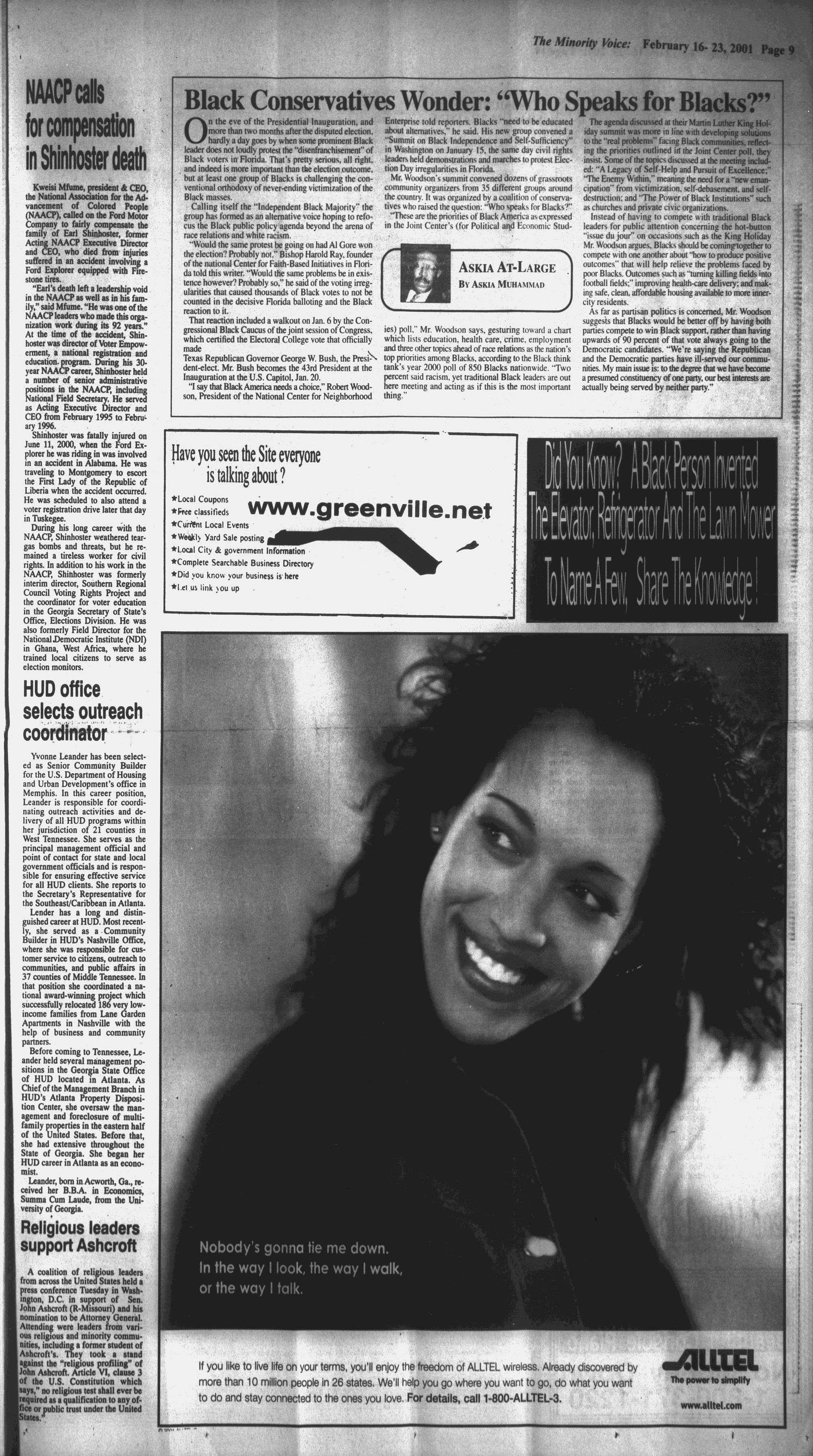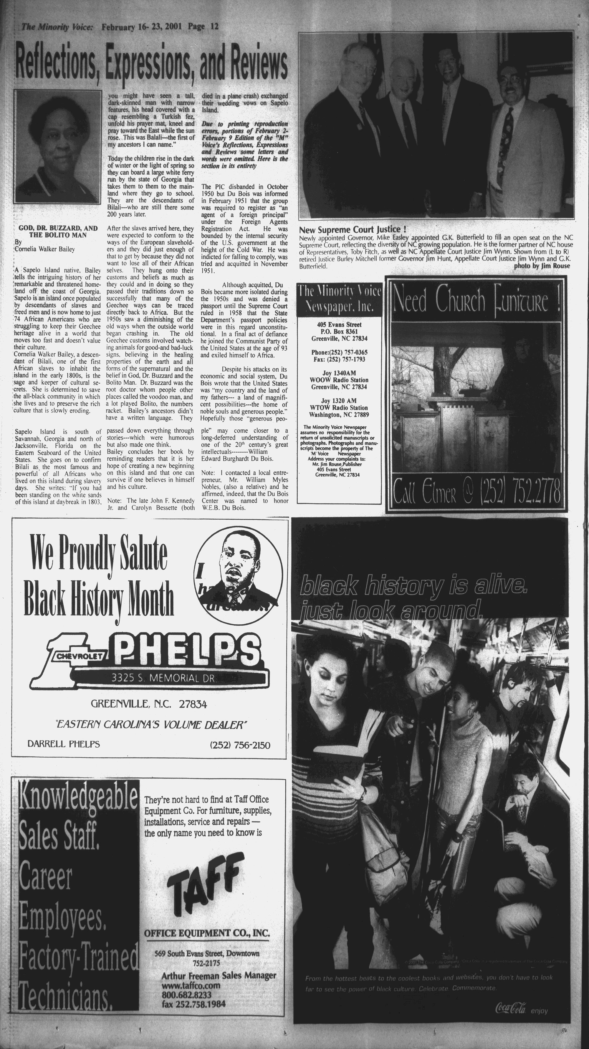 The 'M' voice : Eastern North Carolina's minority voice-since 1987. Greenville. N.C. : Minority Voice, inc. James Rouse, Jr. (1942-2017), began publication of The "M" Voice in 1987 with monthly issues published intermittently until 2010. At different times, the paper was also published as The "M"inority Voice and The Minority Voice. It focused on the Black community in Eastern North Carolina.