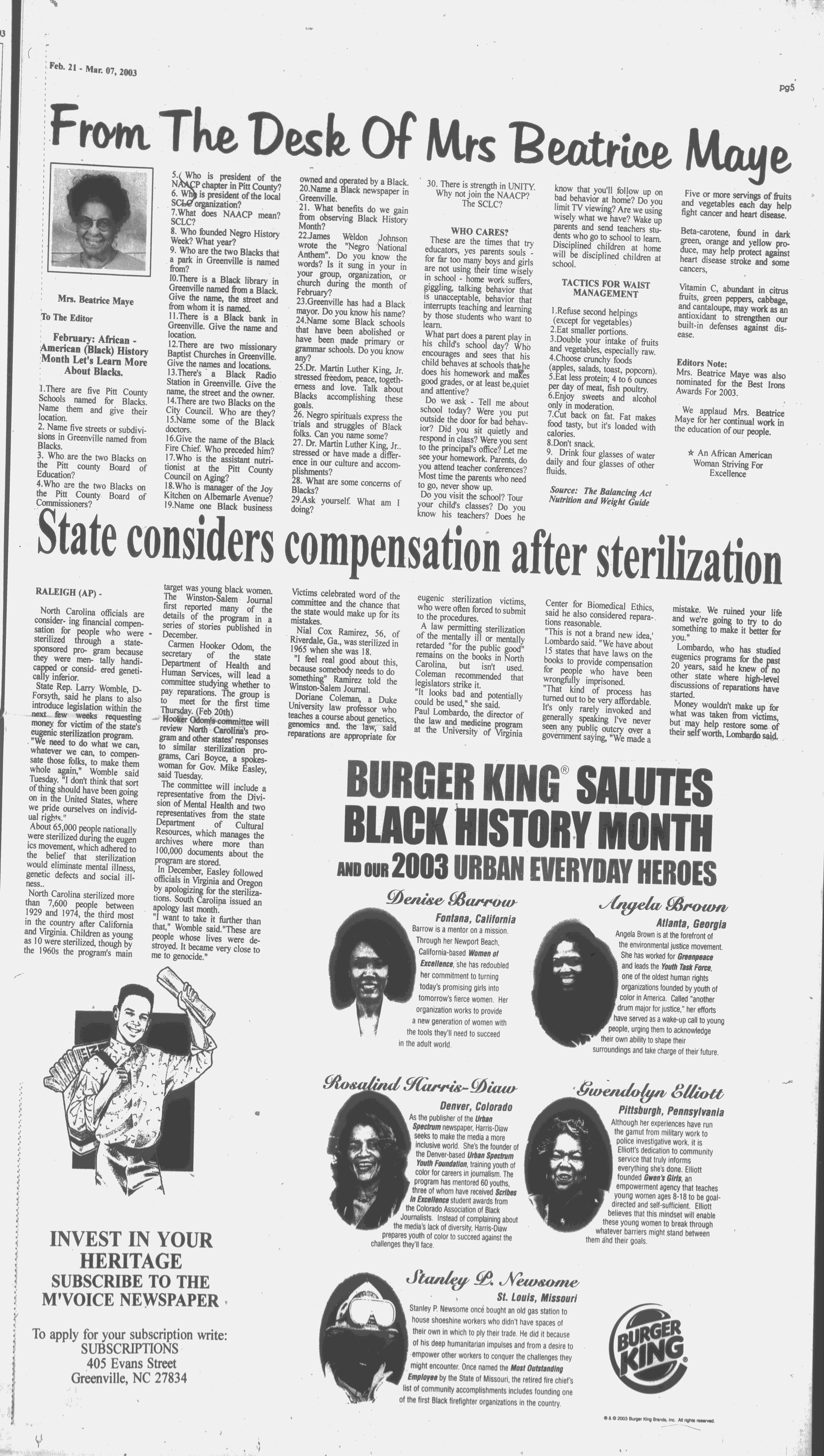 at East Carolina University, was "_with the Pitt ounty Department Other nominees for the 2003