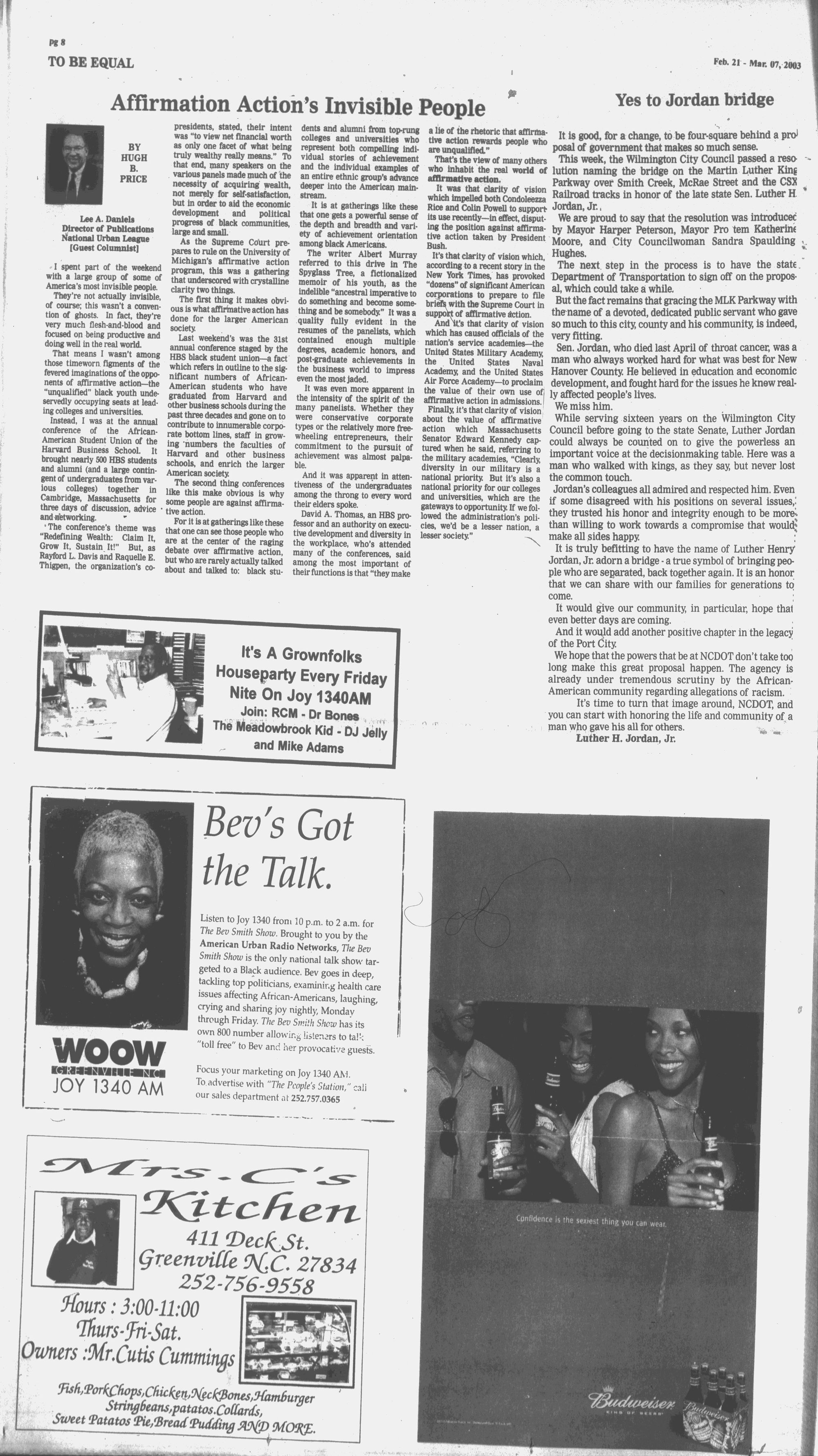 The 2003 Best-Irons Human- at ECU and in the community, affirmative action program; pro-