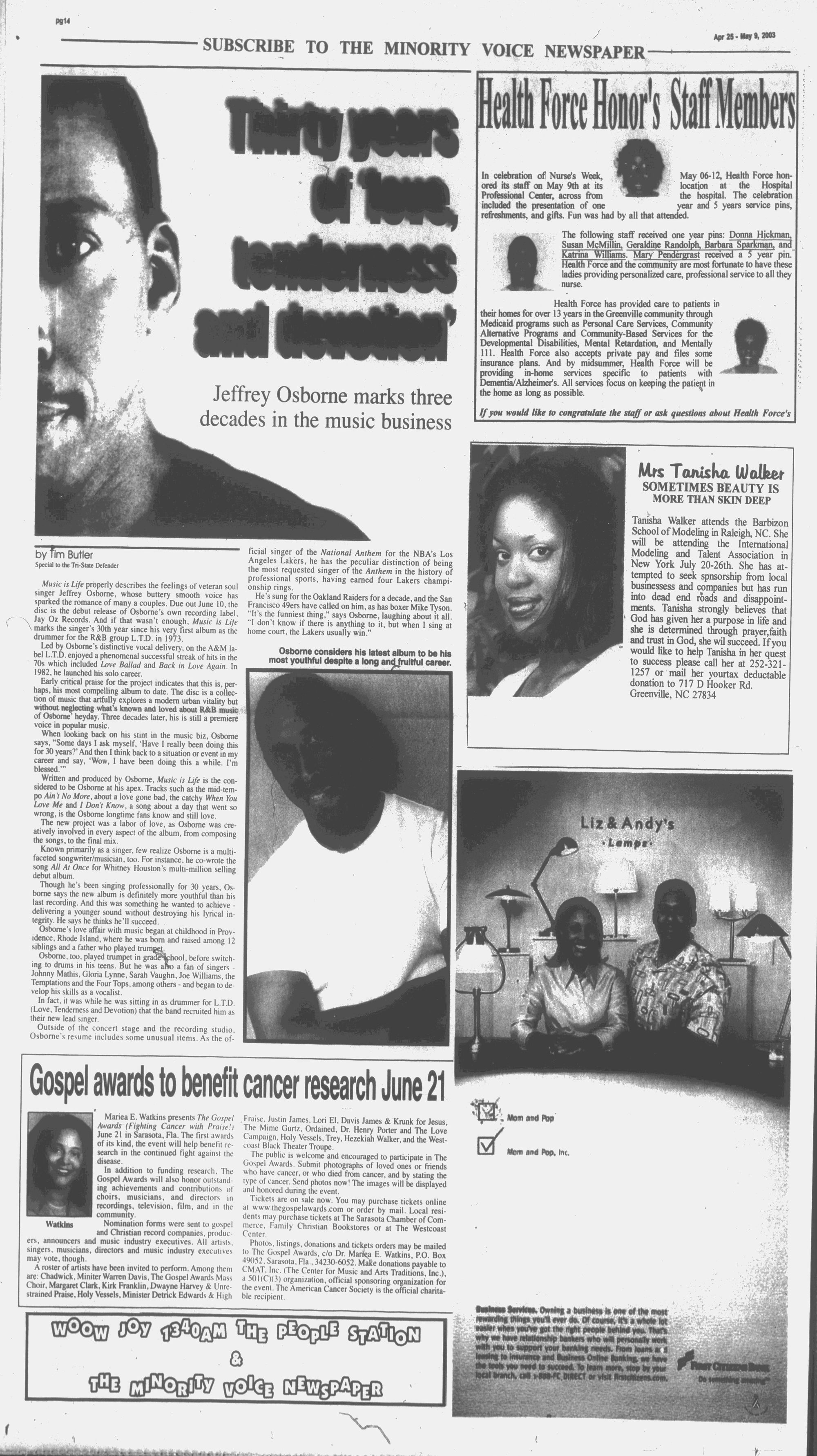 are: Chadwick, Miniter Warren Davis, The Gospel Awards Mass