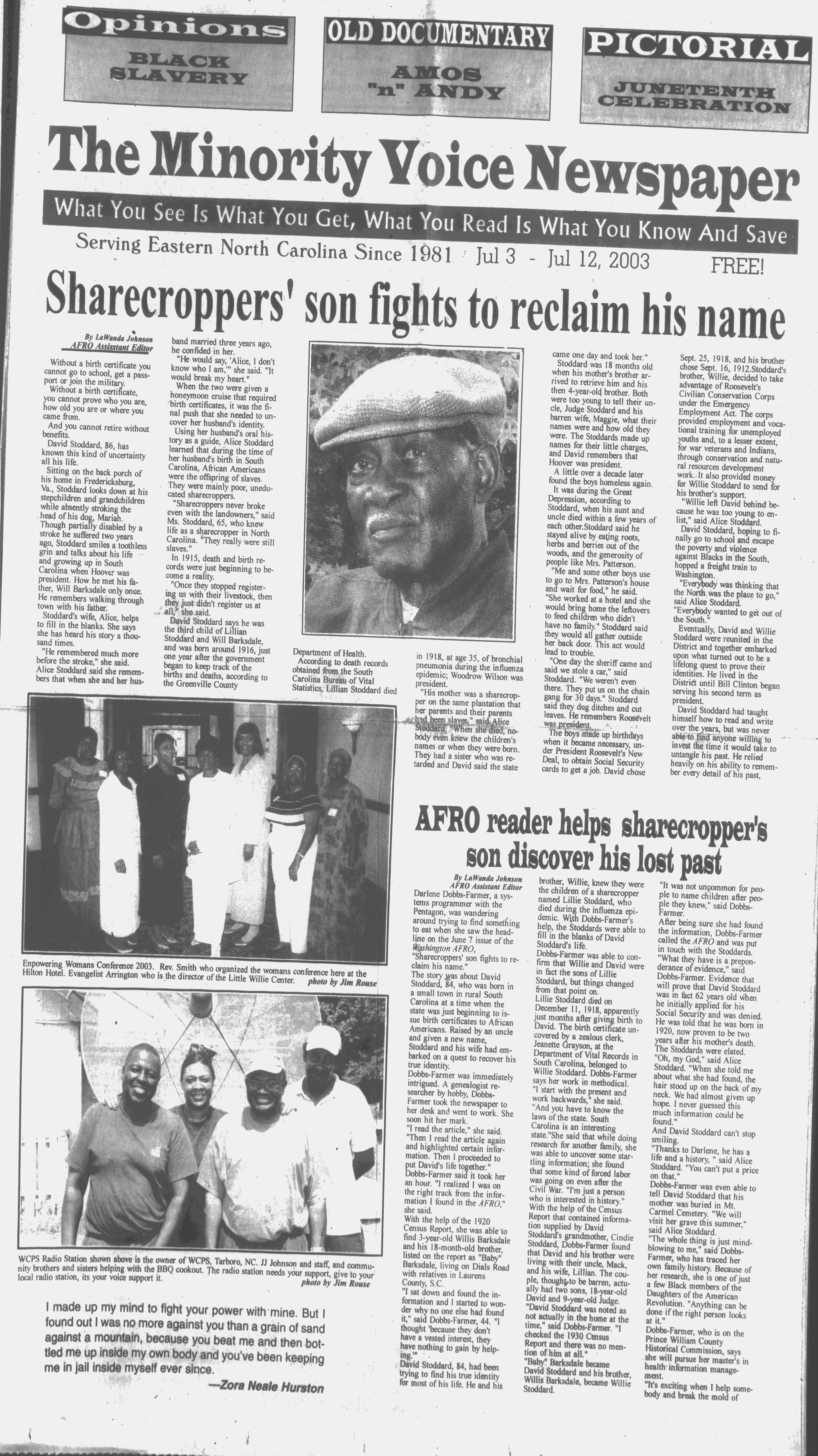 stepchildren and grandchildren "Sharecroppers never broke uncle died within a few years of _list," said Alice Stoddard.
