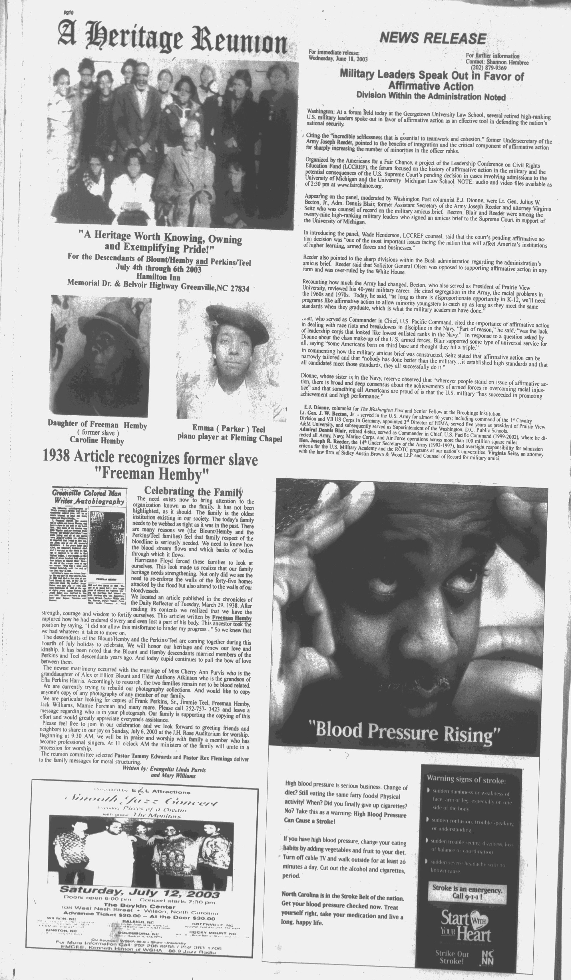 The descendants of the Blount/Hemby and the Perkins/Teel are coming together during this