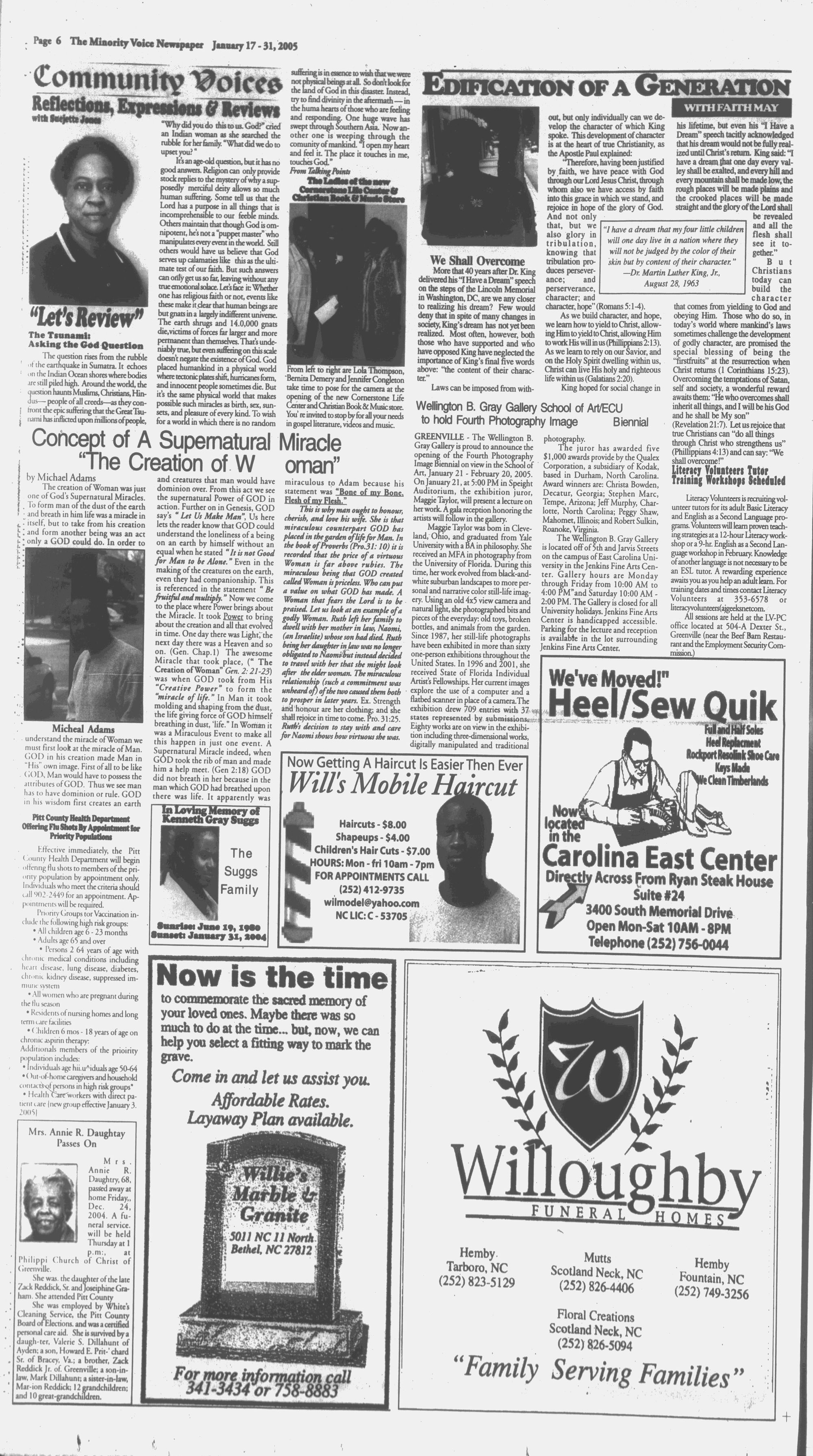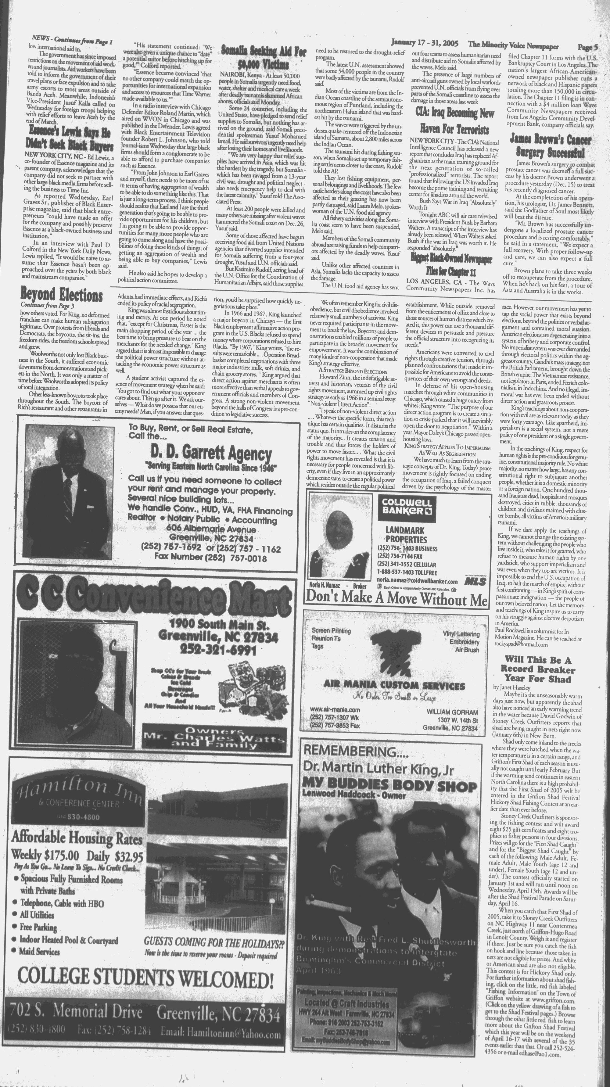 The 'M' voice : Eastern North Carolina's minority voice-since 1987. Greenville. N.C. : Minority Voice, inc. James Rouse, Jr. (1942-2017), began publication of The "M" Voice in 1987 with monthly issues published intermittently until 2010. At different times, the paper was also published as The "M"inority Voice and The Minority Voice. It focused on the Black community in Eastern North Carolina. Pages not displaying for this online item were missing from the original microfilm and could not be digitized.