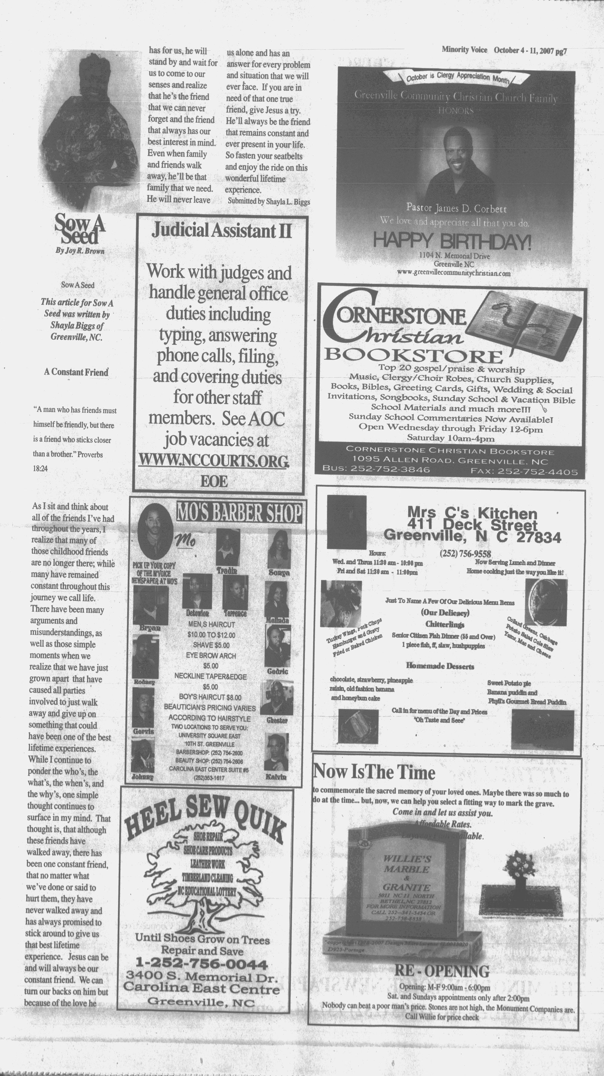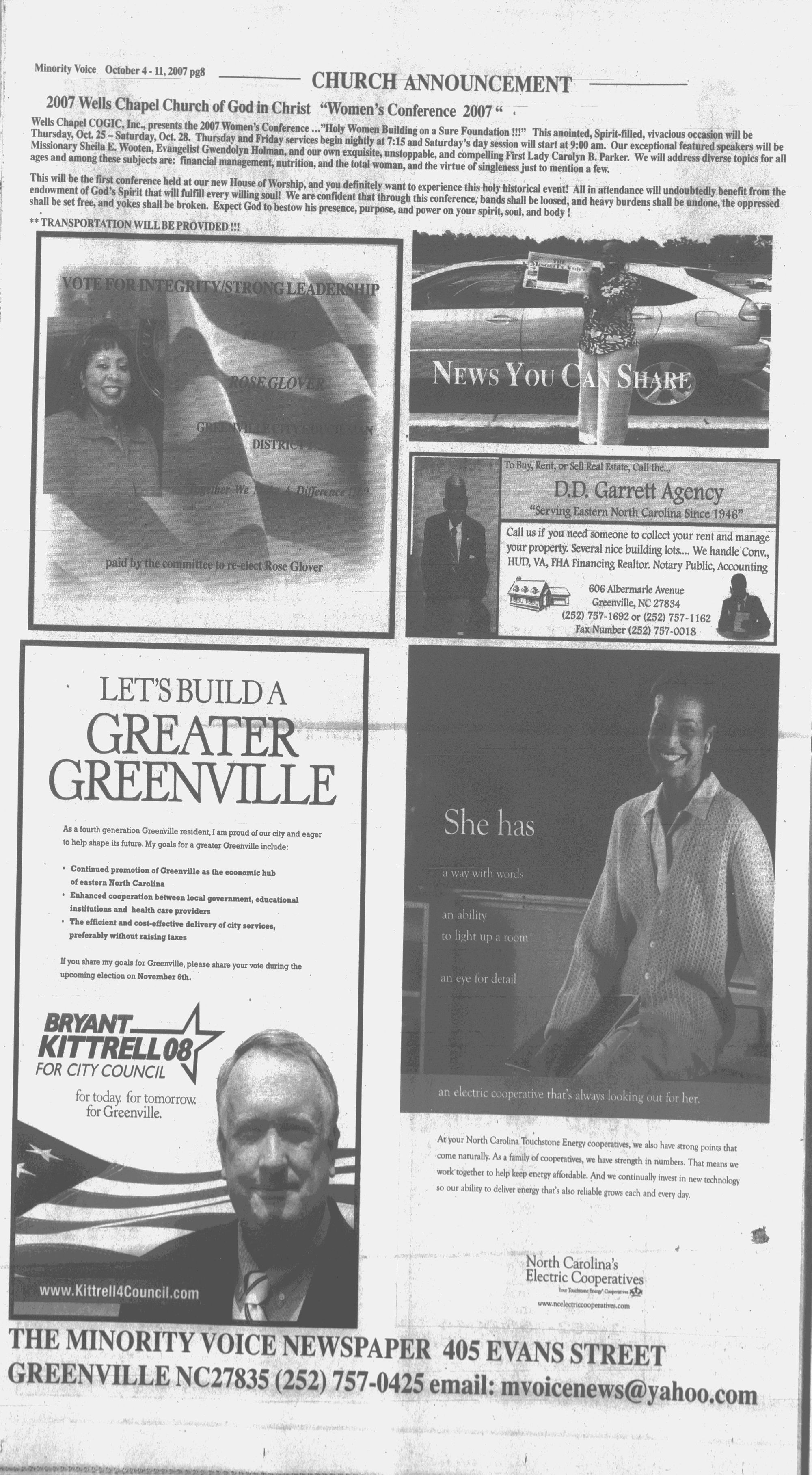 Minority Voice October 4 - 11, 2007 pgs , CHURCH ANN OUN CEMENT pa el