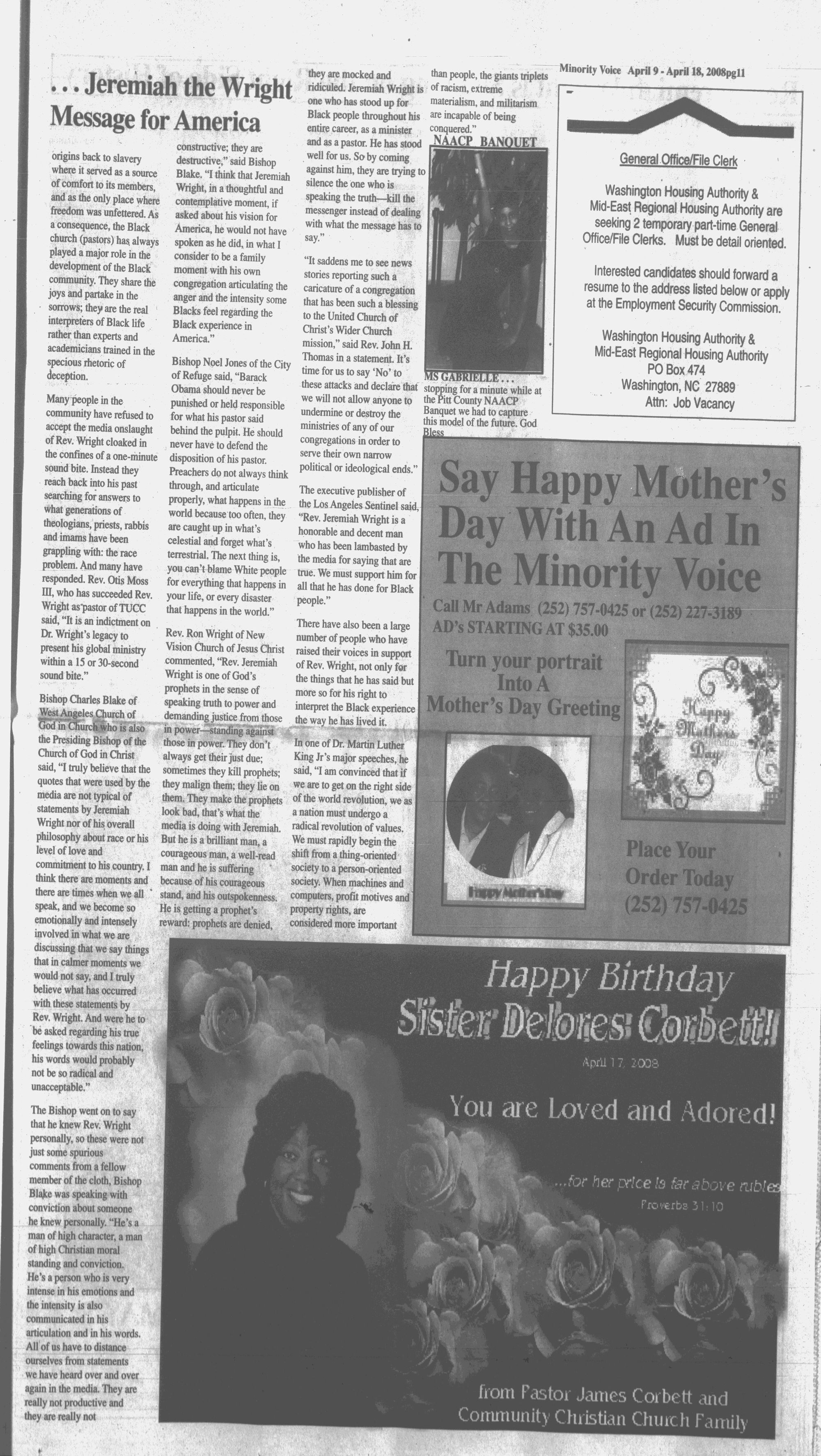 y Jeremiah A: Wright has been recently retired. During that " Under his stewardship, the