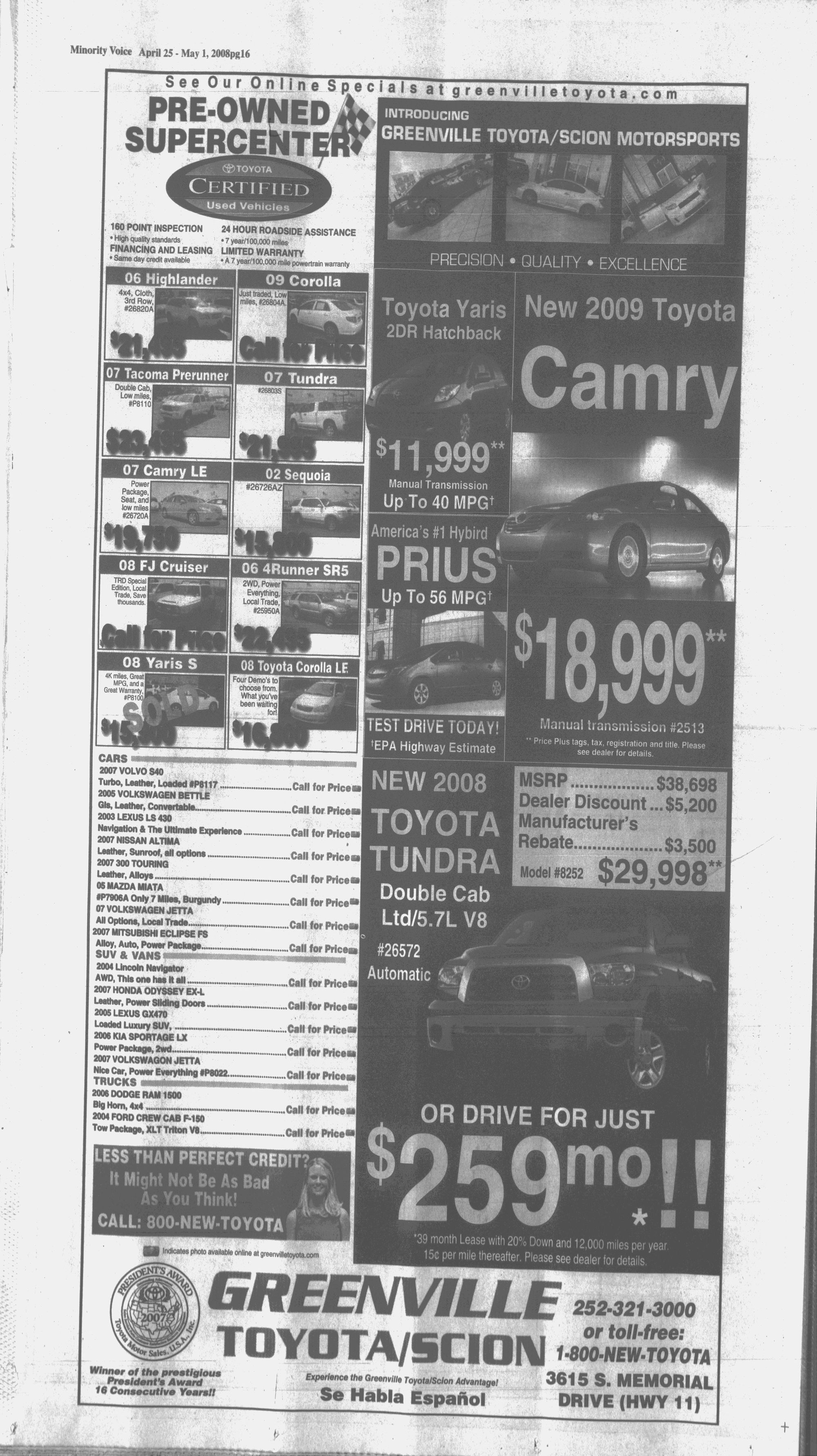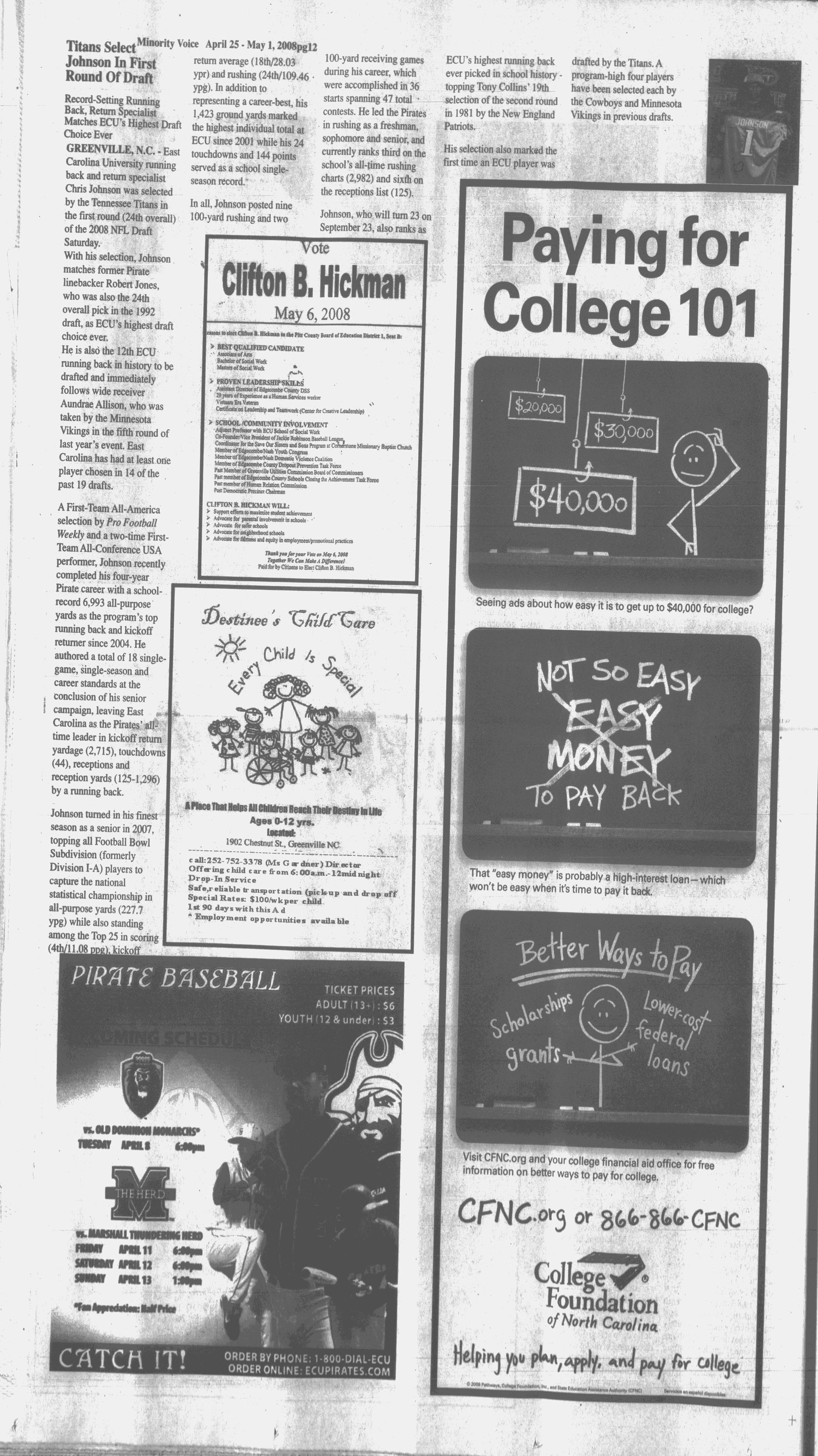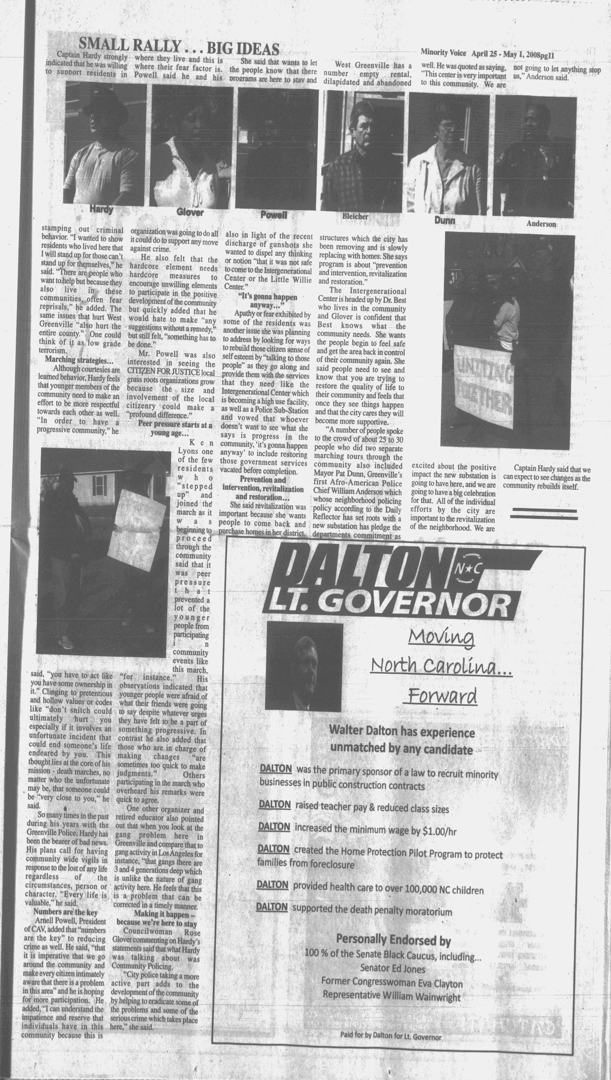 The 'M' voice : Eastern North Carolina's minority voice-since 1987. Greenville. N.C. : Minority Voice, inc. James Rouse, Jr. (1942-2017), began publication of The "M" Voice in 1987 with monthly issues published intermittently until 2010. At different times, the paper was also published as The "M"inority Voice and The Minority Voice. It focused on the Black community in Eastern North Carolina. Pages not displaying for this online item were missing from the original microfilm and could not be digitized.