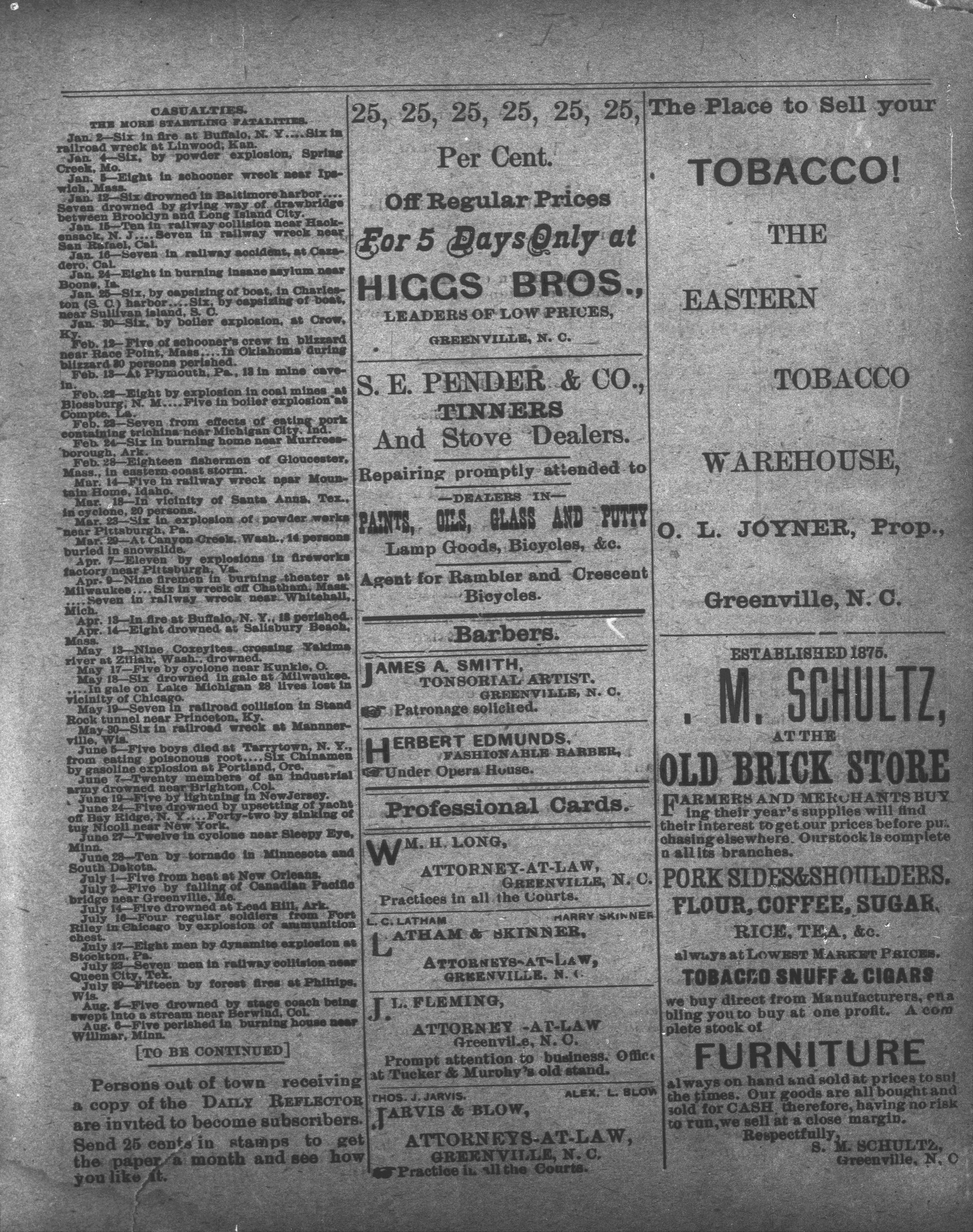The newspaper was established in 1882, and was originally named the Eastern Reflector. It was founded by Julian Whichard and David Jordan with equipment they purchased from The Greenville Express. On December 10, 1894, it adopted the name The Reflector and began publishing every day. Cox Newspapers acquired The Daily Reflector in 1996. Creator: Daily Reflector (Greenville, N.C.) - December 26, 1894
