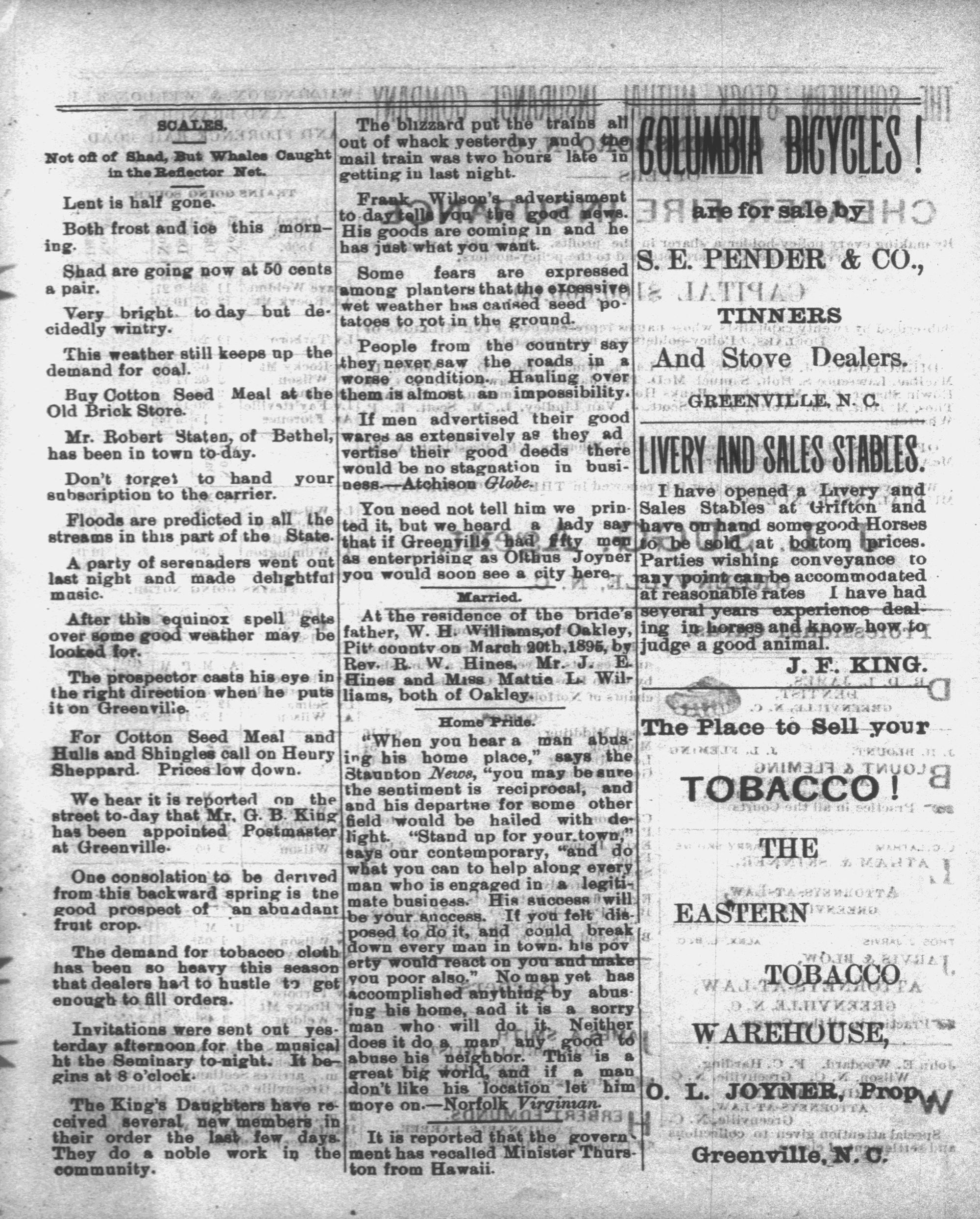 a bel Pitt countv on March 20th,1896, by: