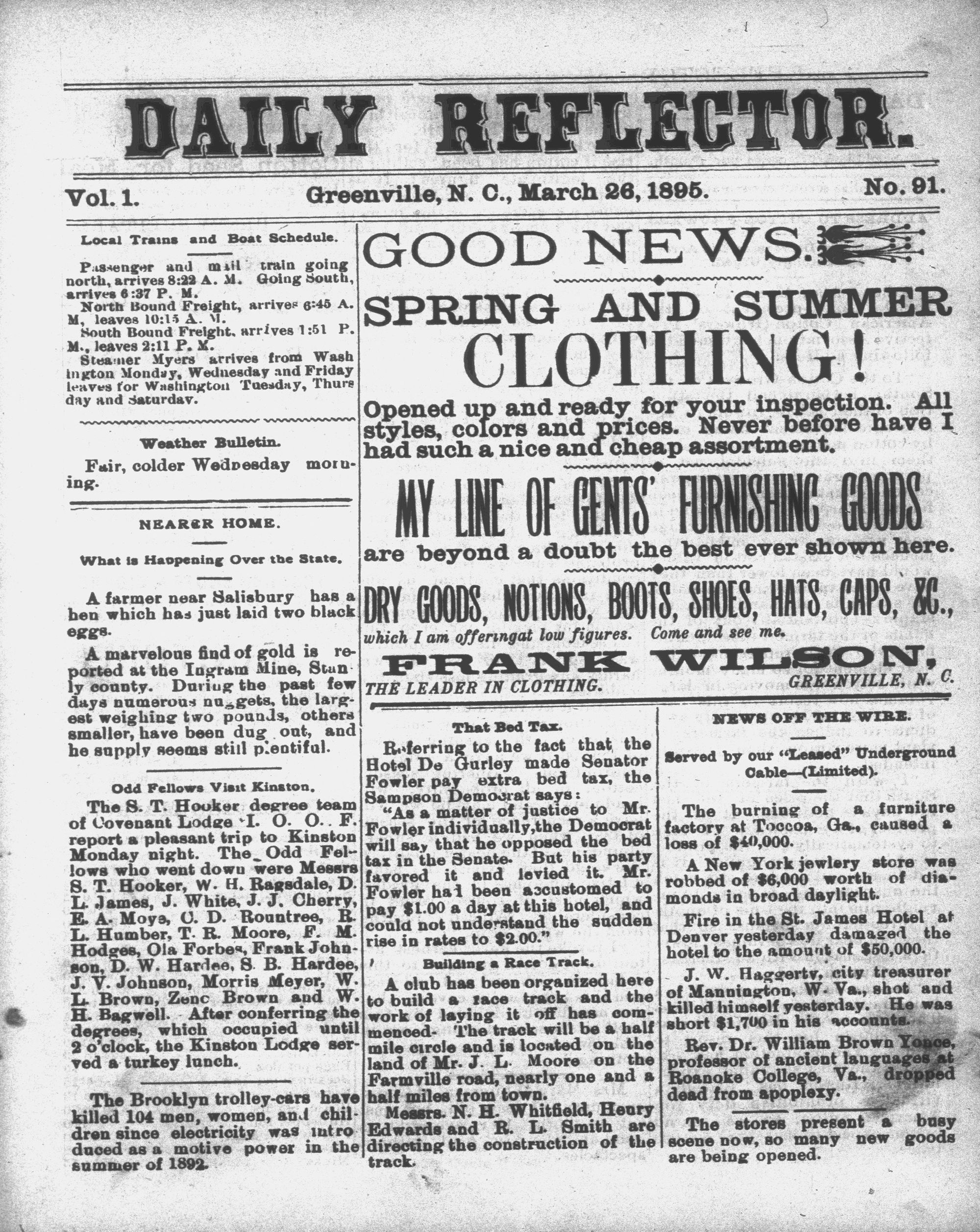 Greenville, N. C., March 26, 1895.